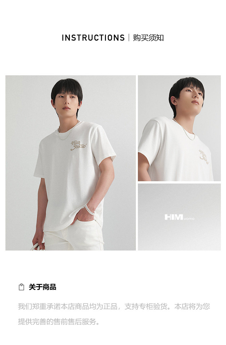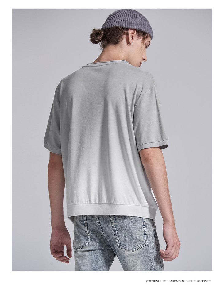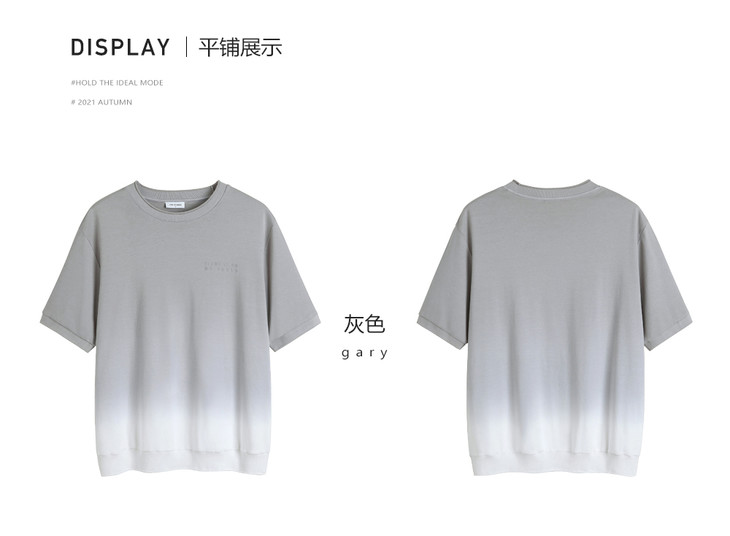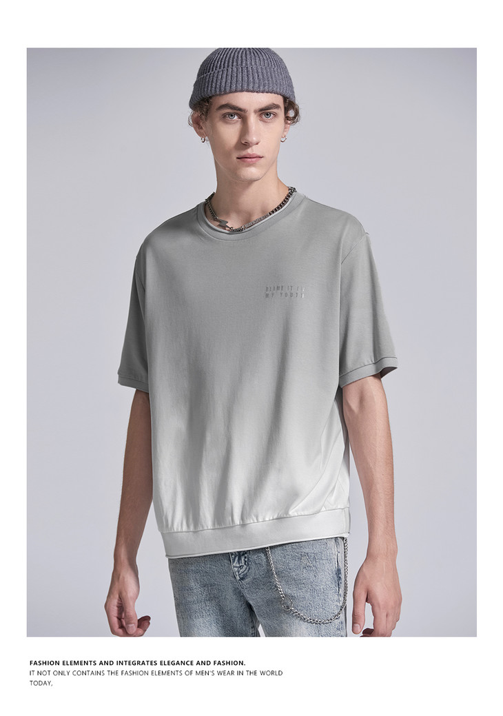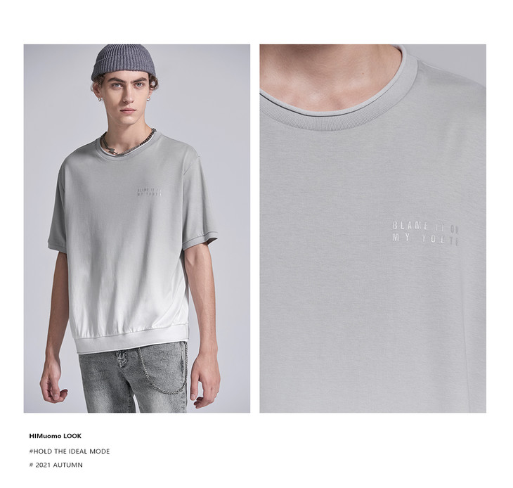 HIM漢崇 渐变灰卫衣男舒适微弹休闲圆领字母印花短袖T恤 2023春夏
