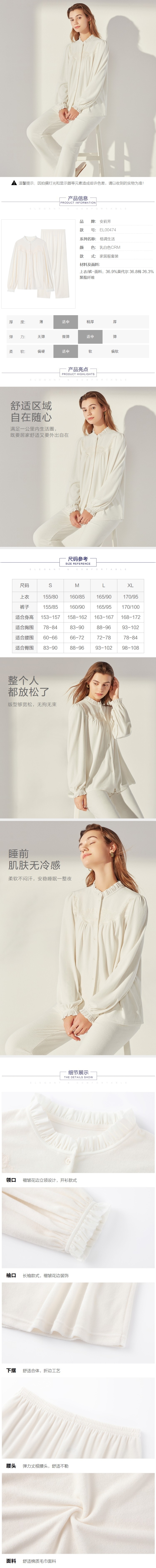 安莉芳秋冬新品女莫代尔棉长袖睡衣裤套装EL00474宫廷风家居服