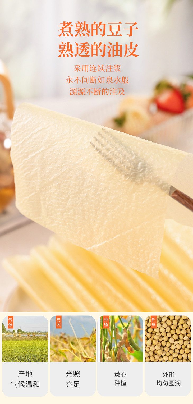 【豆皮精选】出口级无添加豆油皮 薄如蝉翼 有机富硒黄豆 豆香醇厚 达到生食标准的豆油皮