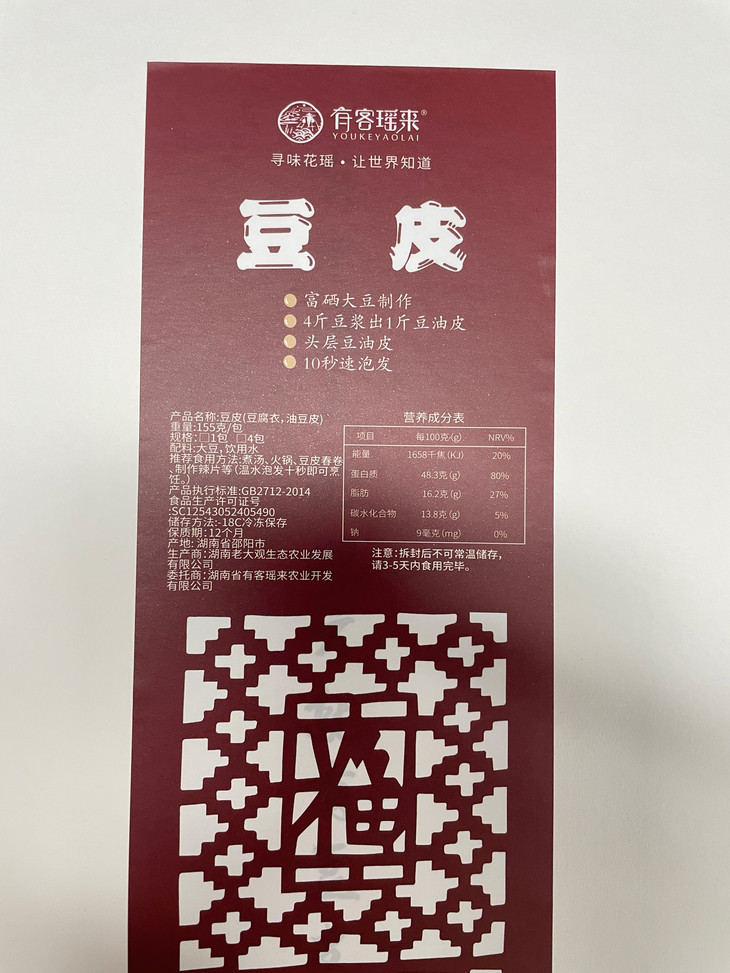 品名:出口级无添加豆油皮 规格1:155g/袋*2袋 规格2:155g/袋*4袋;拍几份发几个包裹,不一定能同时到达,请耐心等待 发货产地:湖南 保质期:冷冻12个月 包装方式:袋装 物流信息:默认中通/申通/韵达快递,不支持指定快递 发货区域:新疆、西藏、内蒙、甘肃、宁夏、青海、海南不发;北京、黑龙江、辽宁、吉林+3元; 物流详情:周六、周日及节假日除外,正常48小时内发货,到货时间约为2~5天,请耐心等待 售后说明:收到货后有质量问题,在24小时内都可以拍照(坏品+快递单面箱子一起拍)上传,申请按坏品比例理赔或联系客服,生鲜美食性质特殊,不支持7天无理由退换货;因地址错误,手机号联系不上,拒收等造成的损失无法售后,请理解; |