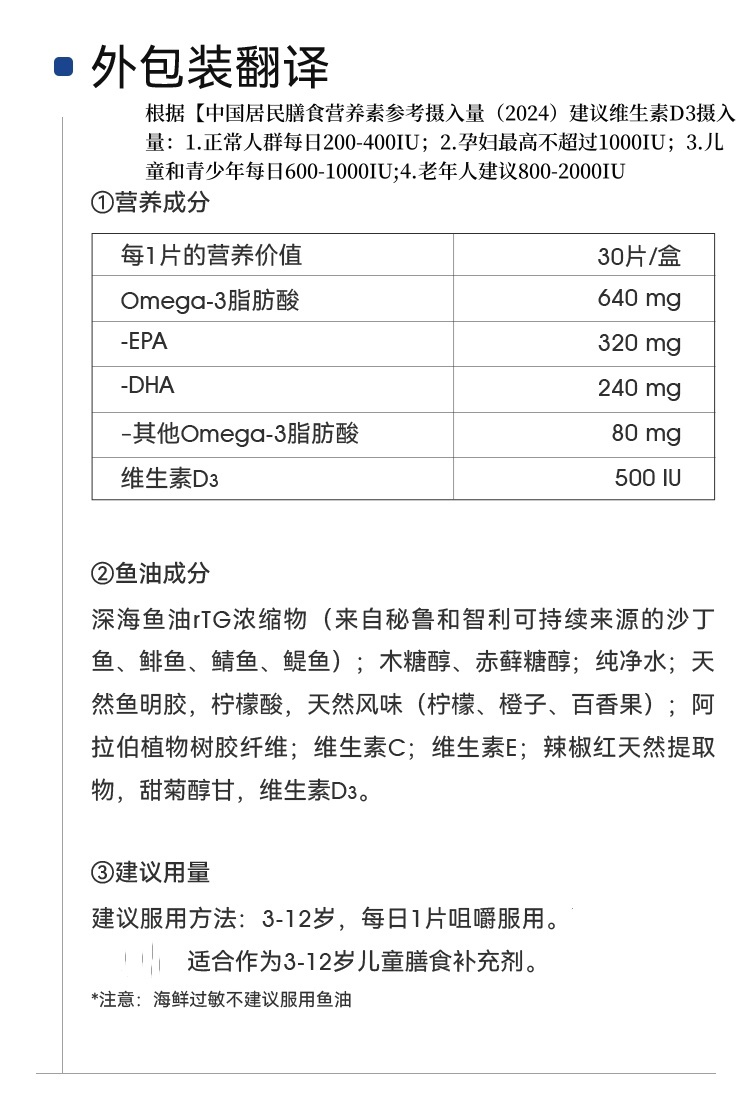 2.服用方法: 更推荐3-12岁每日1片,可以作为饭后奖励(1岁以上有咀嚼能力的也可以食用)