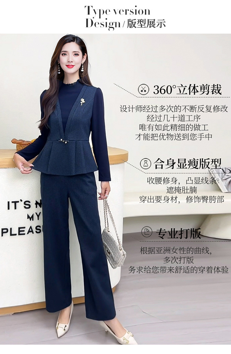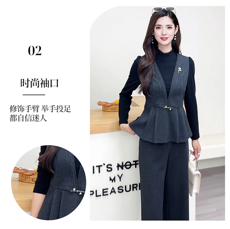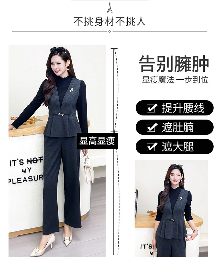 QYM 1C2522 -Y假两件上衣小衫+高腰直筒长裤两件套时尚气质套装