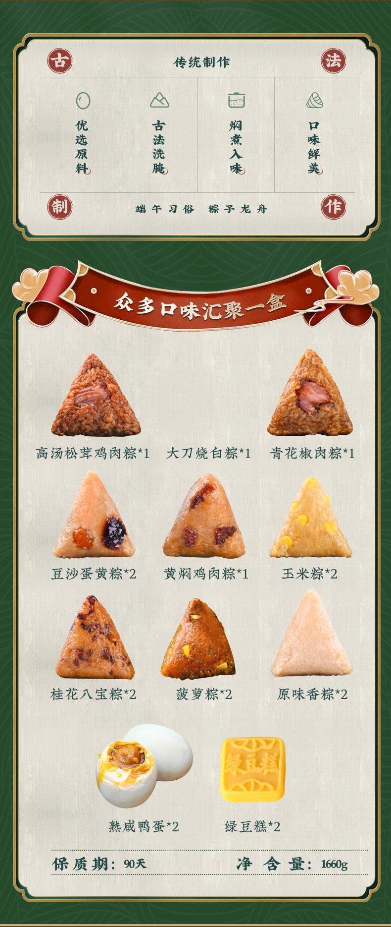荷家 祥意连连 礼盒装粽子端午节食品原味速食肉粽香粽送礼团购