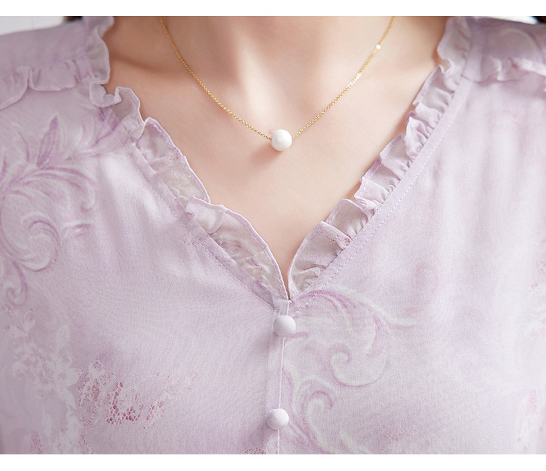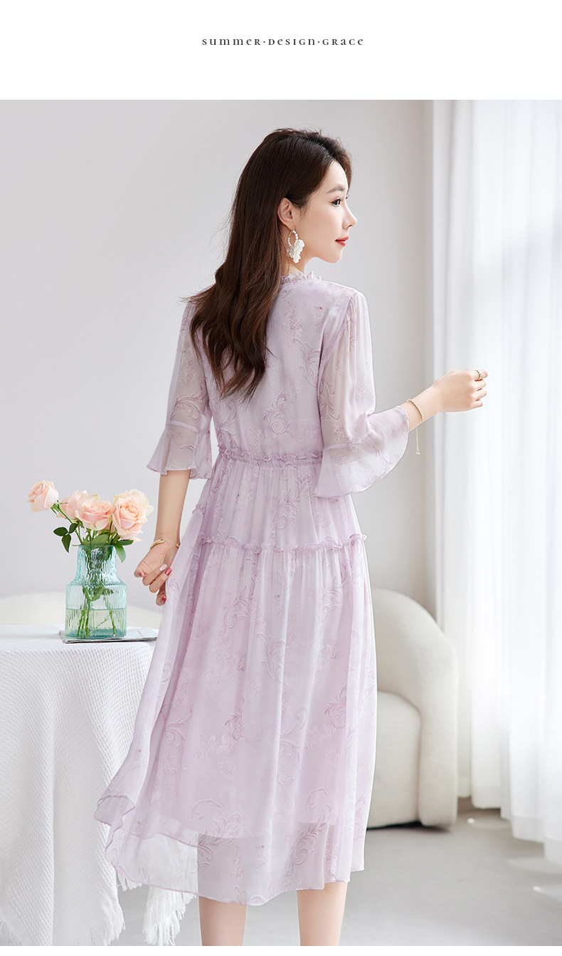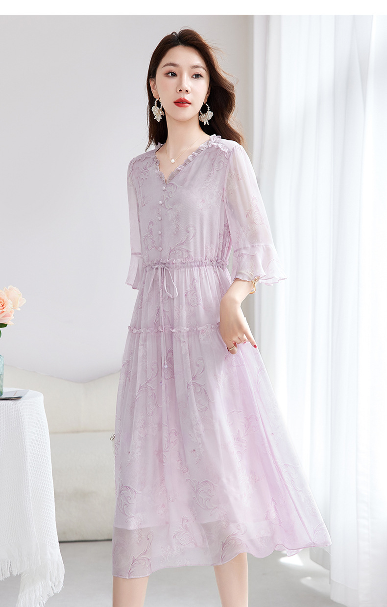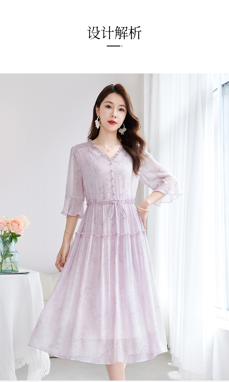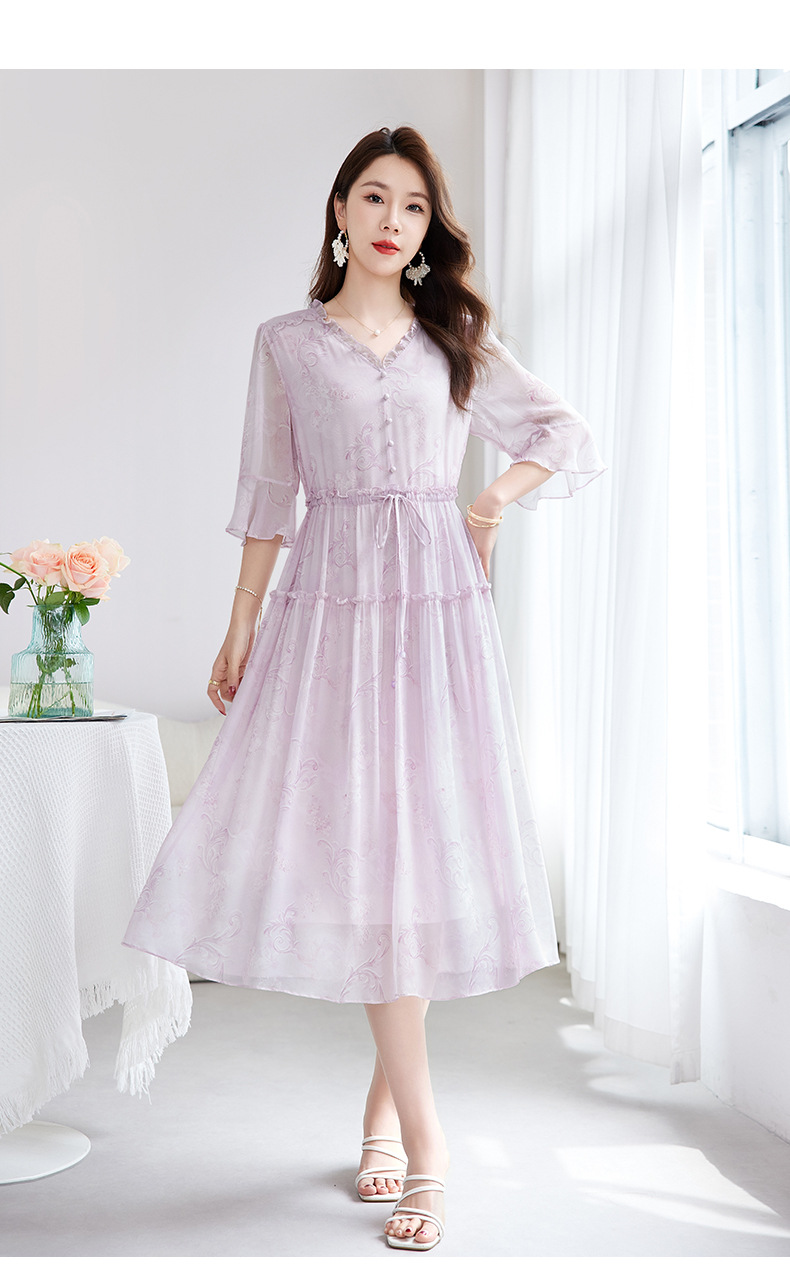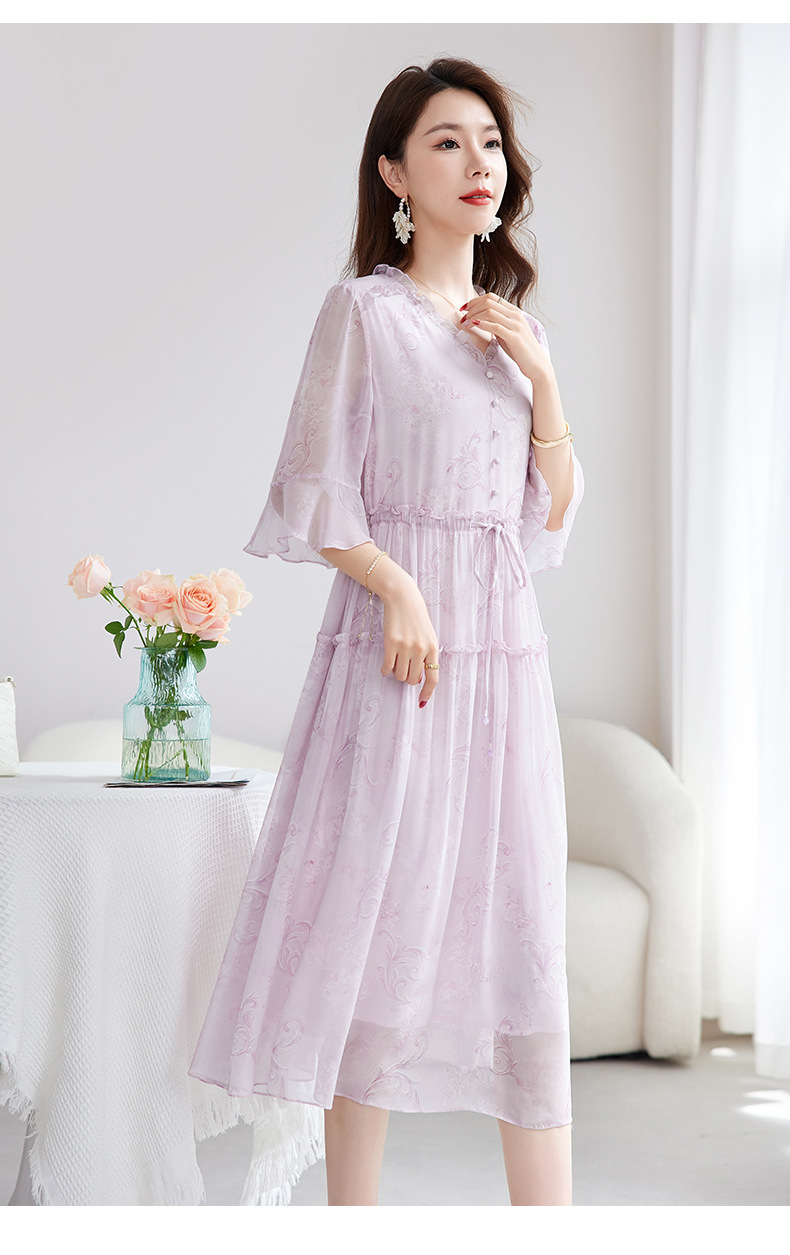 QS-82501131【清新清凉】大码真丝连衣裙女夏季100%桑蚕丝乔其印花仙女裙1131