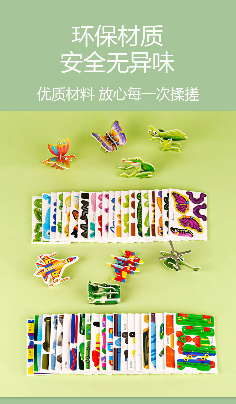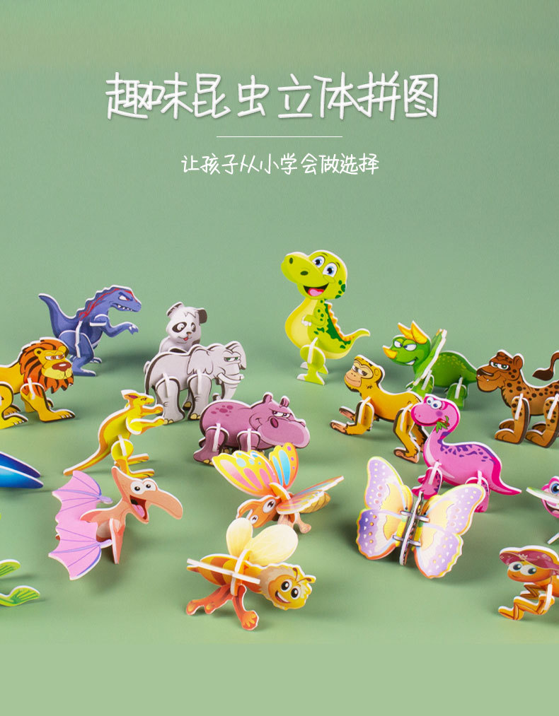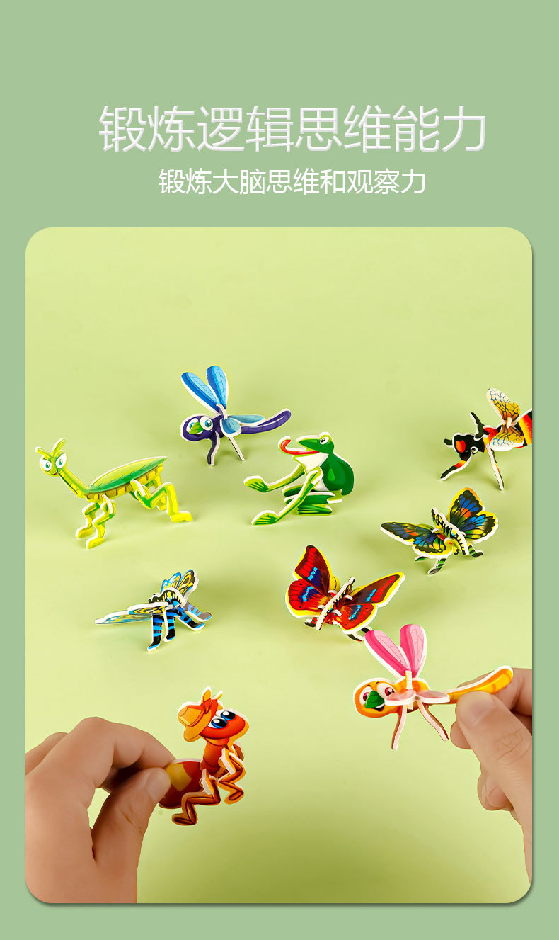 秒杀125片【锻炼逻辑!思维能力】立体3D纸质拼图儿童创意昆虫拼图DIY幼儿园早教手工拼装益智玩具。rb