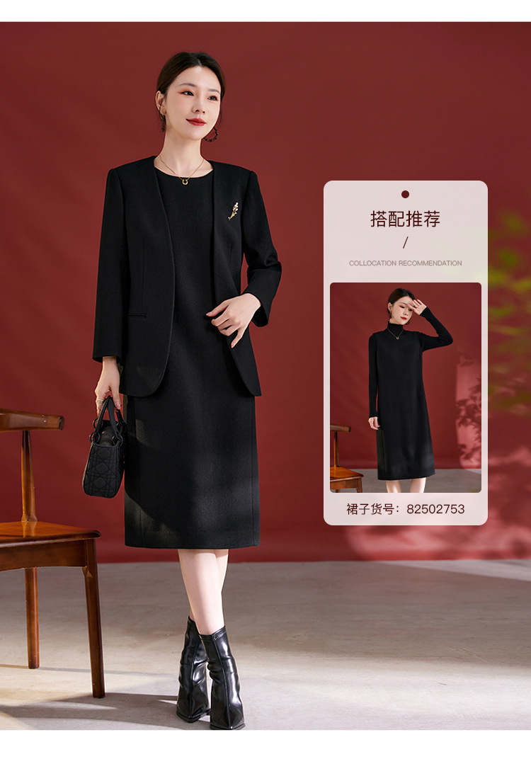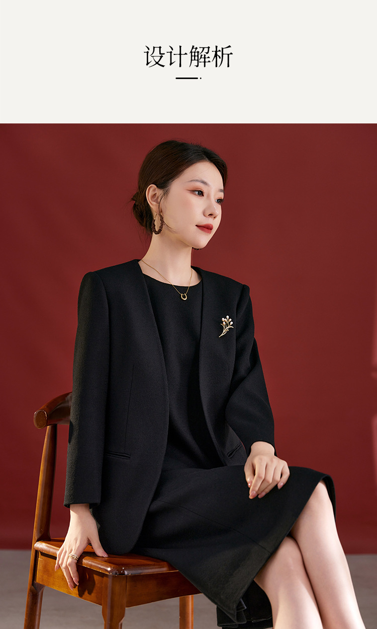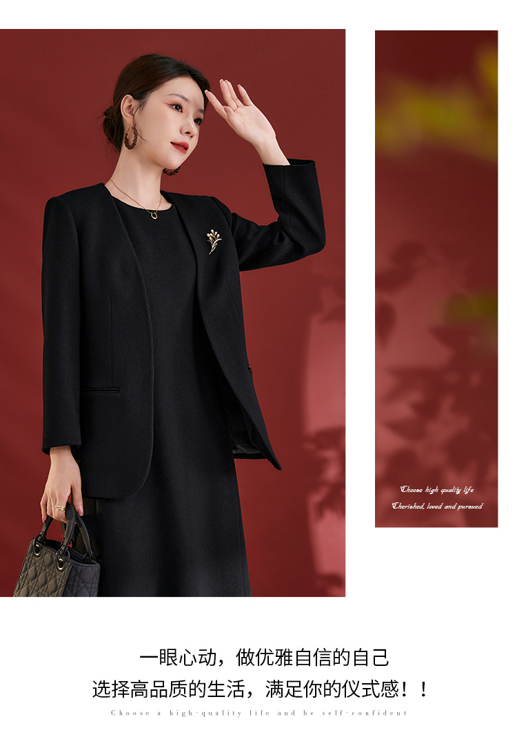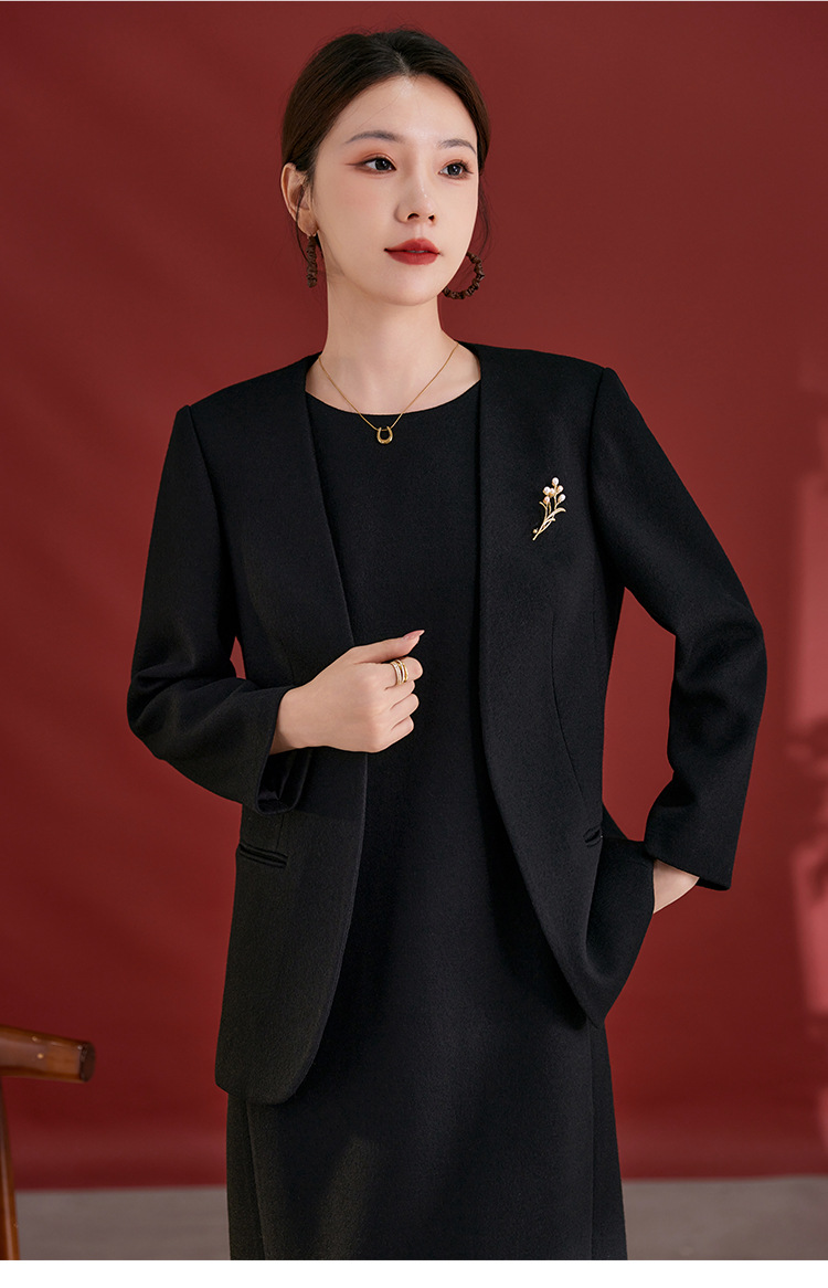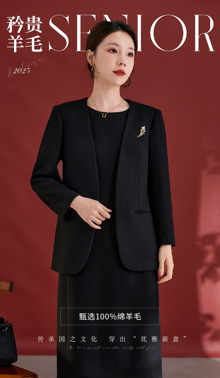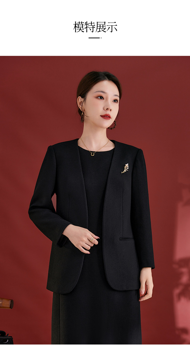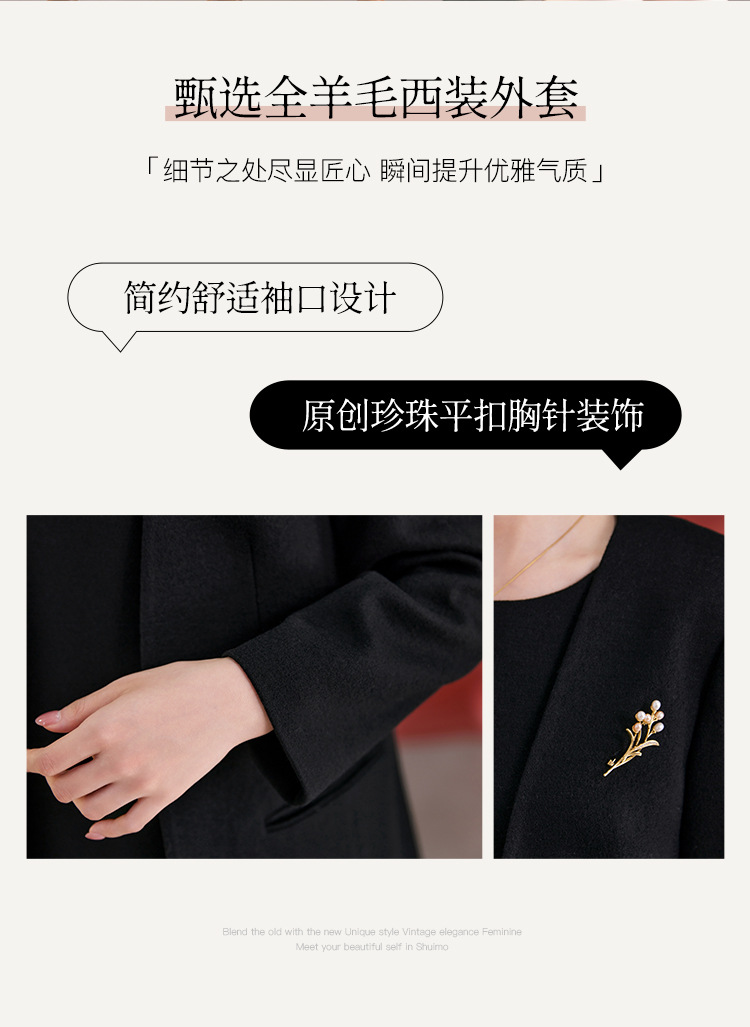 QS原创100羊毛气质西装外套女珍珠胸针设计感秋冬新款时尚百搭2751