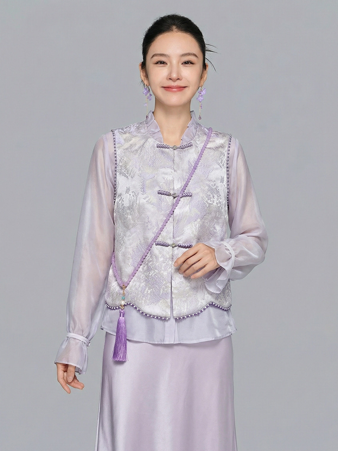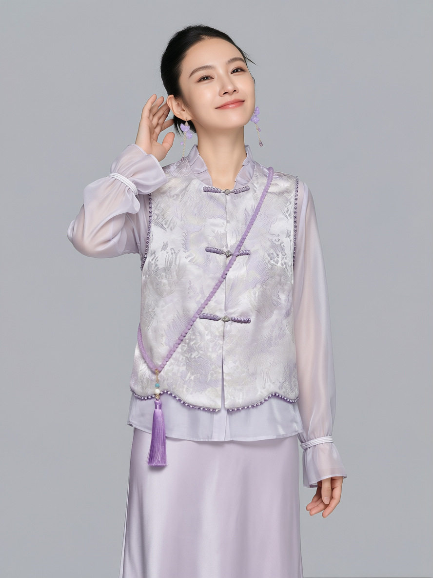 「自」全新升级【铂金会员284/天猫379/差价95】(13521)洛诗琳新中式盘扣马甲2026春夏新款时髦立领国风外套女