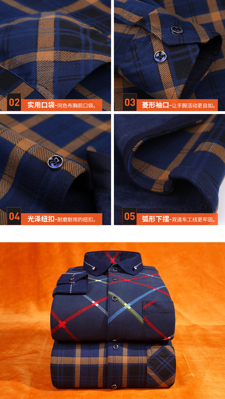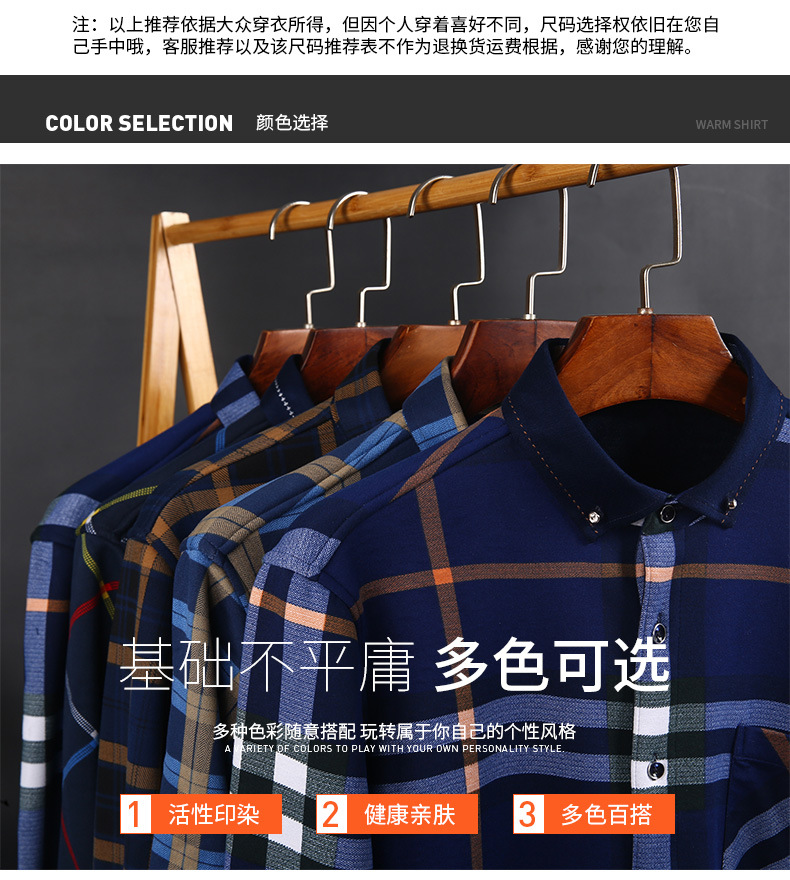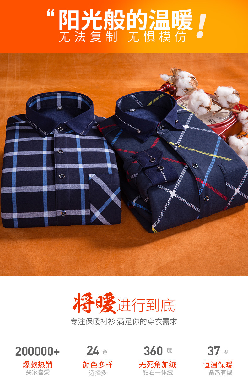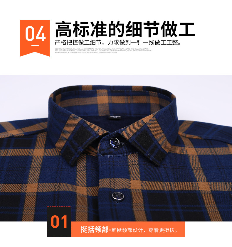 YL-9696秋冬新款格子保暖衬衫长袖加绒加厚带绒休闲中年衬衣