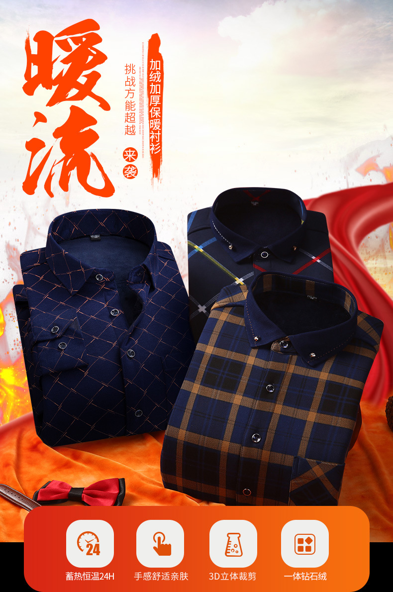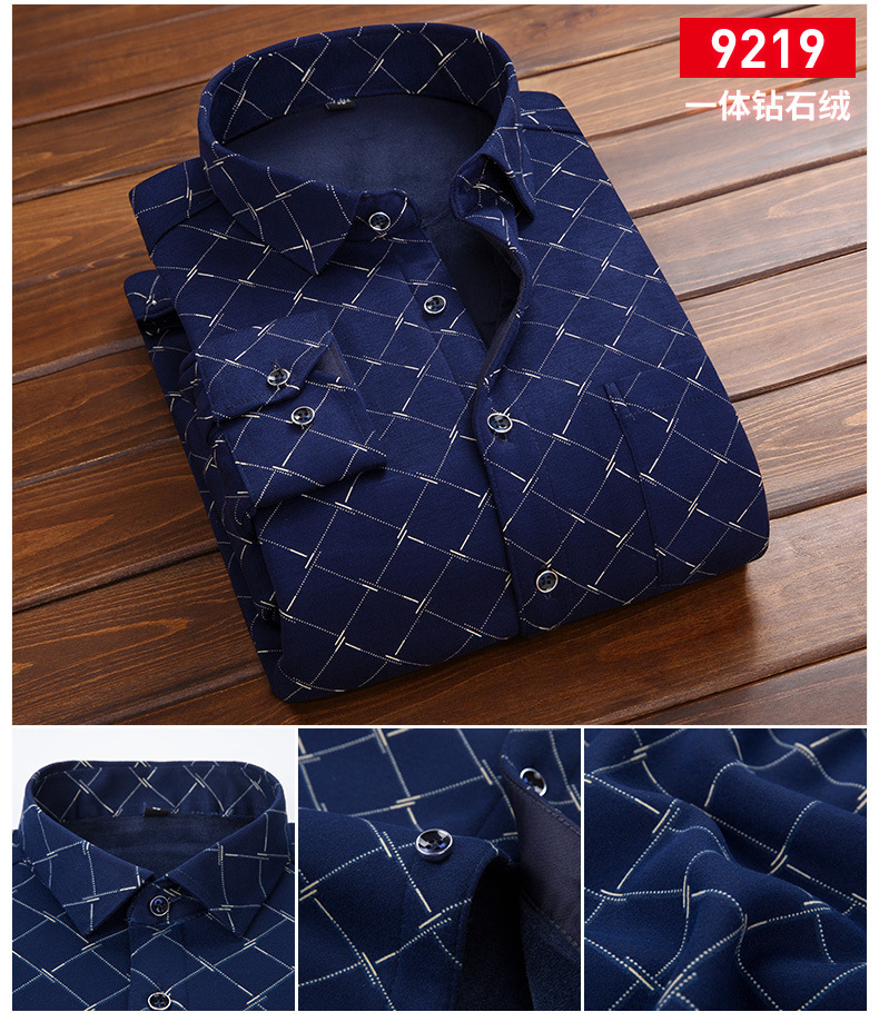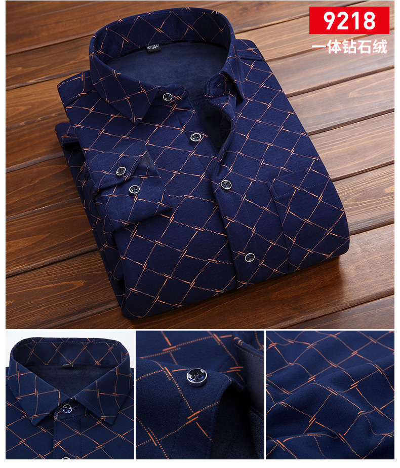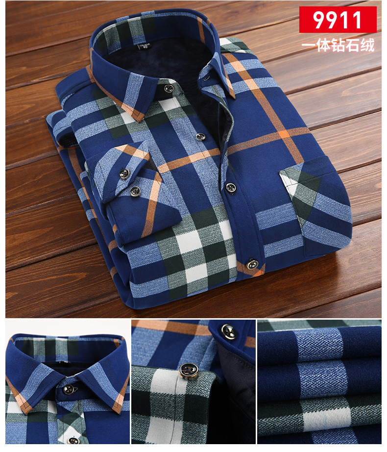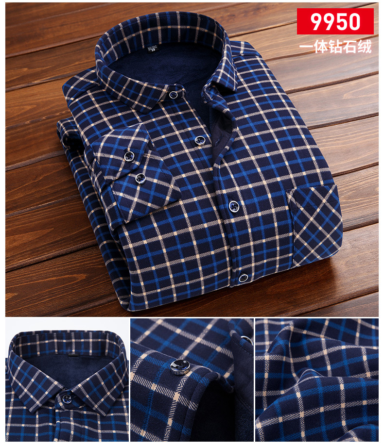 YL-9696秋冬新款格子保暖衬衫长袖加绒加厚带绒休闲中年衬衣