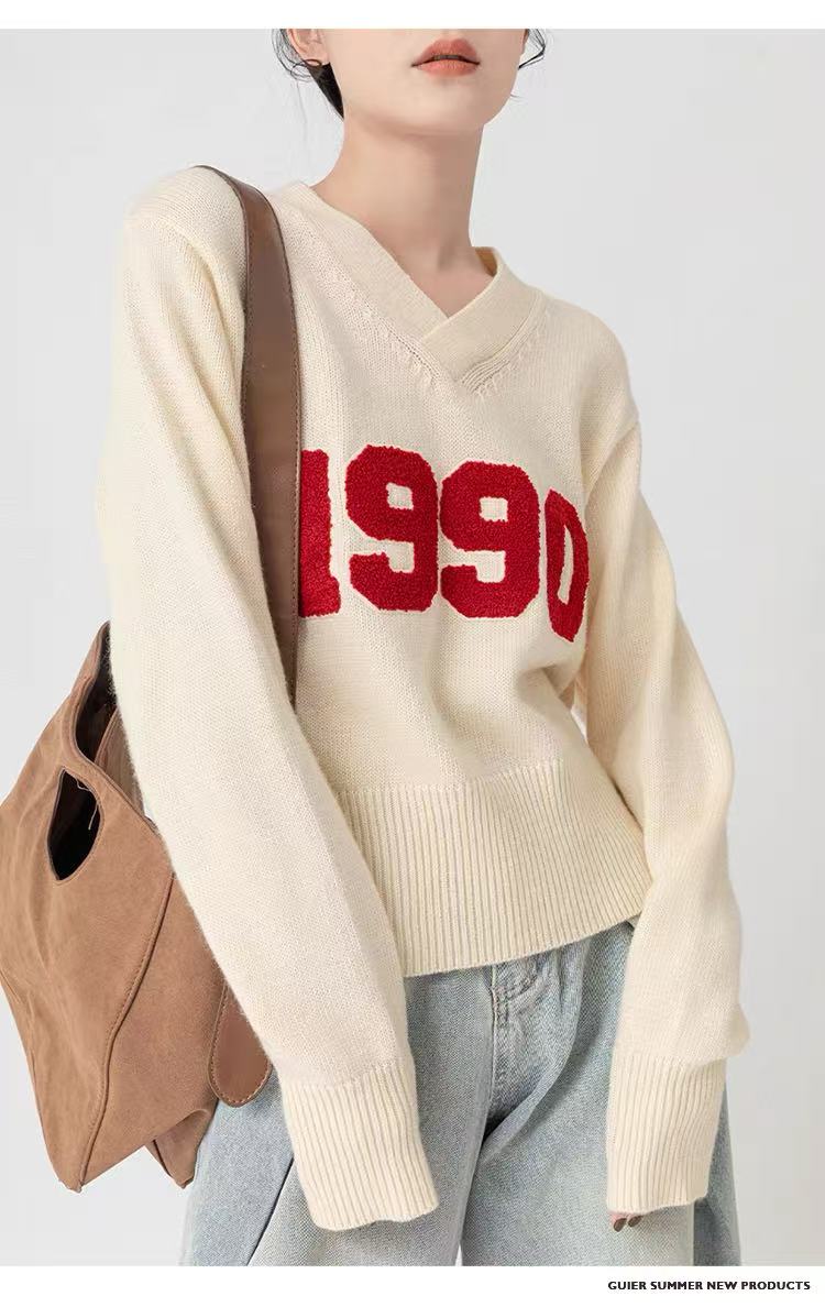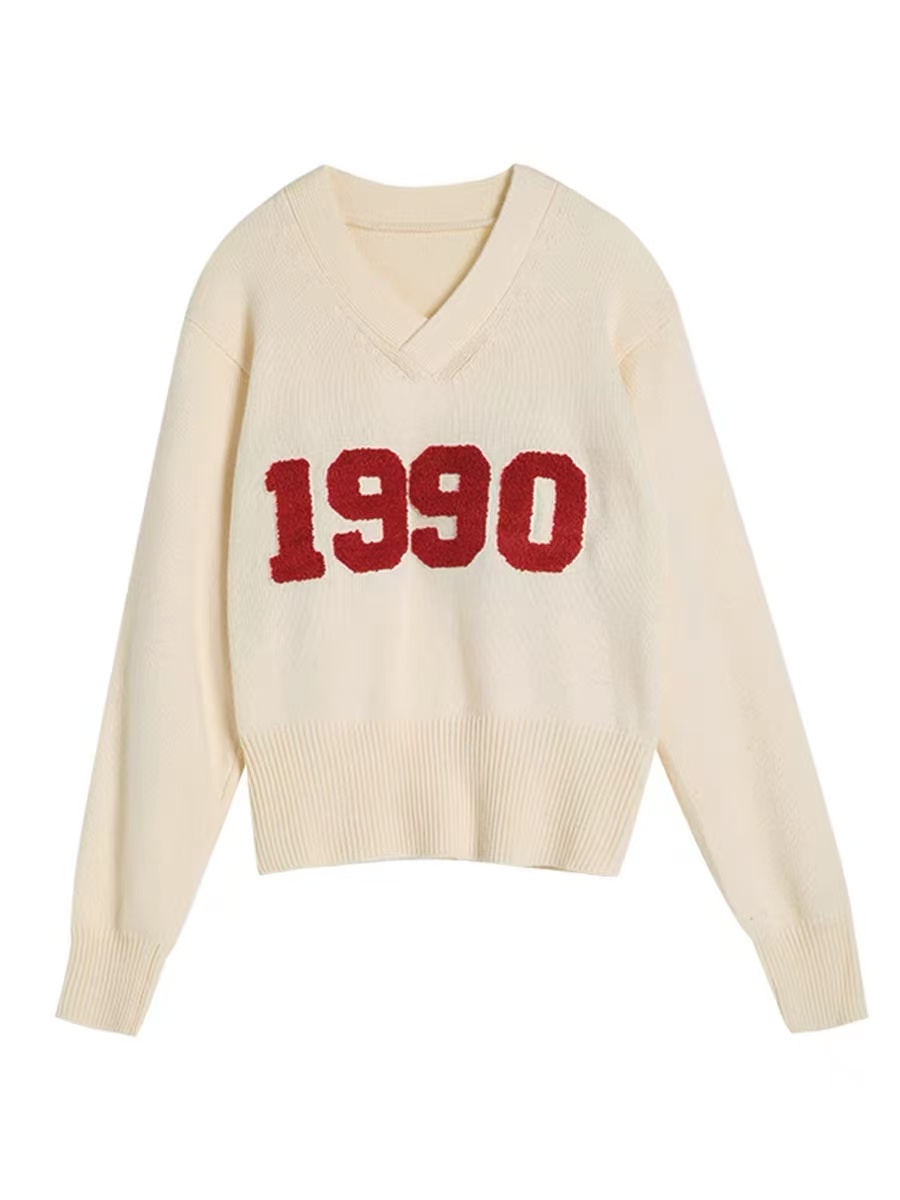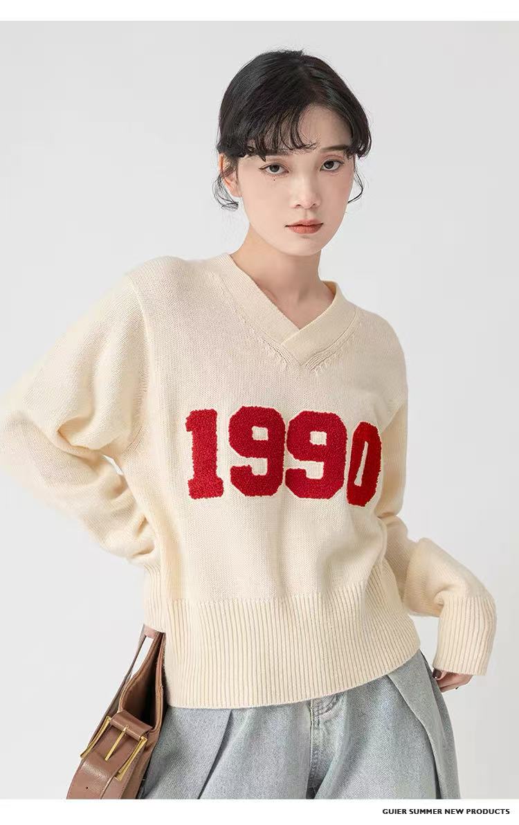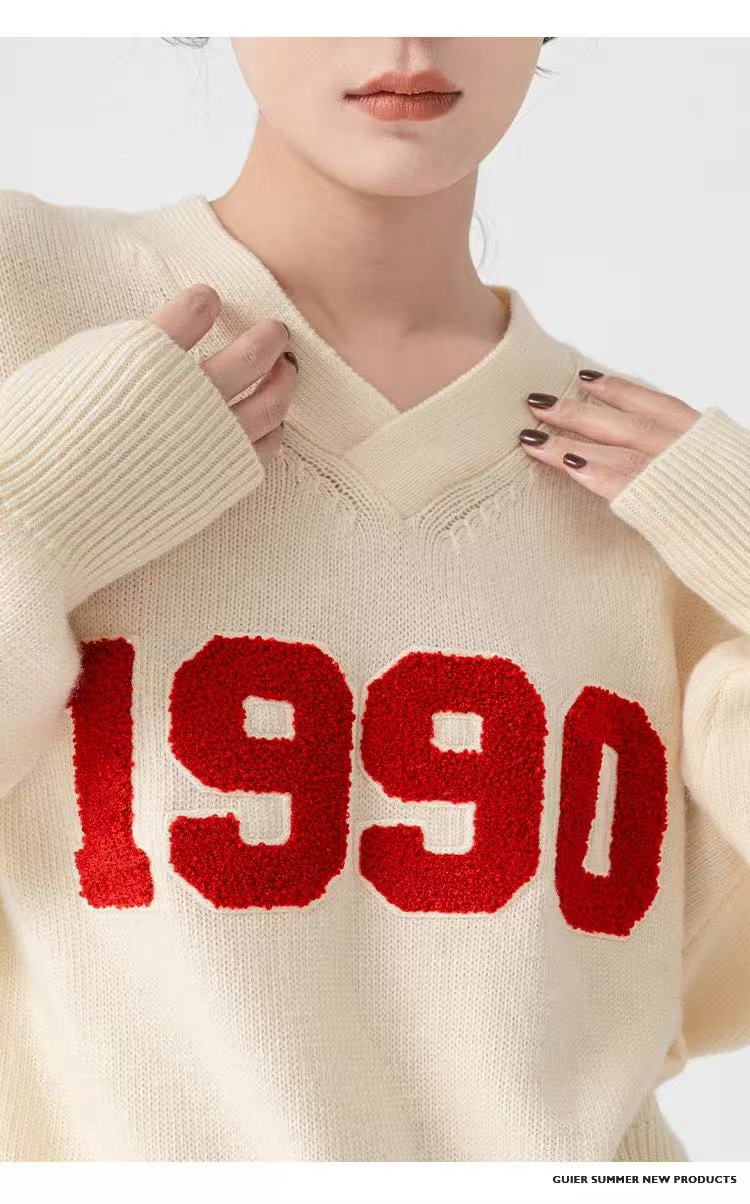 【孤品捡漏】G211米白撞色1990数字毛衣-喜出