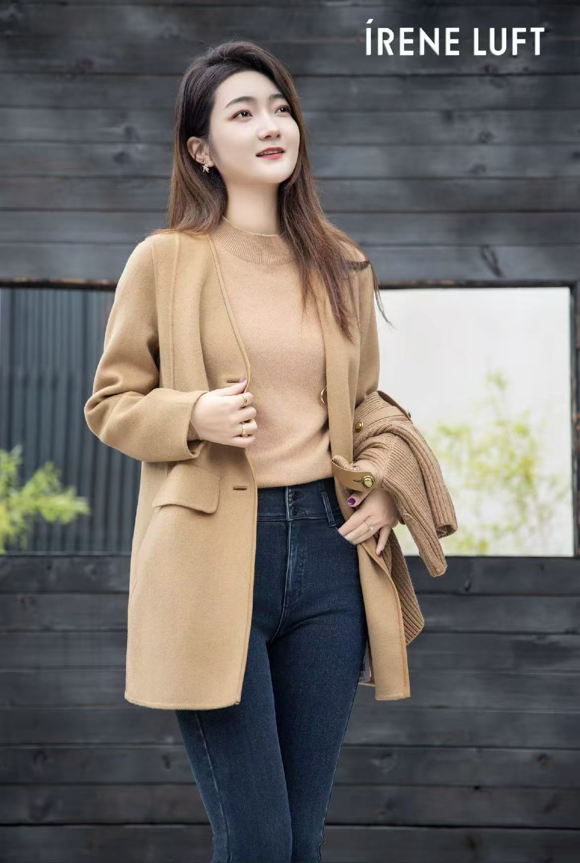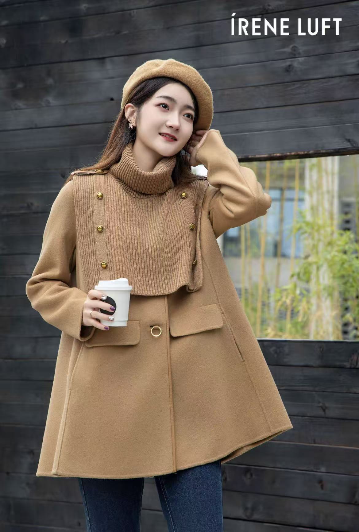 【高端系列】(包边是真羊皮)手工定制207款9.8%羊绒➕90.2%羊毛双面尼大衣送针织披肩-喜出