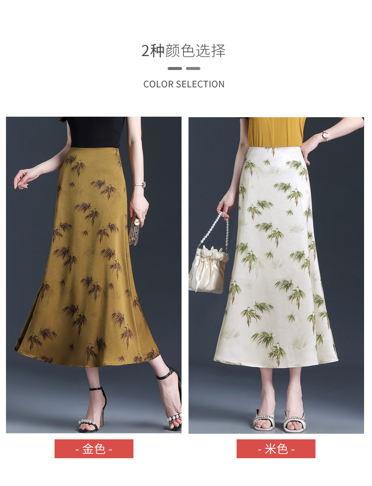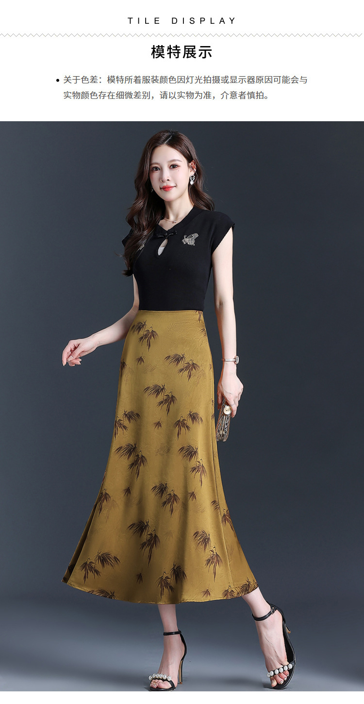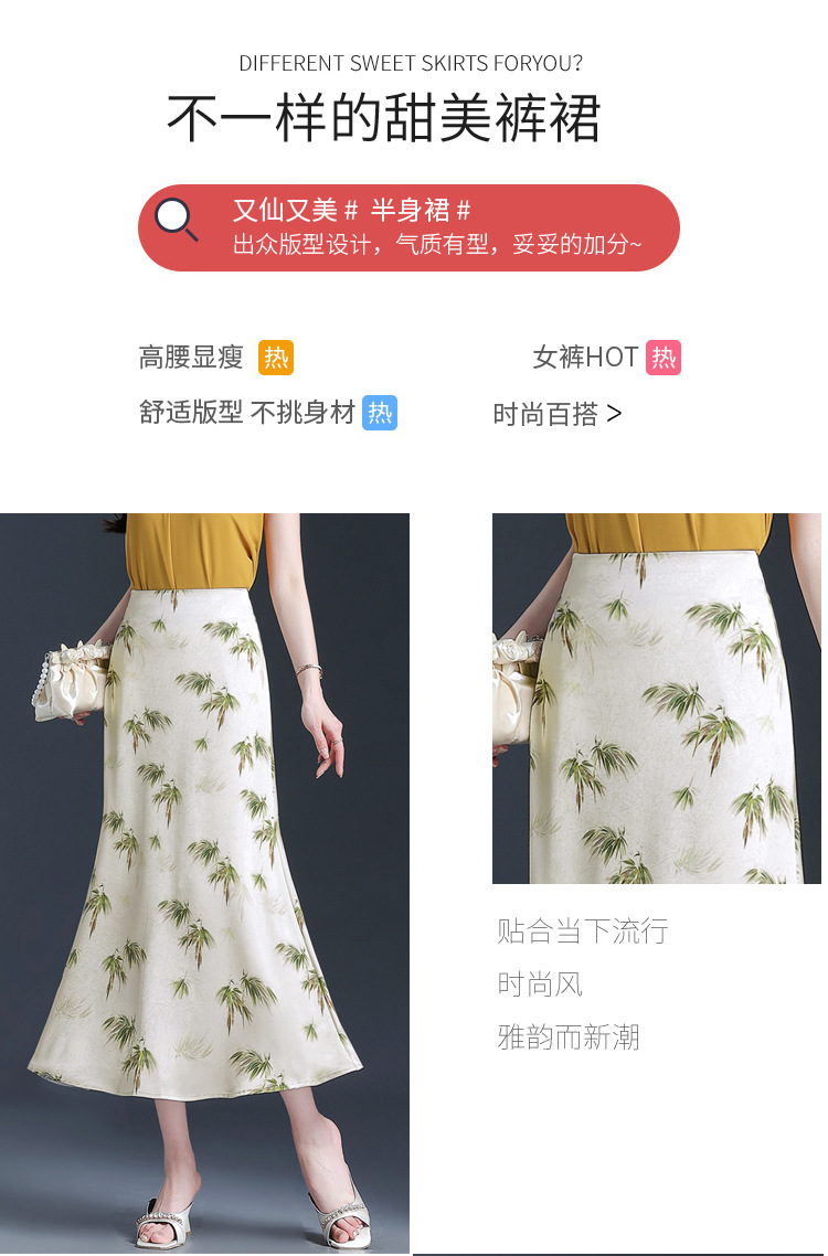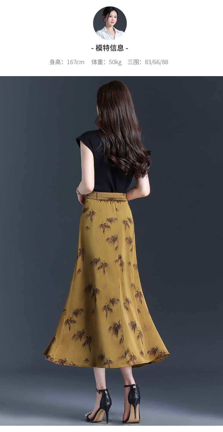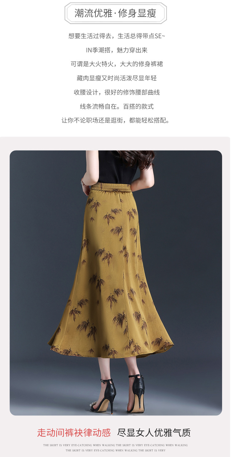 印花长款鱼尾裙,后腰松紧通勤半身裙MYX-JY-6787-L