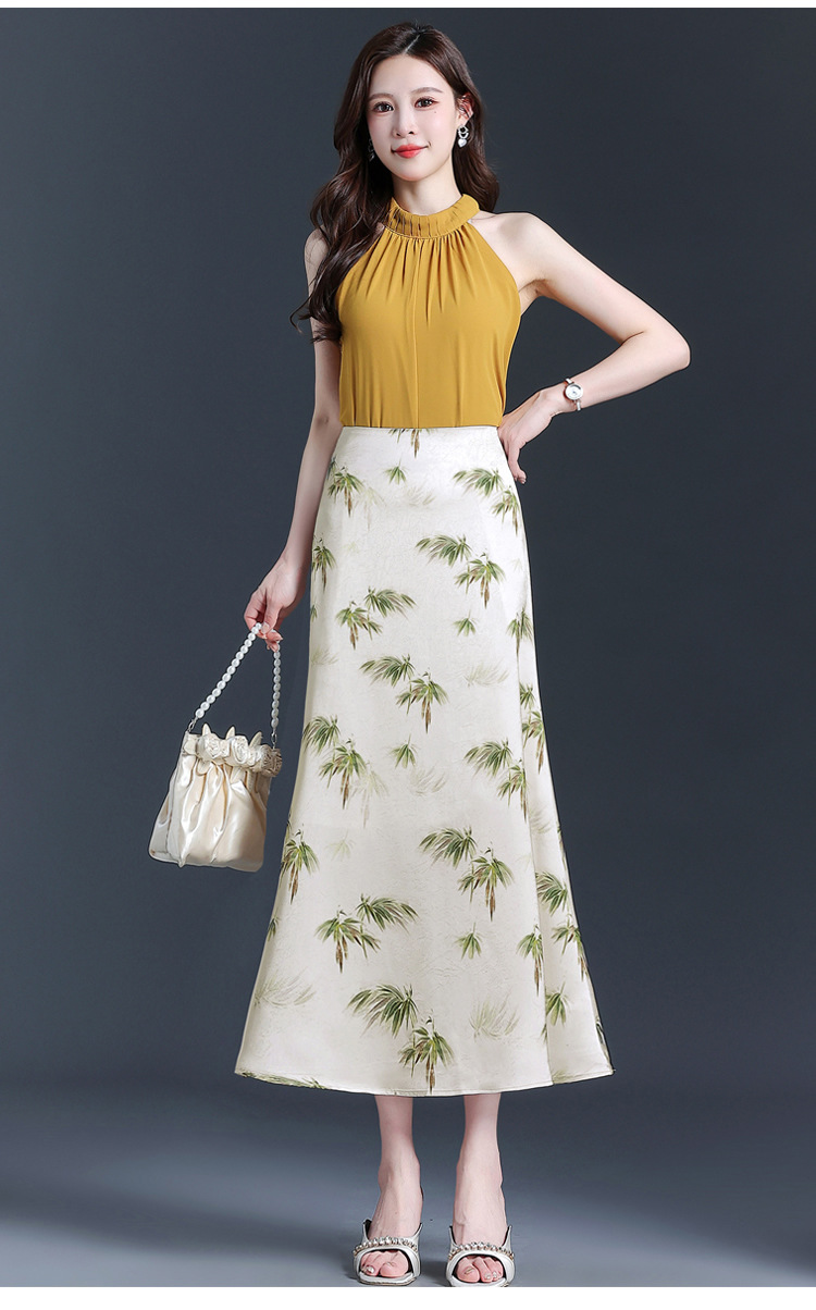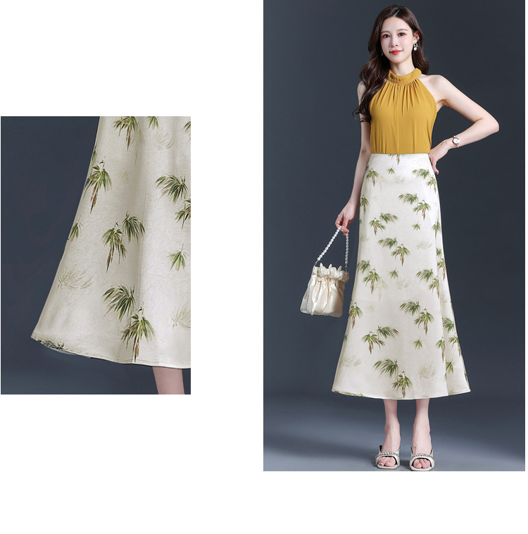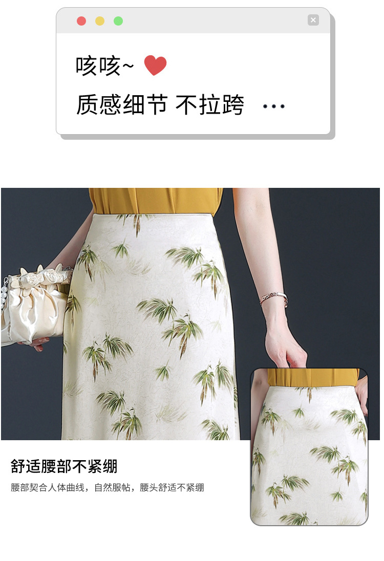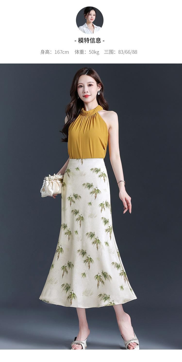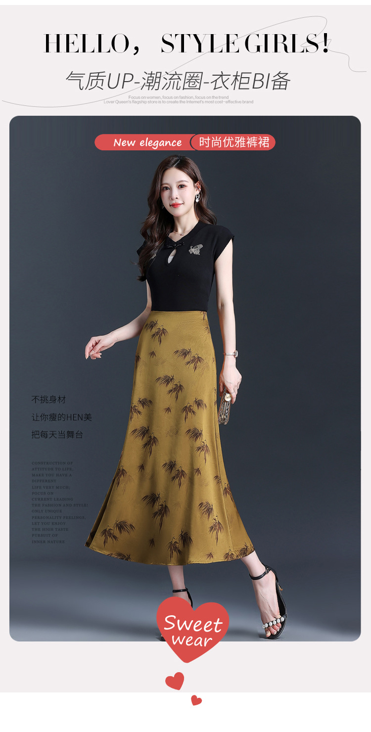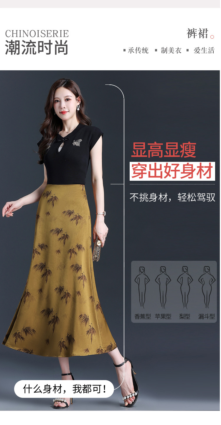印花长款鱼尾裙,后腰松紧通勤半身裙MYX-JY-6787-L