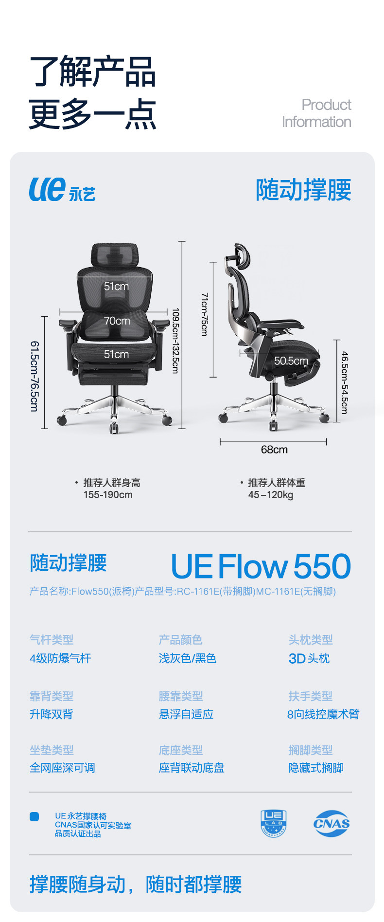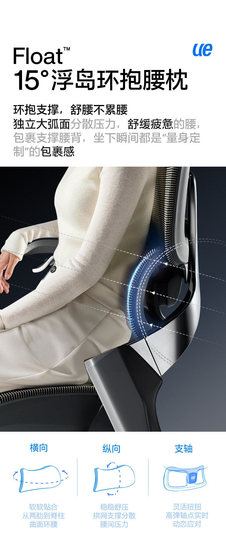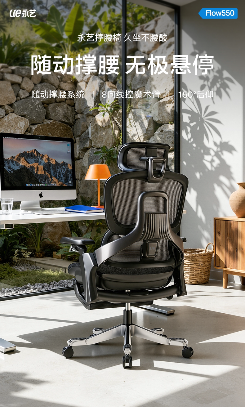 【随动撑腰 专利科技】ue永艺Flow550系列人体工学椅 3D云端环抱颈枕