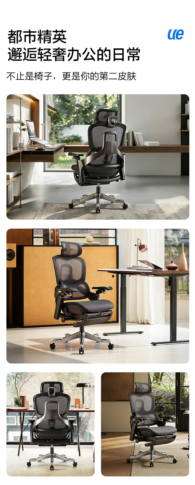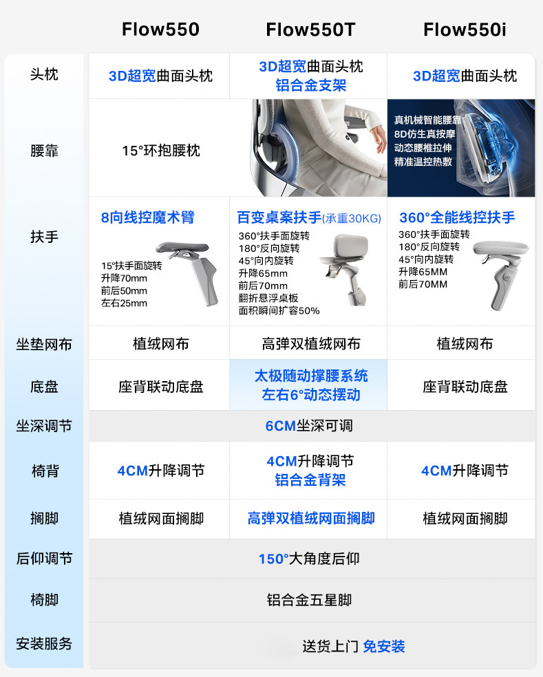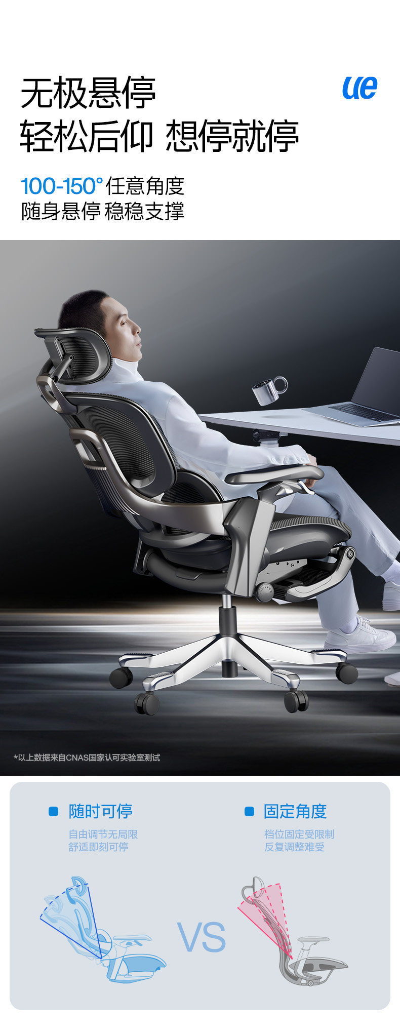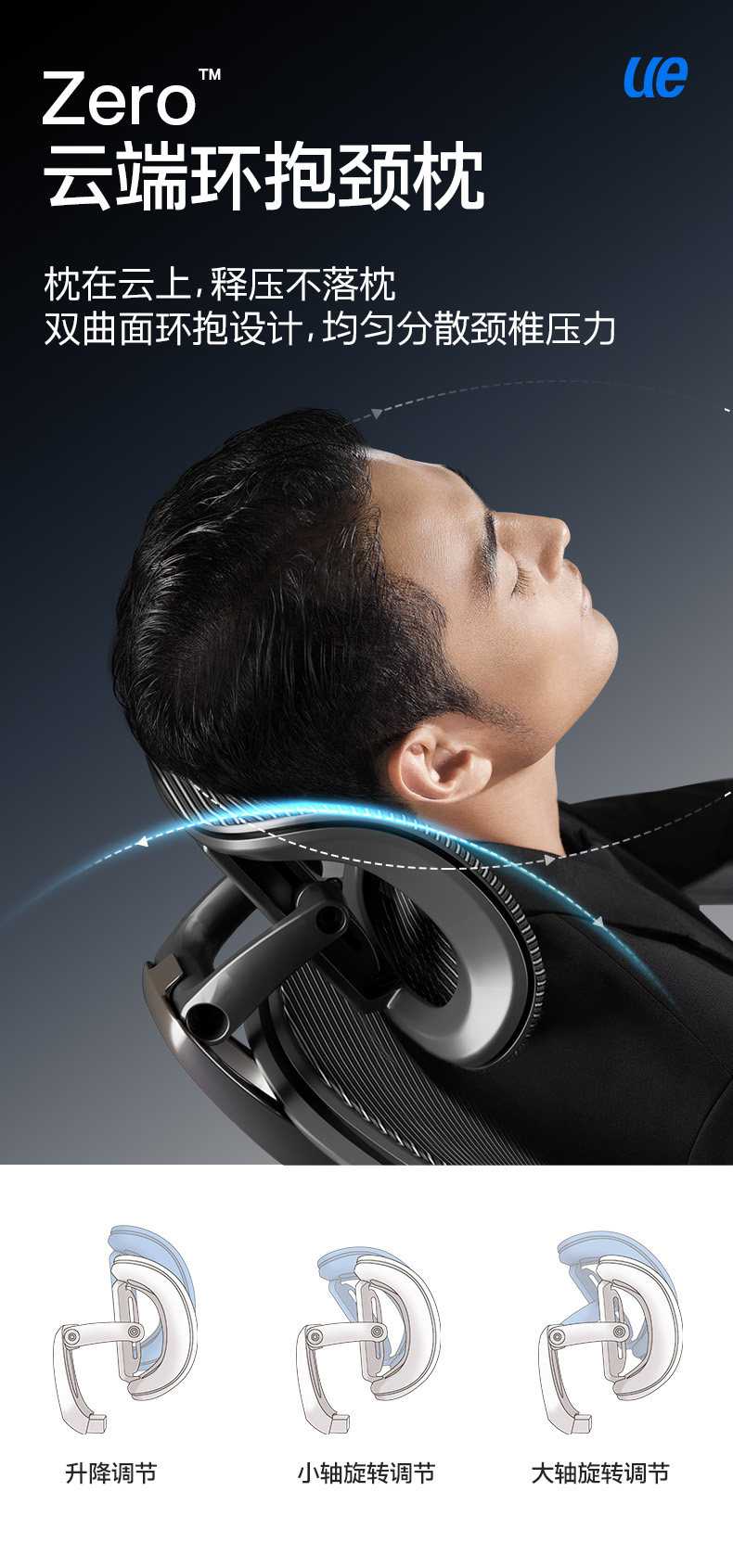 【随动撑腰 专利科技】ue永艺Flow550系列人体工学椅 3D云端环抱颈枕