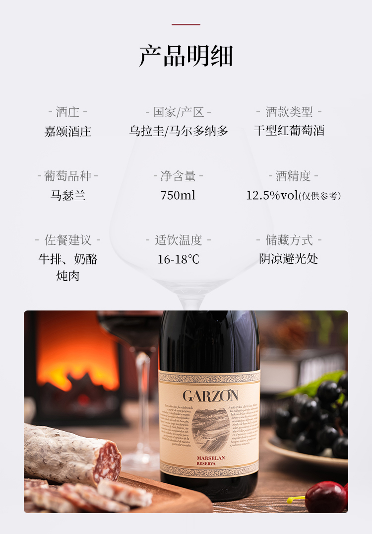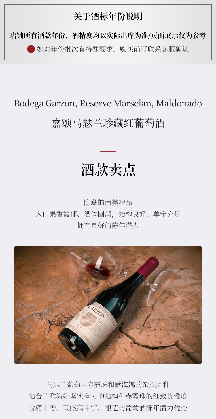 乌拉圭嘉颂马瑟兰珍藏红葡萄酒 2021 Bodega Garzon Reserve Marselan Maldonado