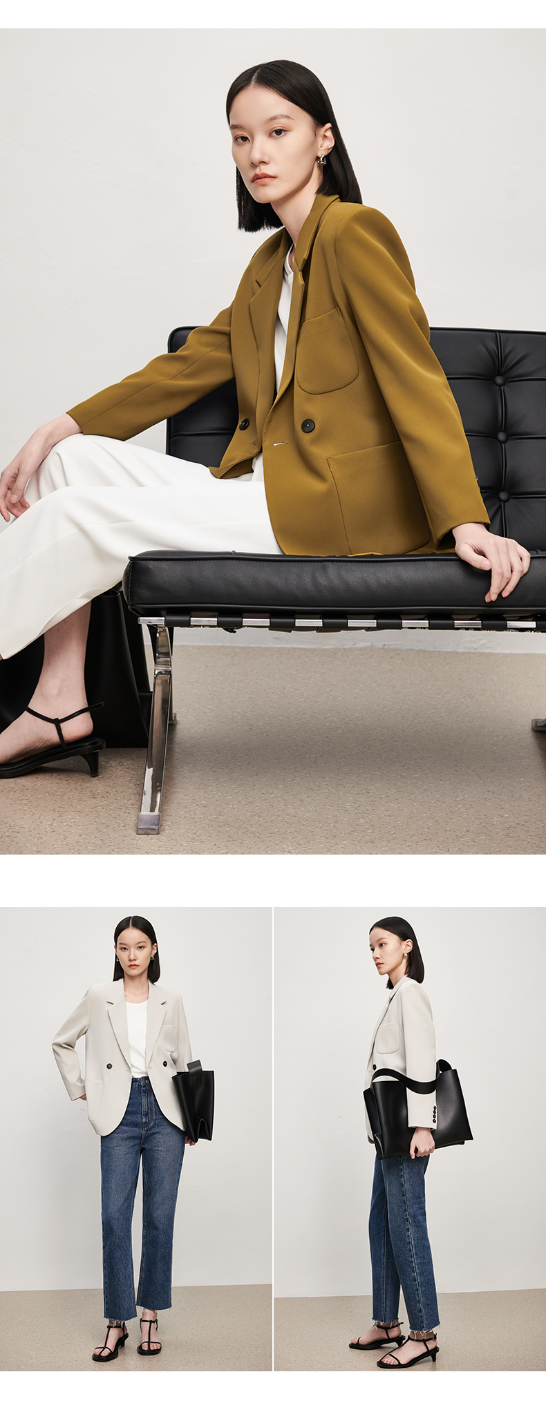 IN AND ON2023春季新款不易皱斜纹质感西装轻奢休闲通勤西服外套