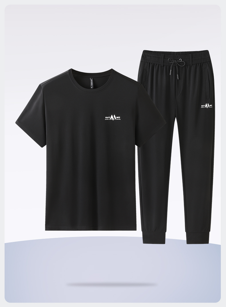 【Q】【新款DWN】大依优型大码短袖T恤套装束脚休闲裤加肥加大休闲裤大号裤子长裤夏季宽松胖子男装