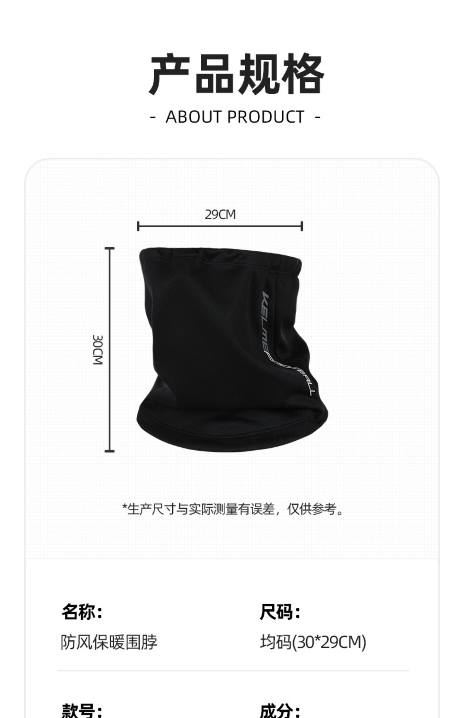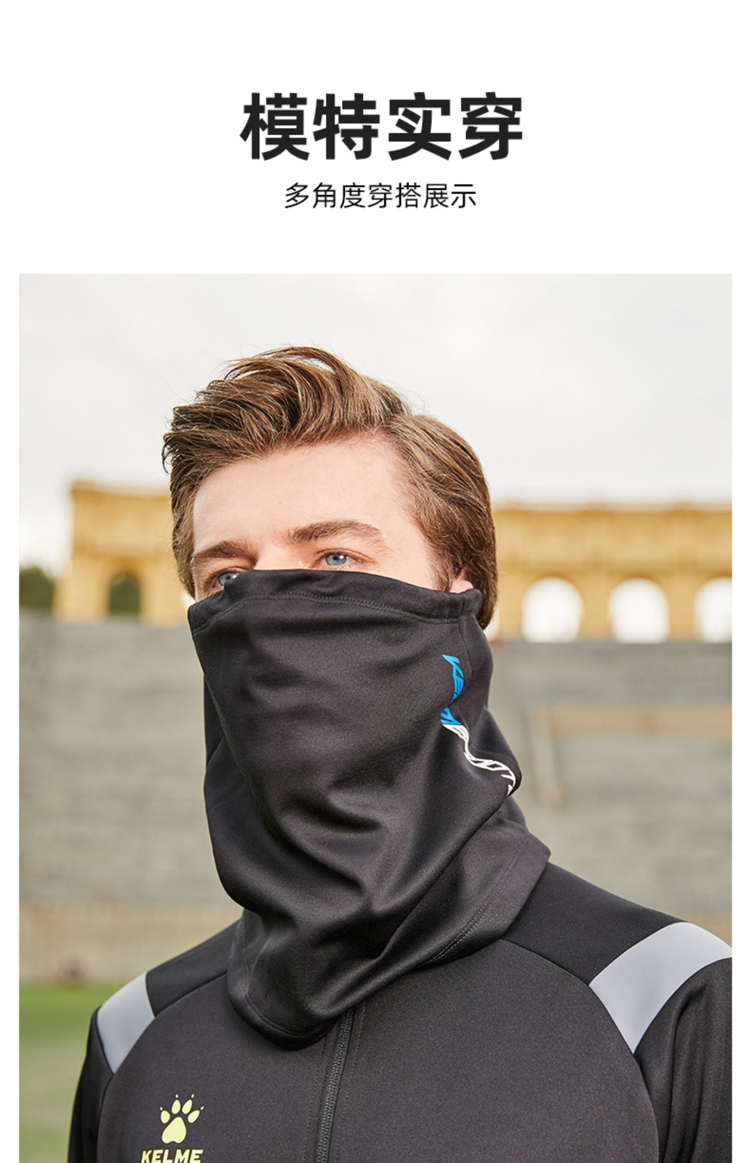 卡尔美运动围脖男冬季新款足球跑步运动装备厚脖套防风面罩