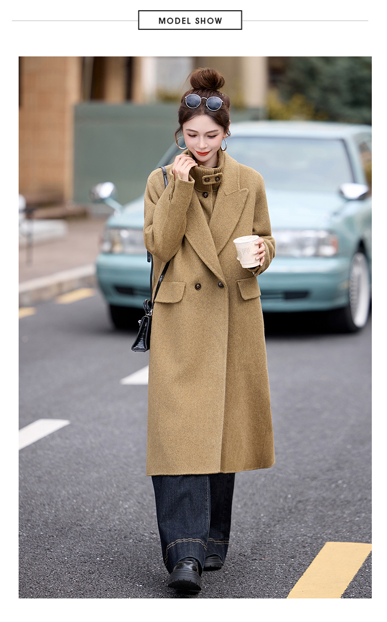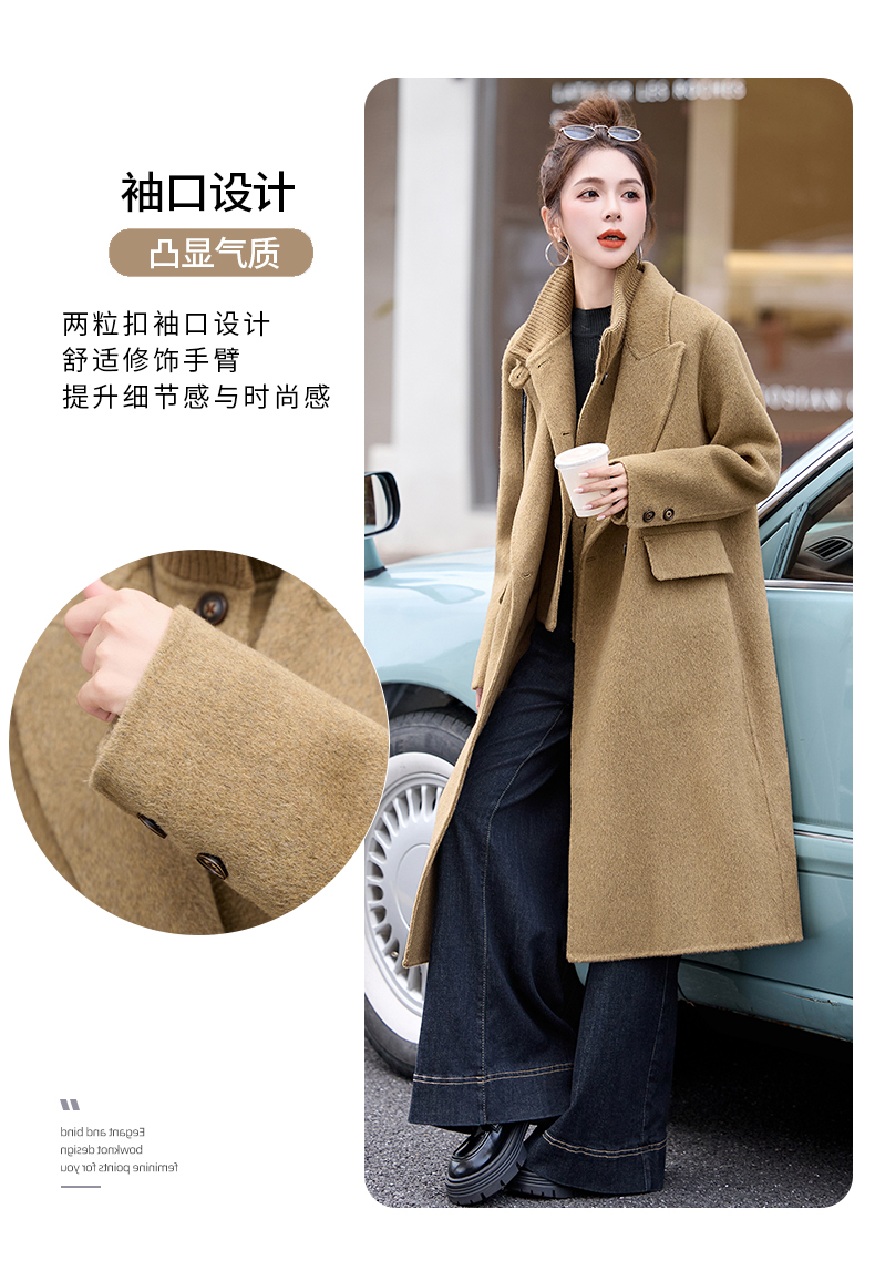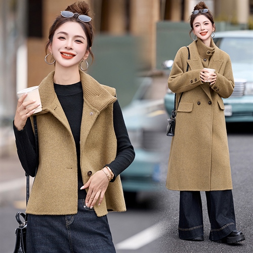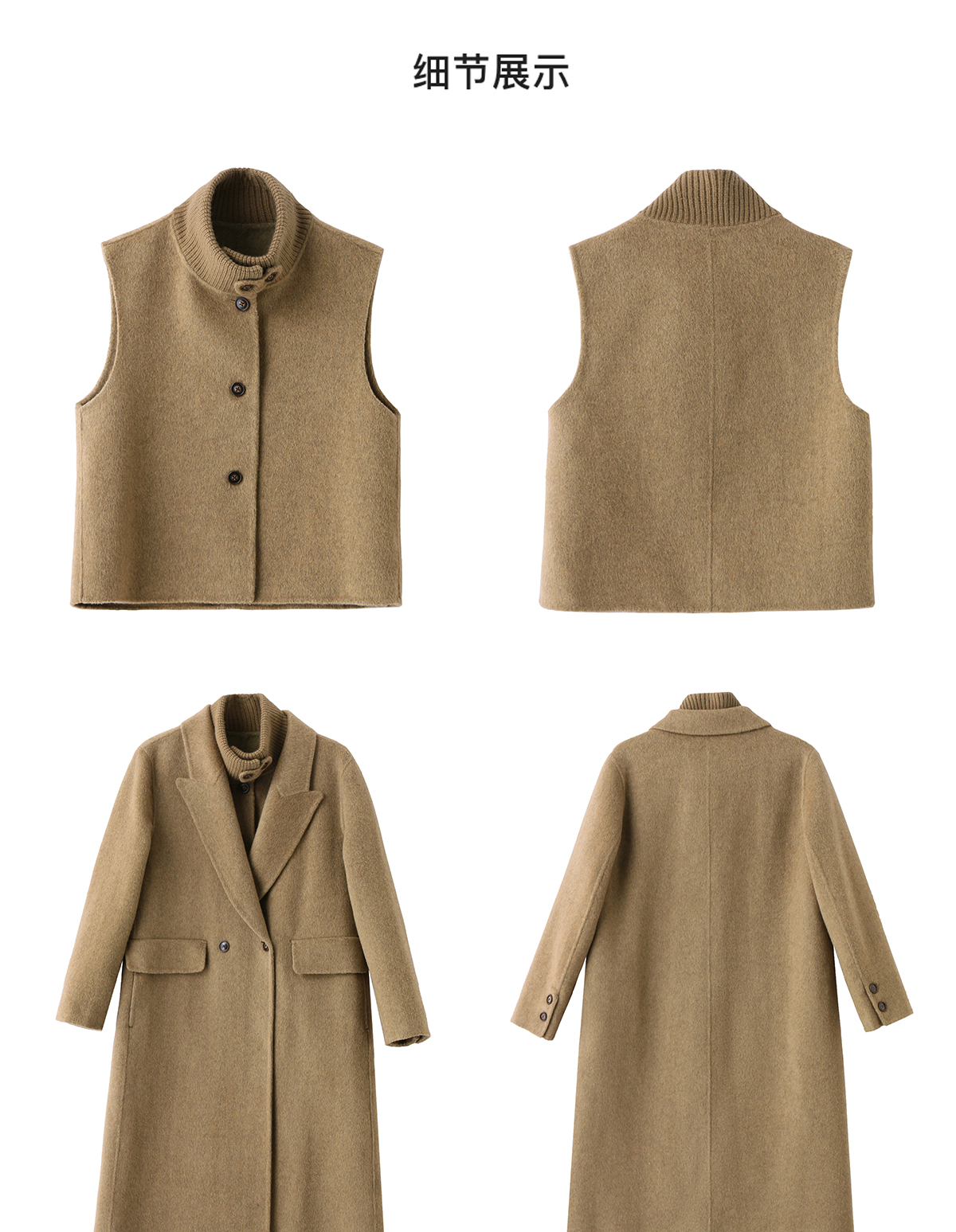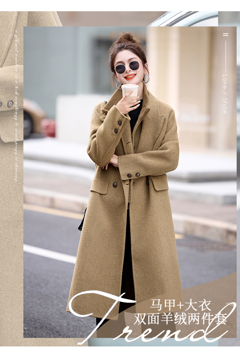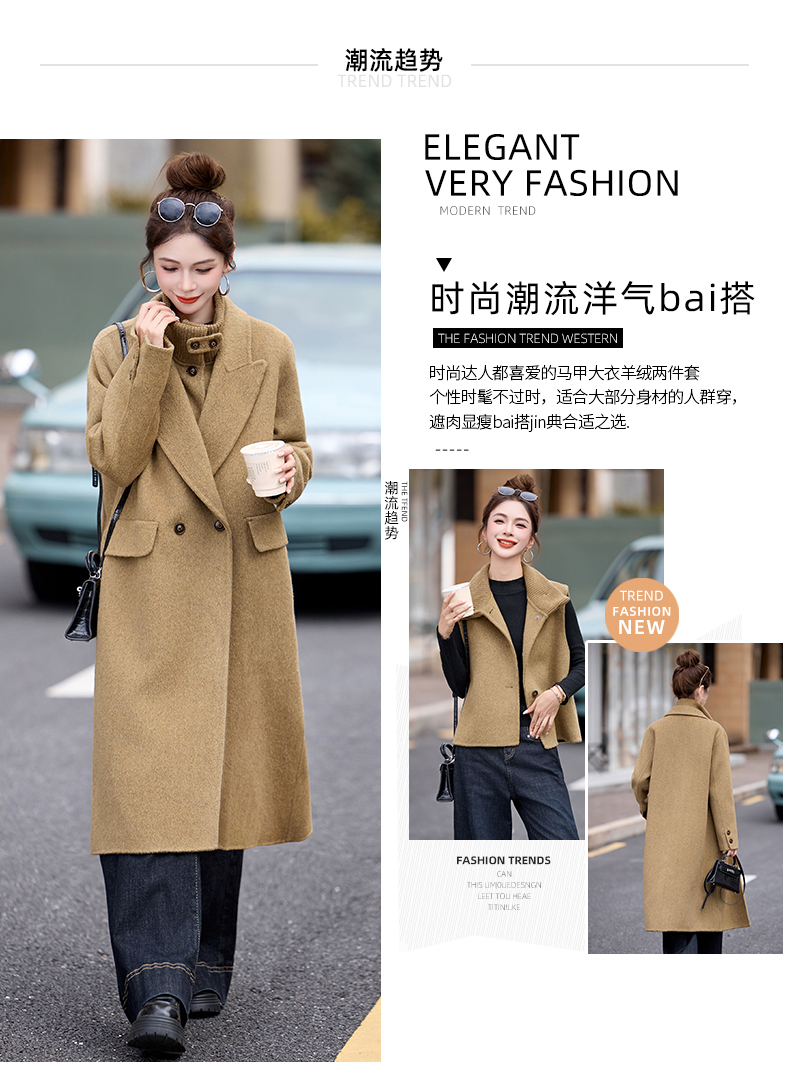 双面羊绒大衣,韩系宽松中长款高端马甲两件套HR-QMC6886