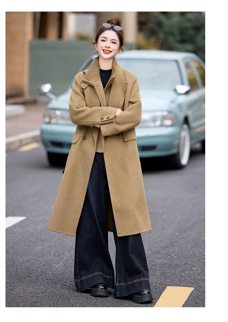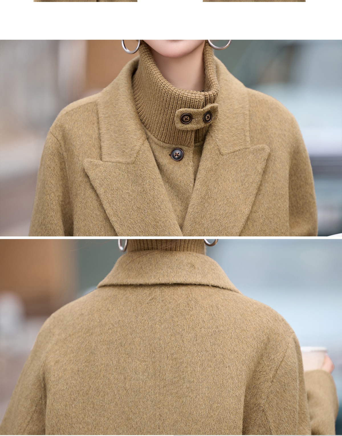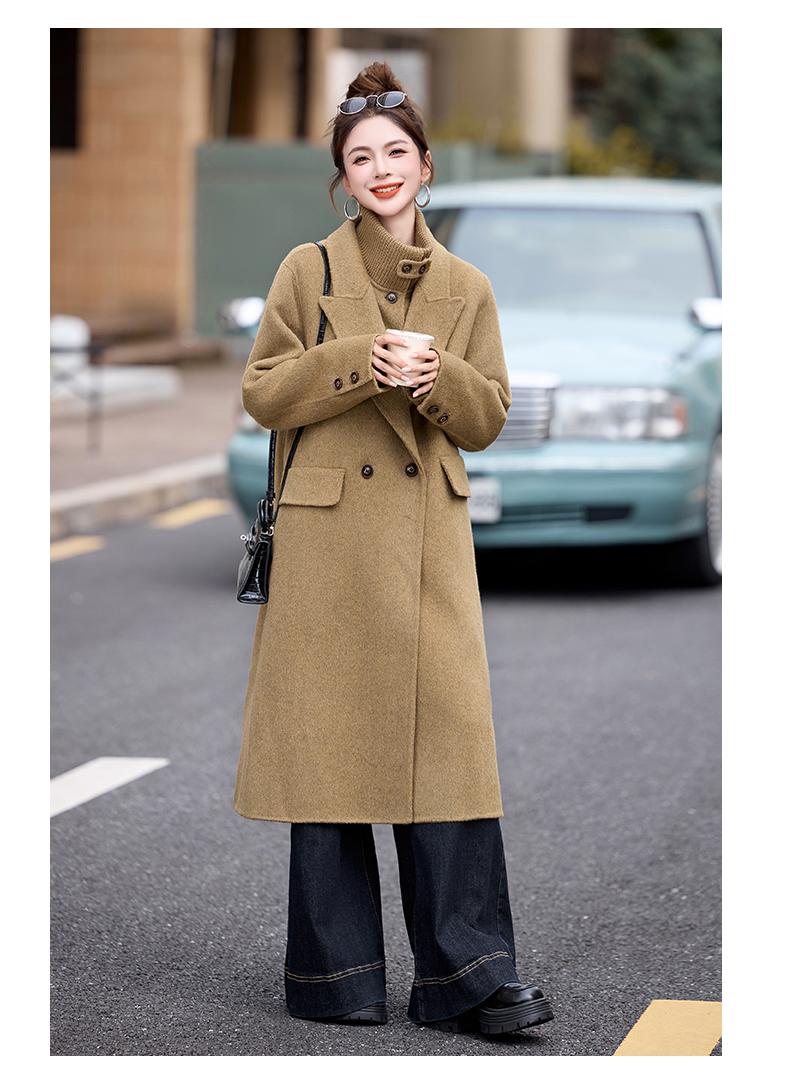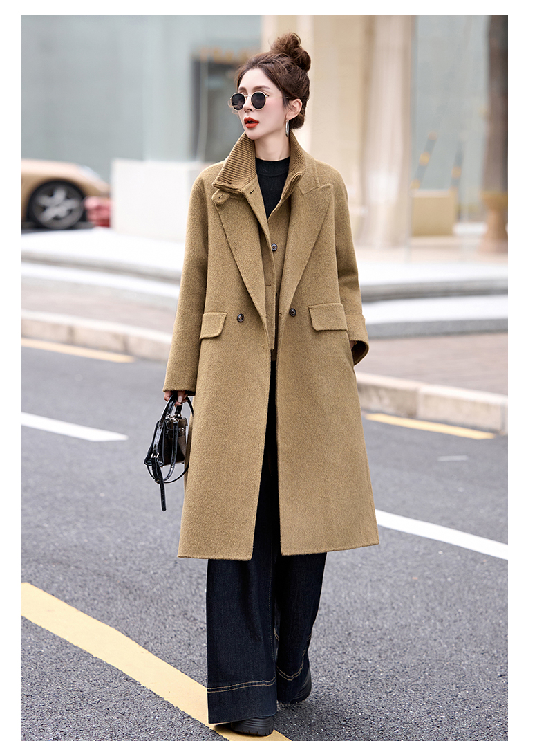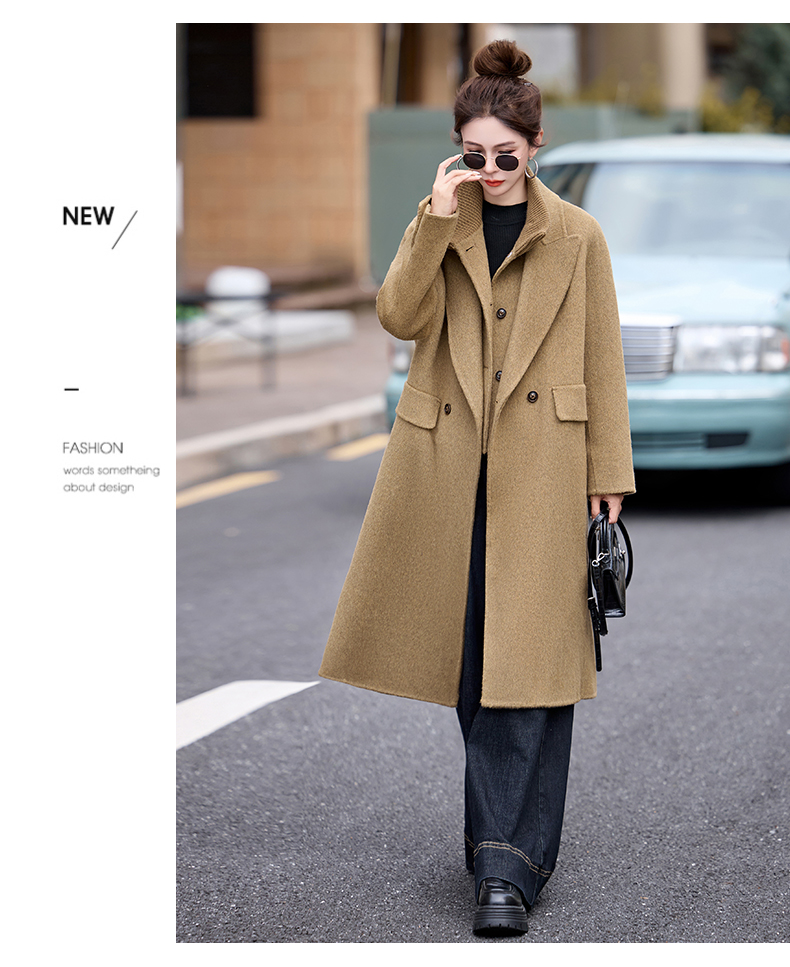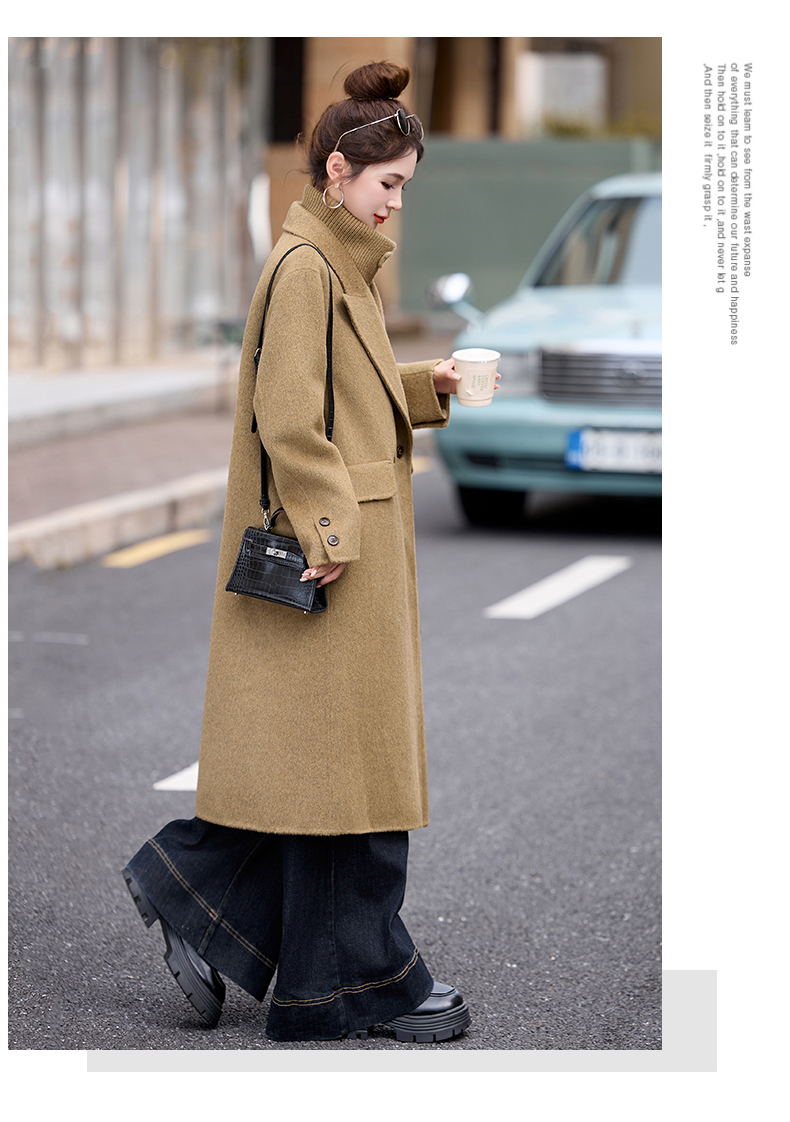 双面羊绒大衣,韩系宽松中长款高端马甲两件套HR-QMC6886