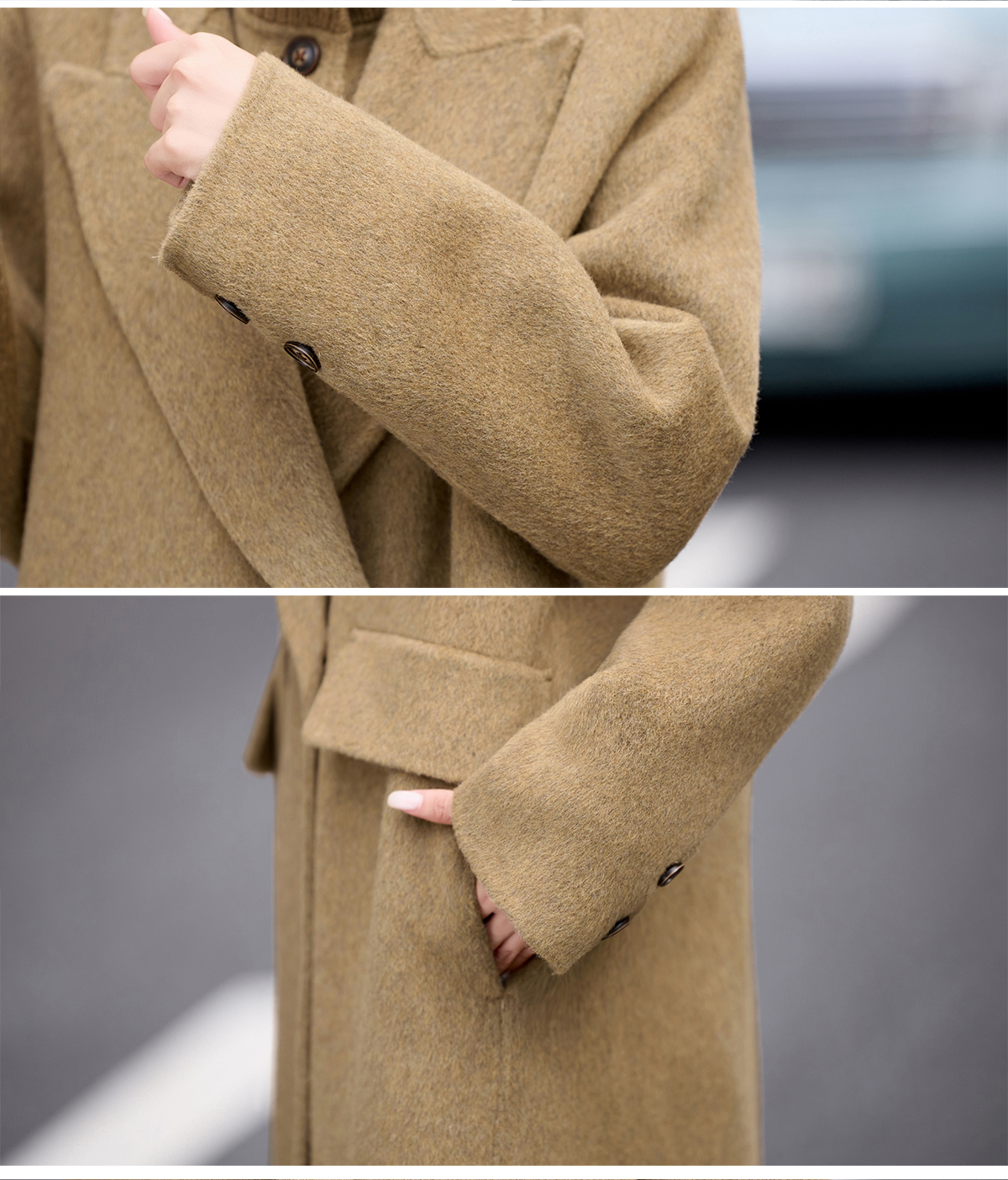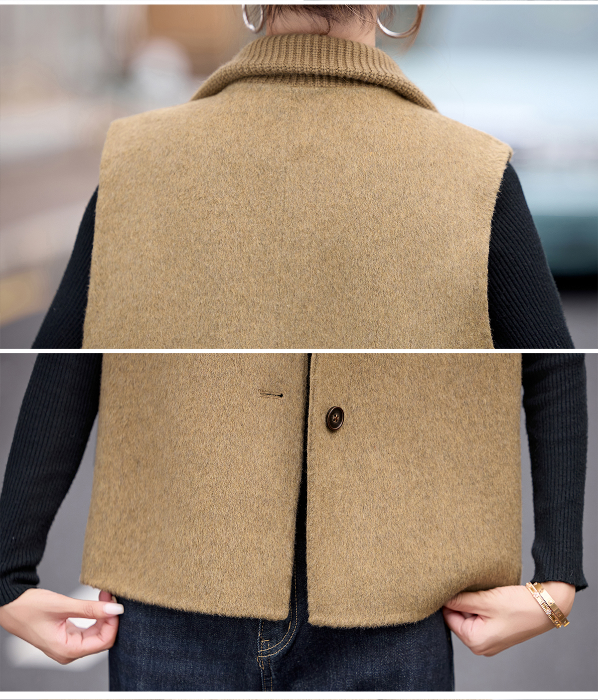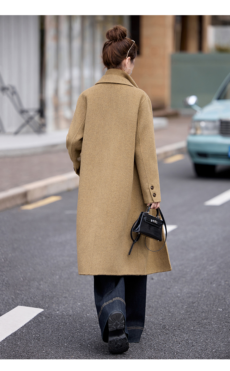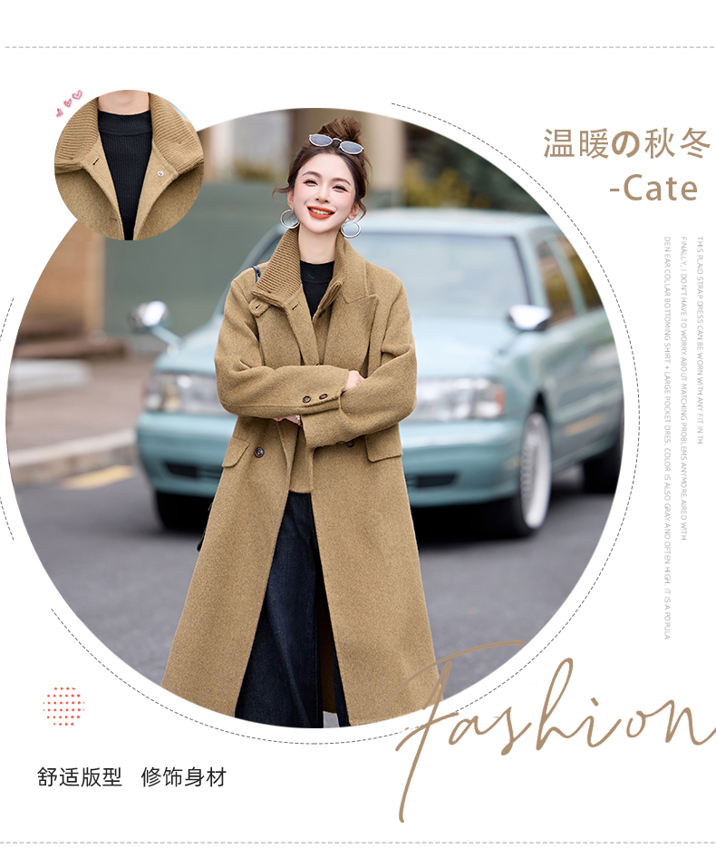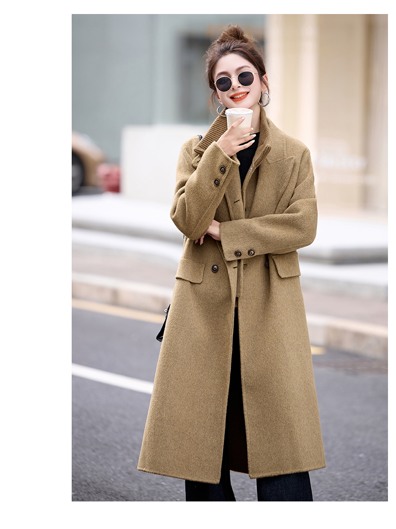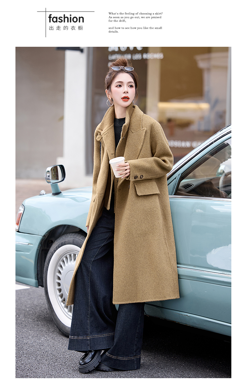 双面羊绒大衣,韩系宽松中长款高端马甲两件套HR-QMC6886