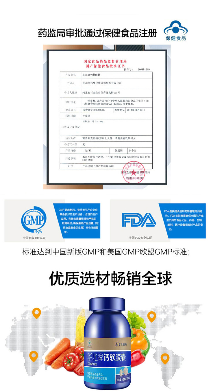 华北牌钙软胶囊 100粒/瓶 含CPP 更易吸收 孕妇可以服用的钙