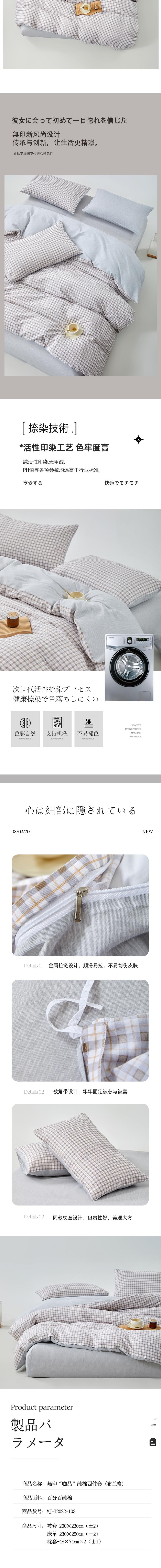 無印良品 咖品纯棉四件套-布兰格200x230cm MJ-T2022-103-3
