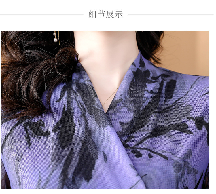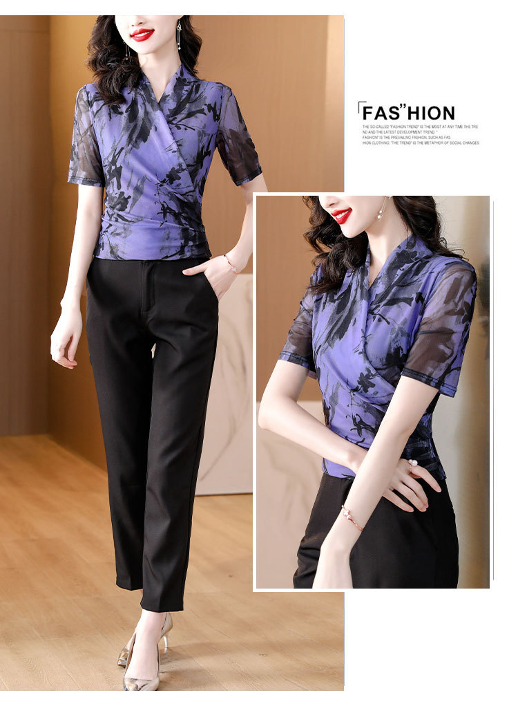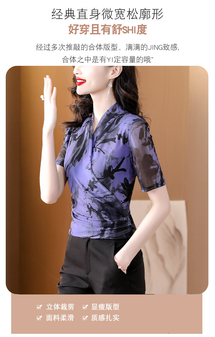 V领短袖双层网纱T恤修身针织网眼透气交叉领小衫K-460H2612