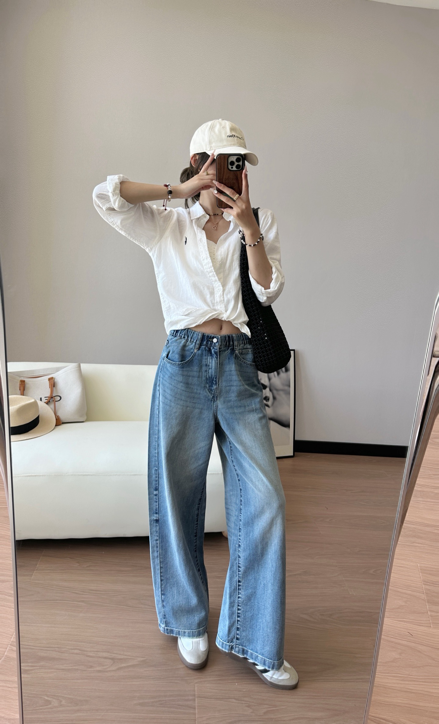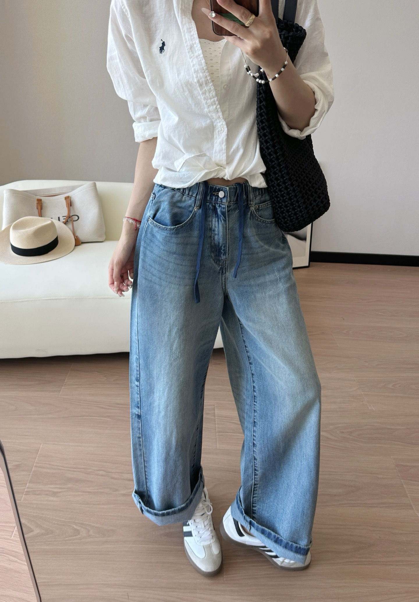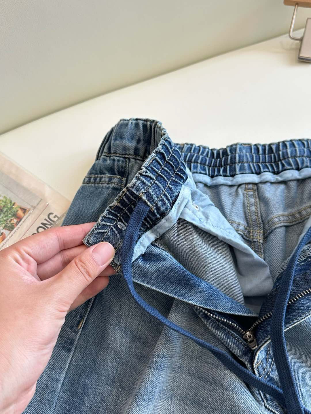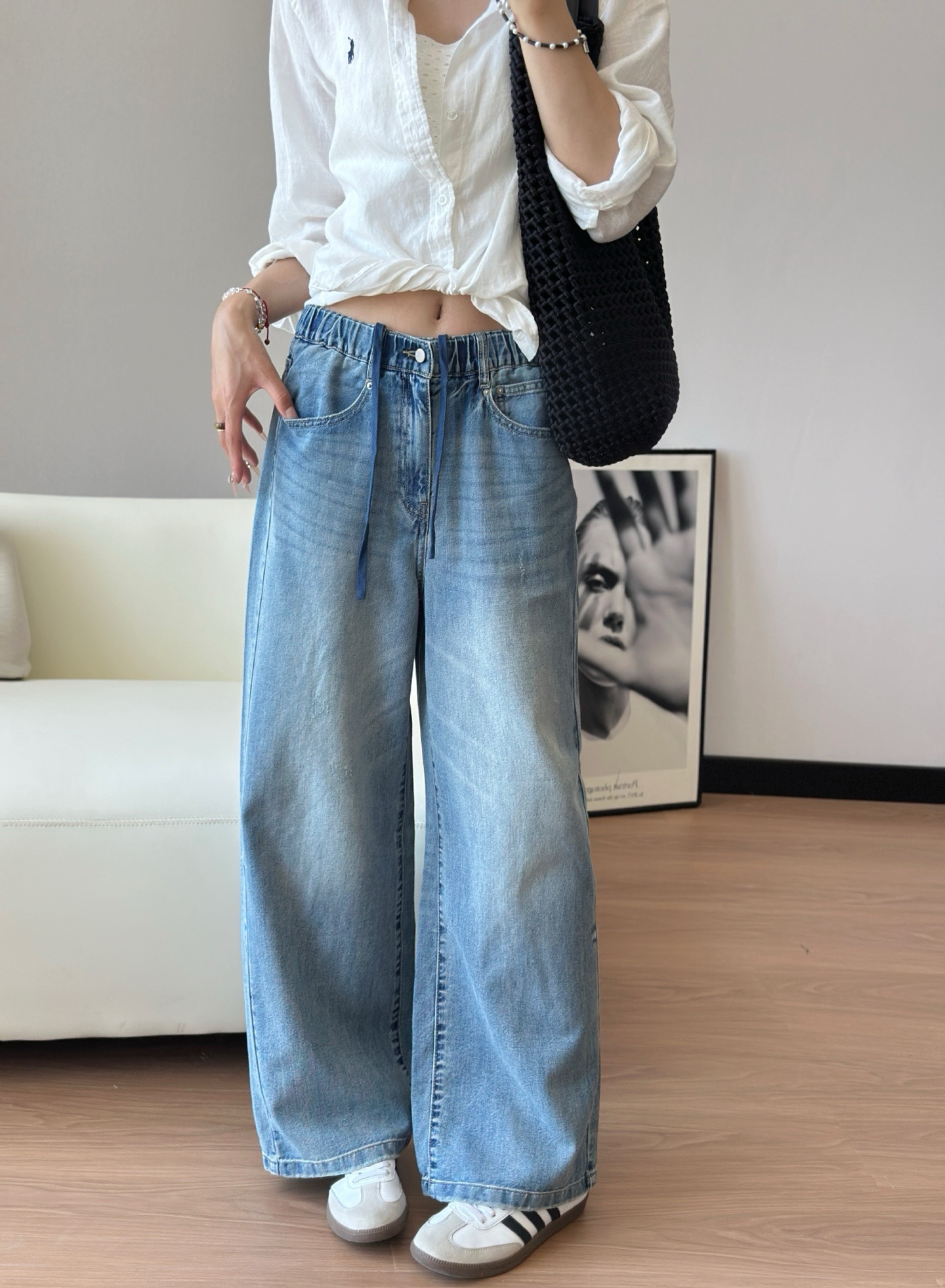 25年春夏新款!很有休闲感的一条牛仔裤,版型也很棒,整体是那种很遮肉的的阔腿裤型,不挑身材,包容度很好,洋气又时髦,搭配性很好,特别舒服的天丝牛仔裤哈,强烈推荐入手!全部都是Y厂工艺,做旧纽扣,ykk拉链,拼接的松紧带,内里添加了抽绳设计,舒适贴合没有紧绷感,包容性非常强,腰部里侧都做了包边的,内侧走线加固,结实稳固。