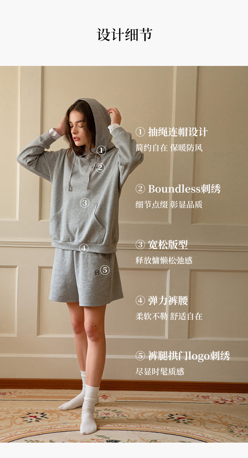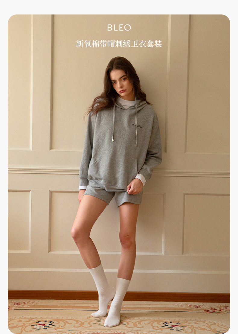 BLEO 新氧棉带帽 Boundless刺绣卫衣套装家居服