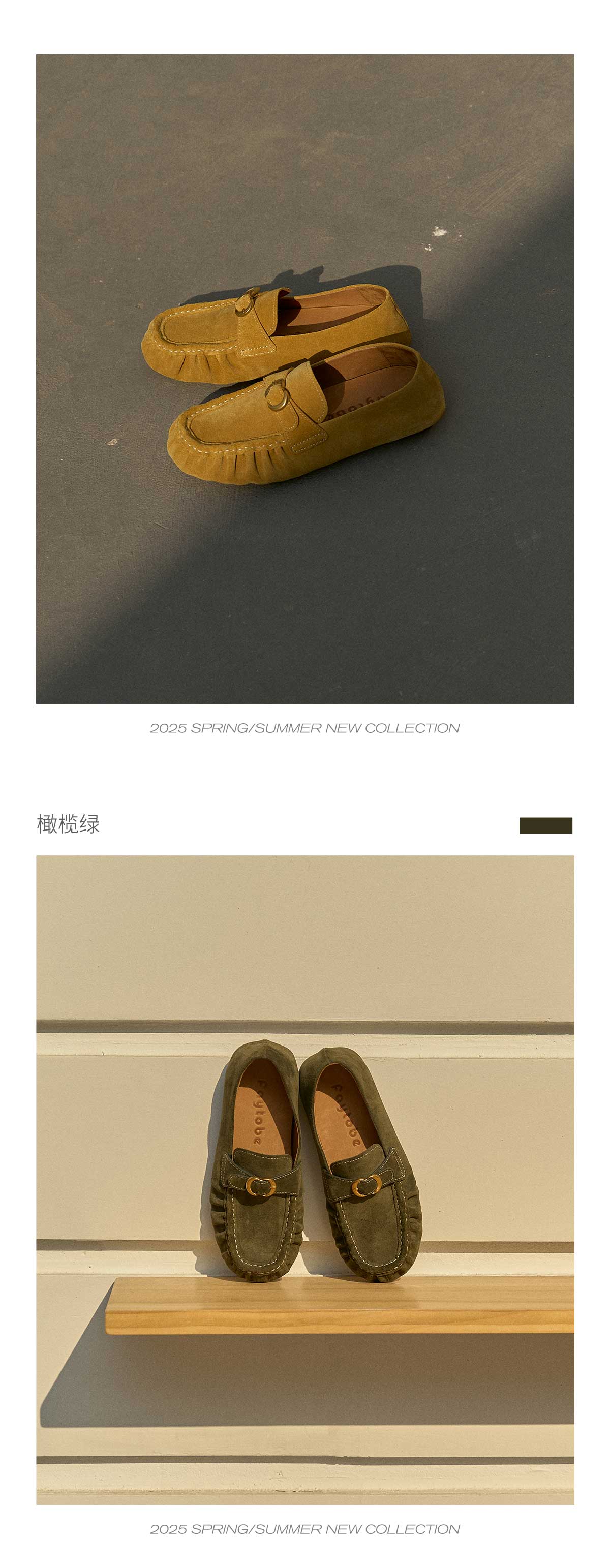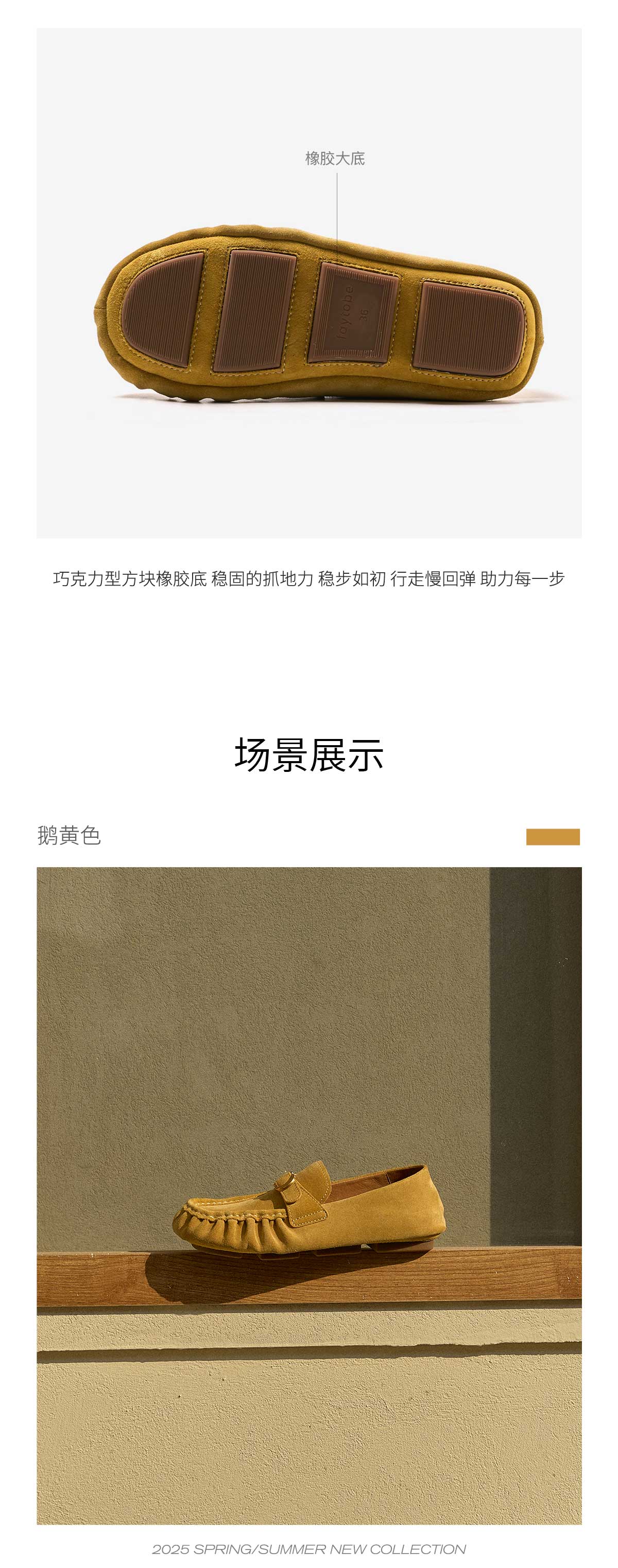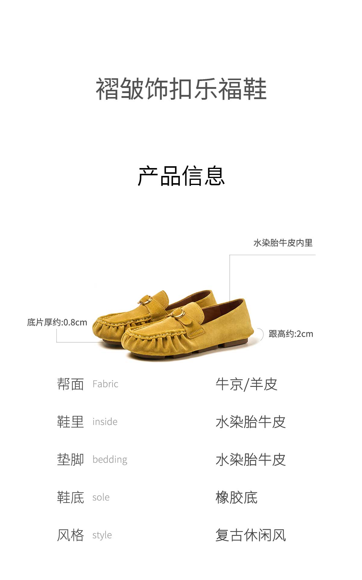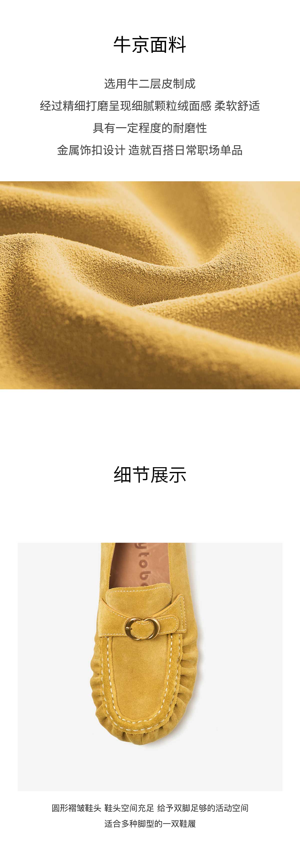 FAYTOBE 褶皱豆豆鞋25春舒适透气圆方头一脚蹬女金属饰扣羊皮乐福