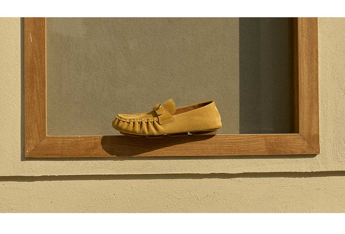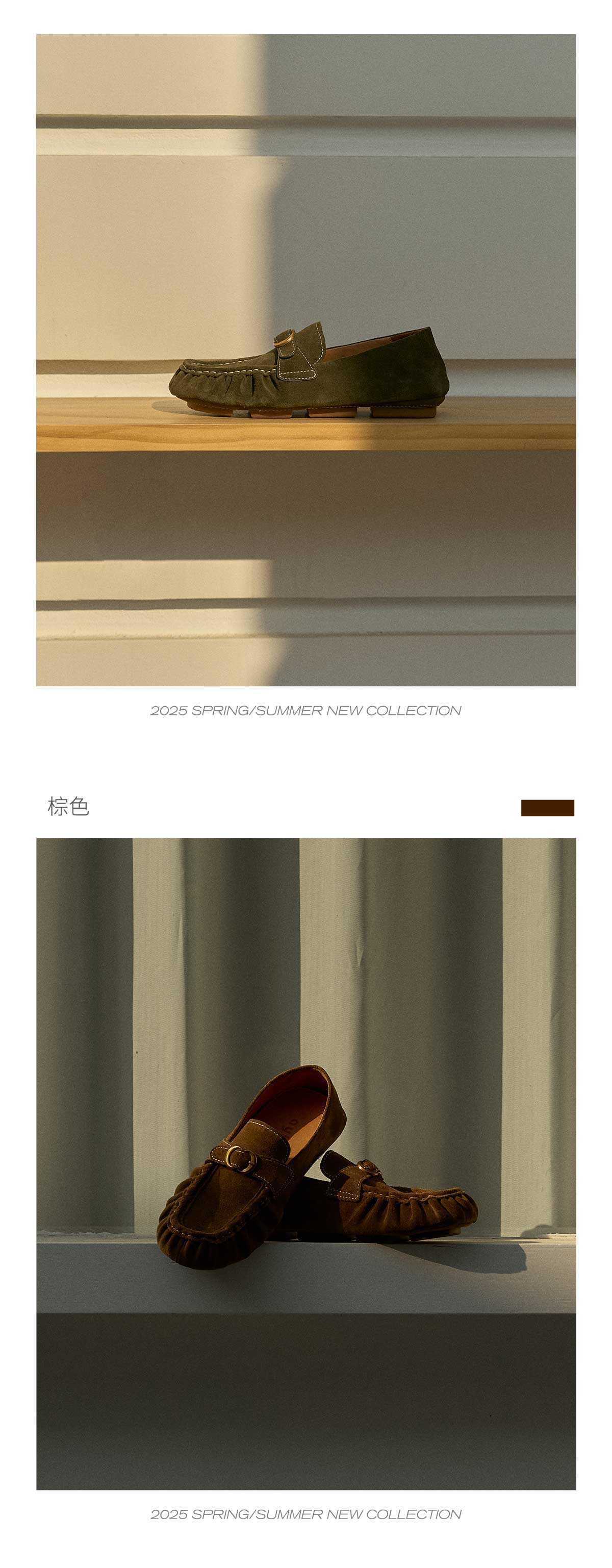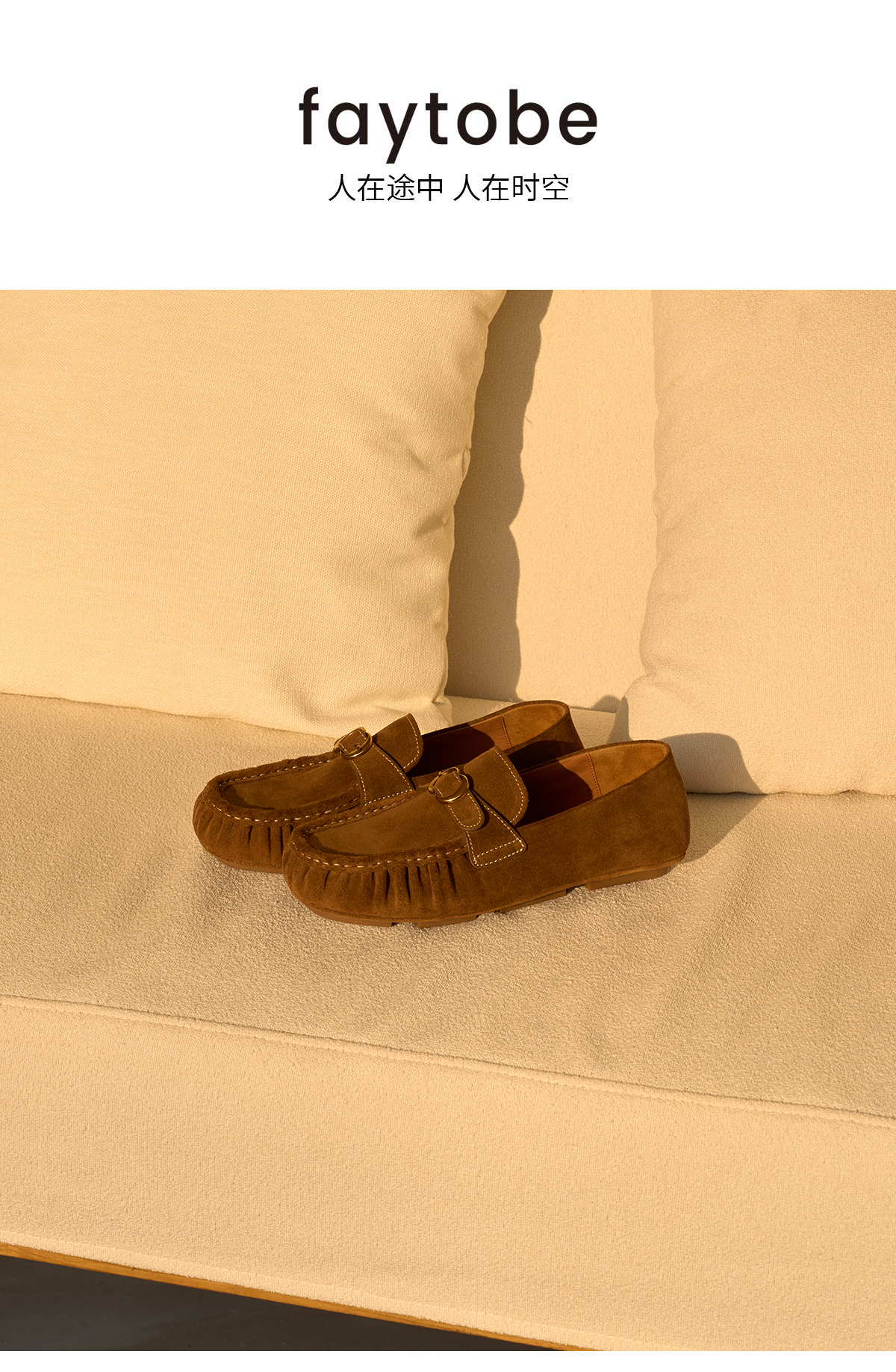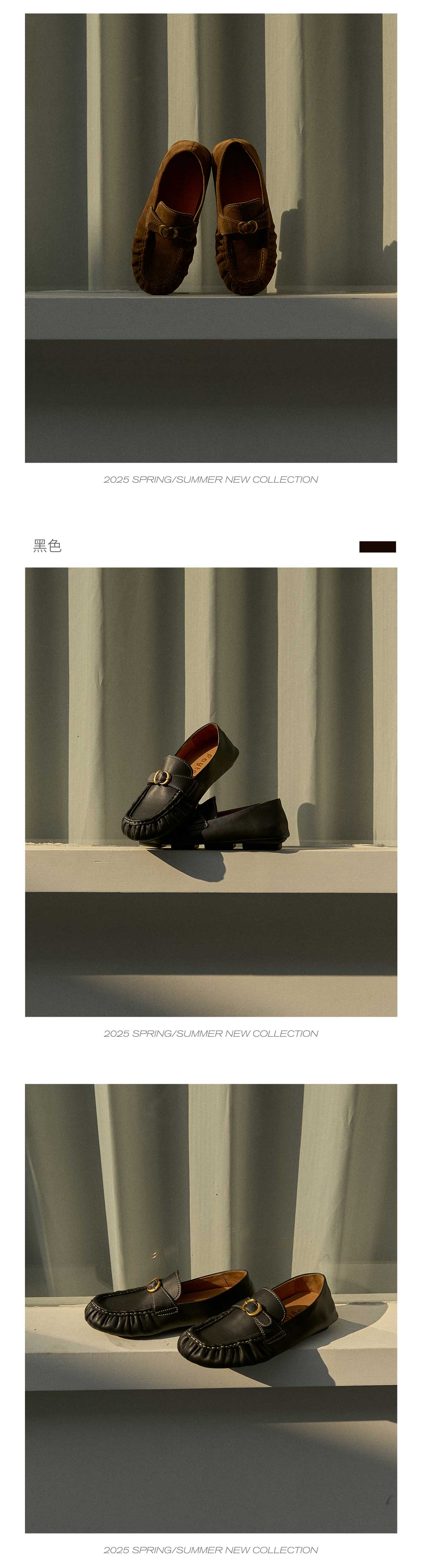 FAYTOBE 褶皱豆豆鞋25春舒适透气圆方头一脚蹬女金属饰扣羊皮乐福