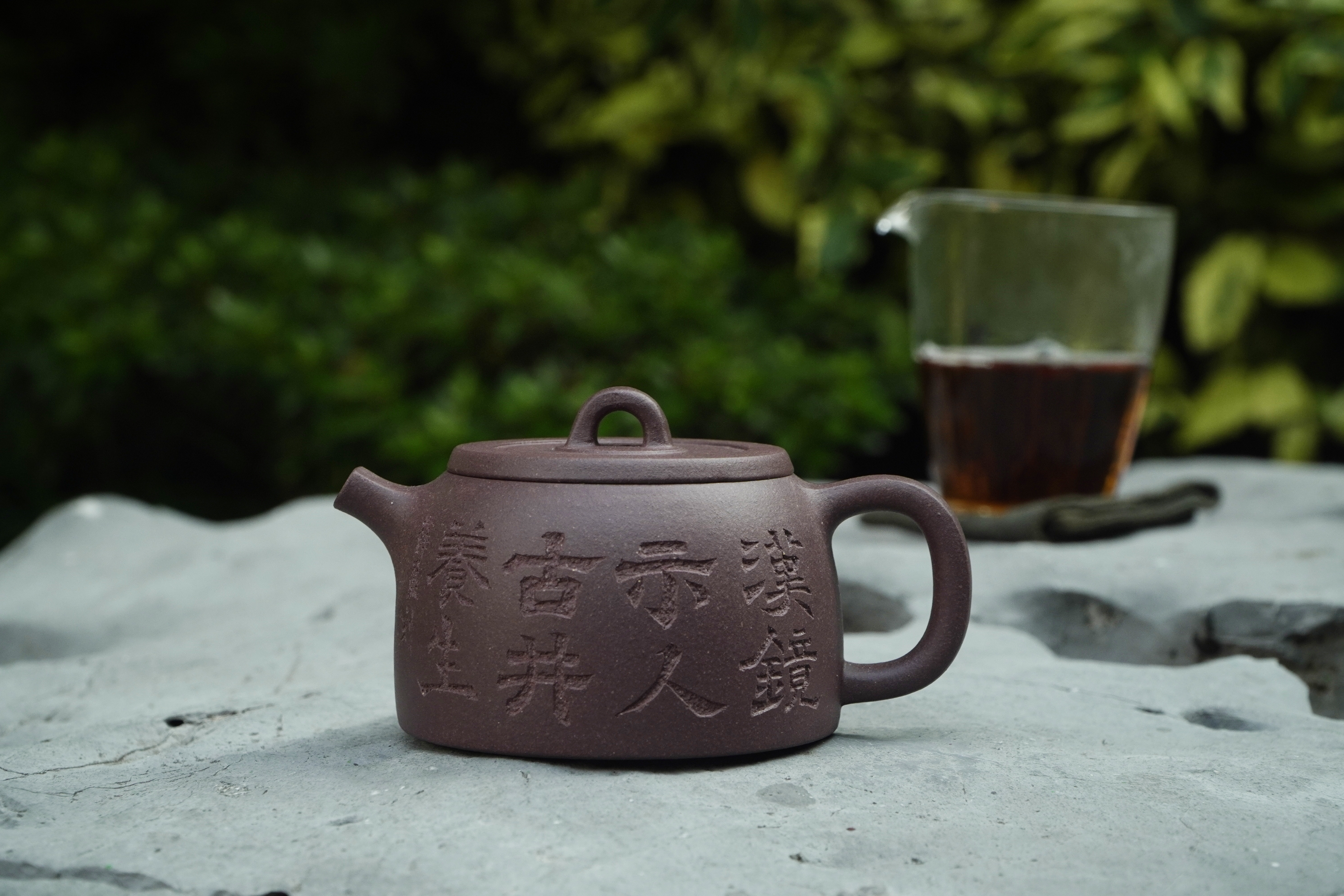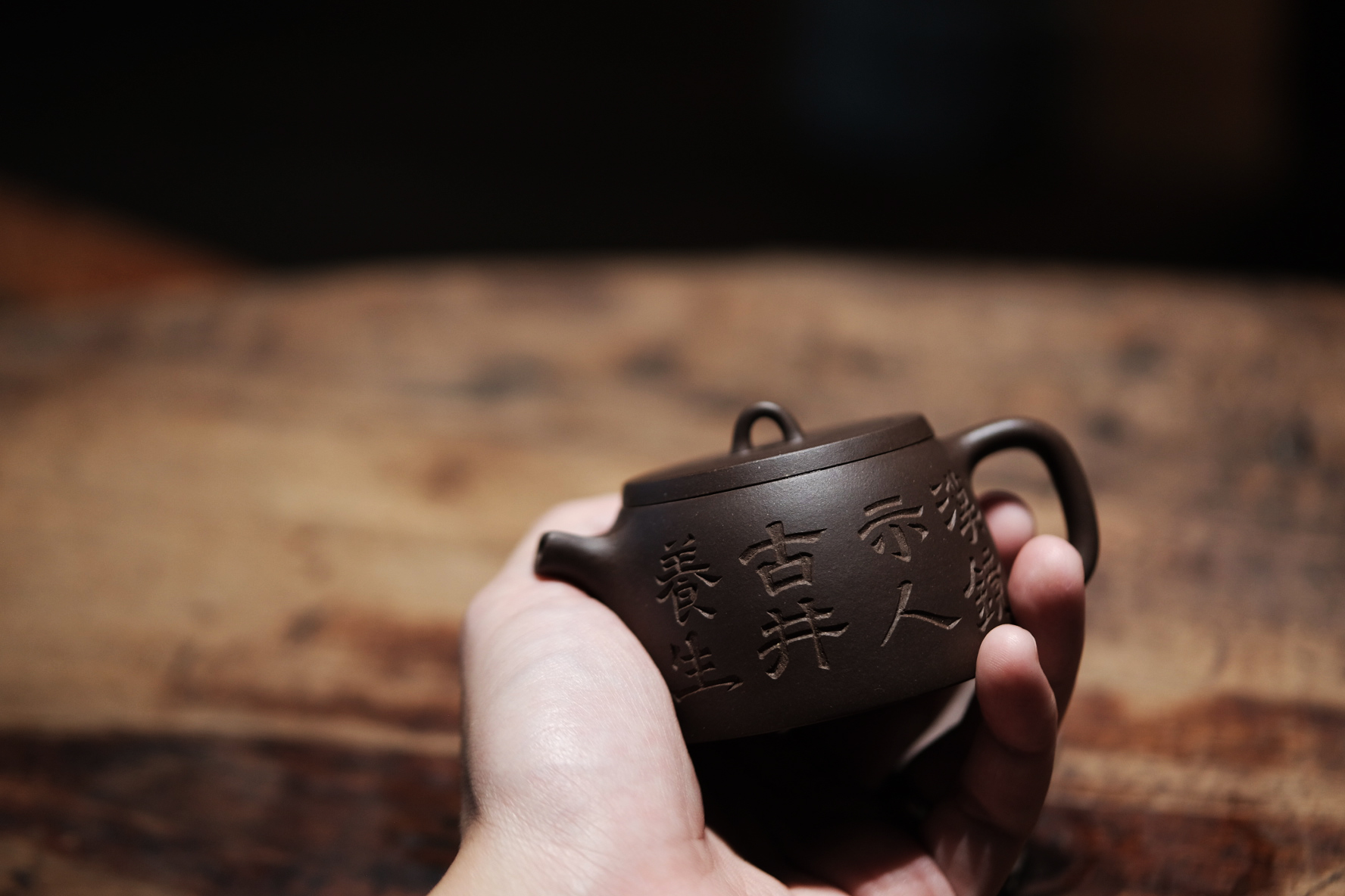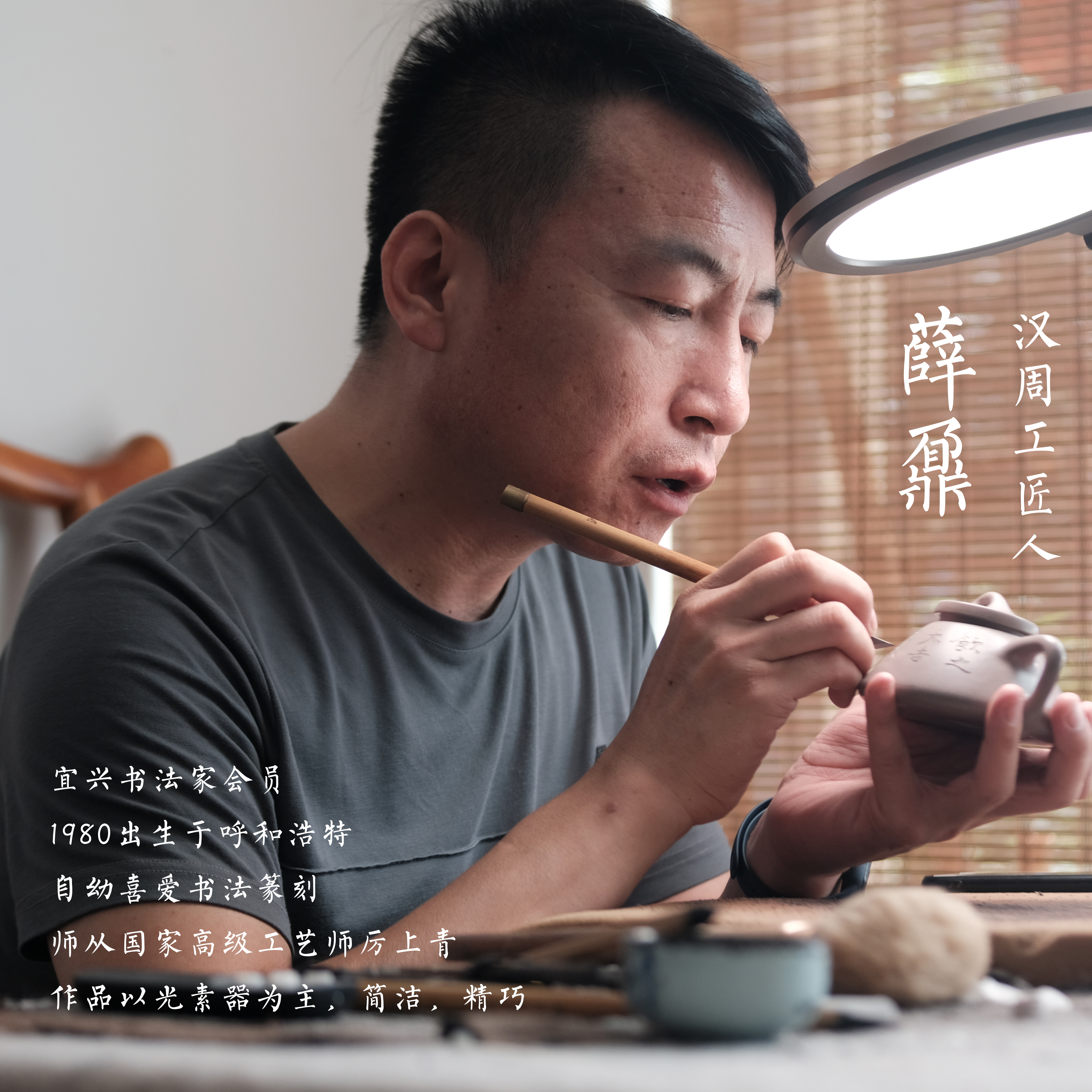 这把壶是全手工制作,刻字是功力深厚的刻字师傅,汉周工匠人薛鼐,见壶,见字。每把壶都是手艺人的心意。