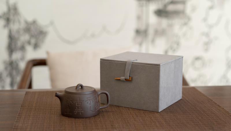 这把壶仿的是曼生十八式中的井栏器型,井栏壶为曼生壶中的精品,以江苏溧阳唐代零陵寺“澄观井”的石井栏,设计而成的。井栏壶充分显现了陈曼生师承万物、古为今用的设计理念。