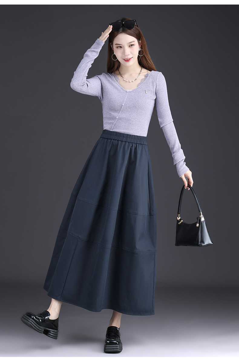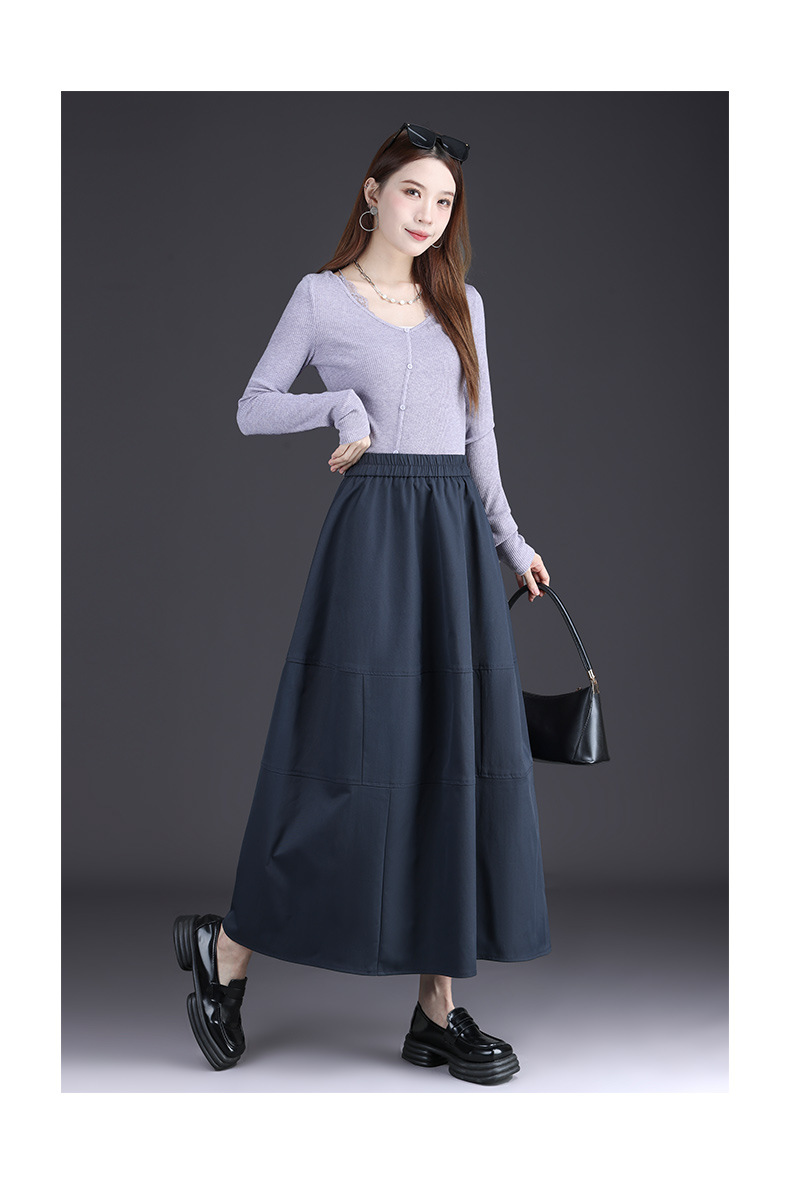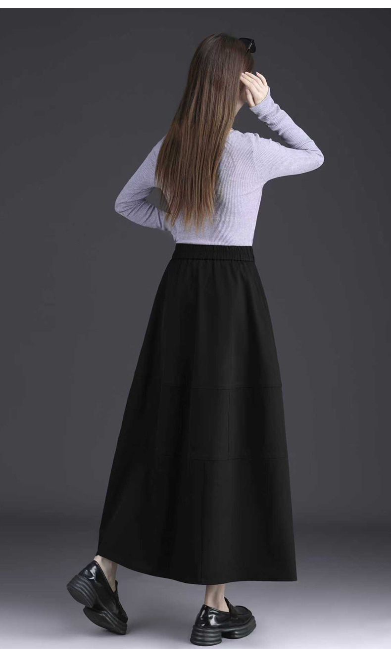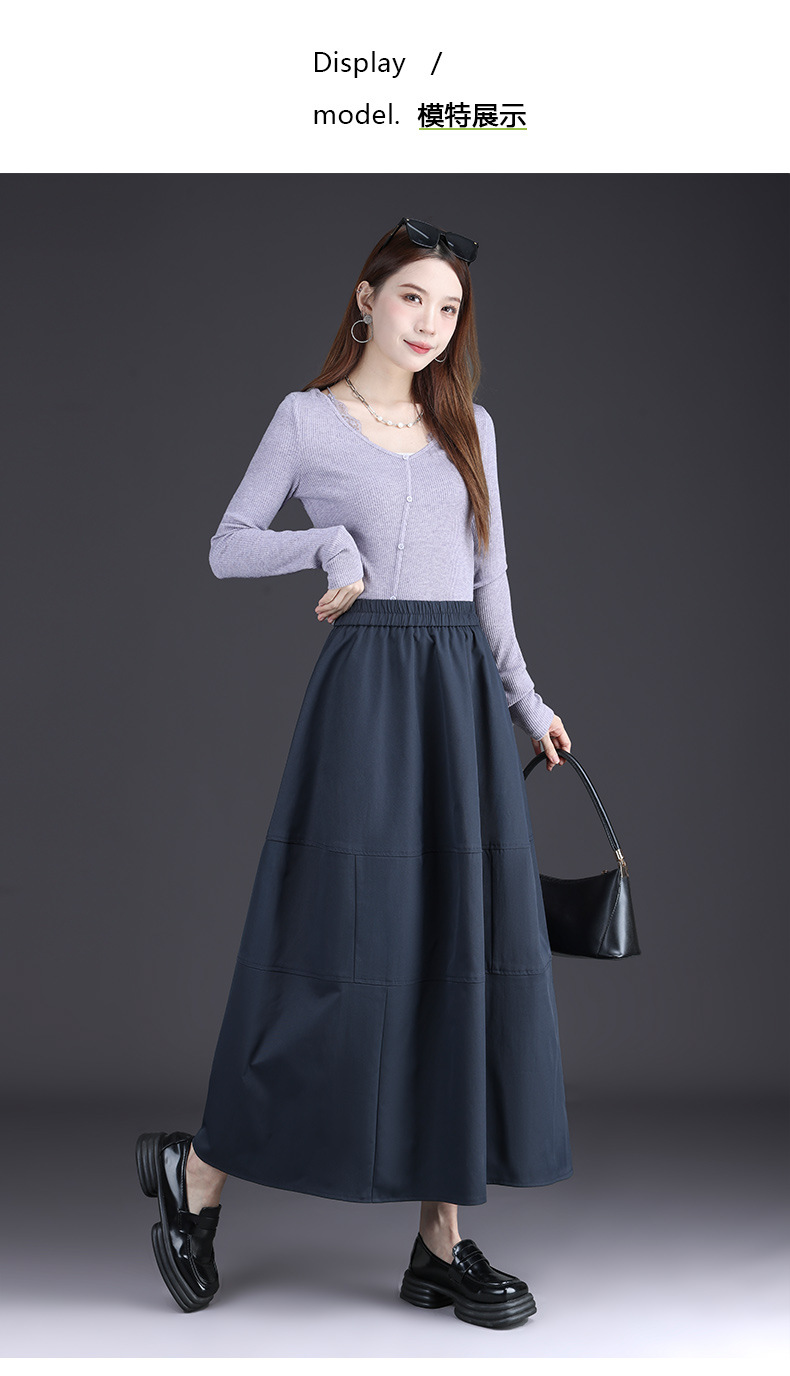 QYM 6992-Y时尚百搭高腰A字裙中长款大摆半身裙 商品图4