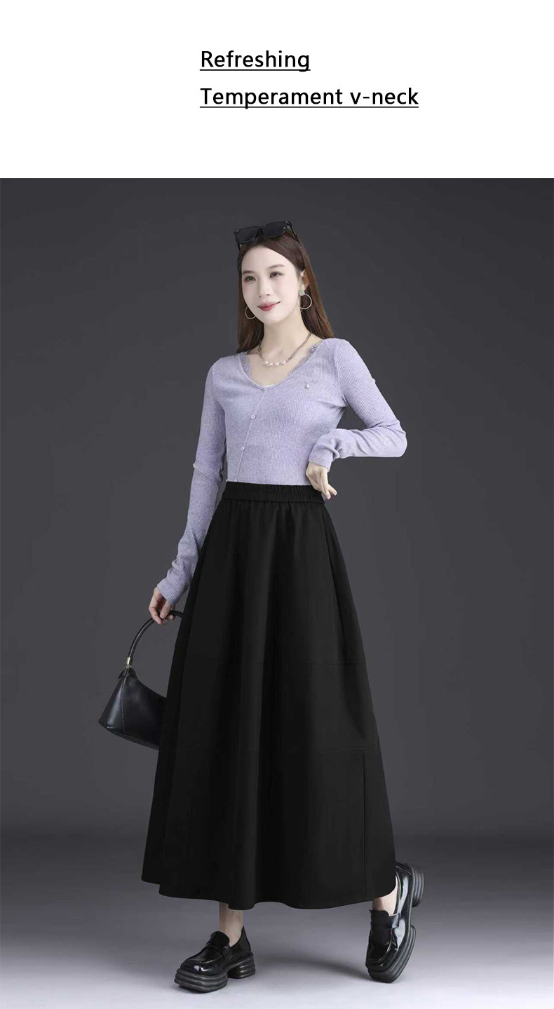 QYM 6992-Y时尚百搭高腰A字裙中长款大摆半身裙 商品图1