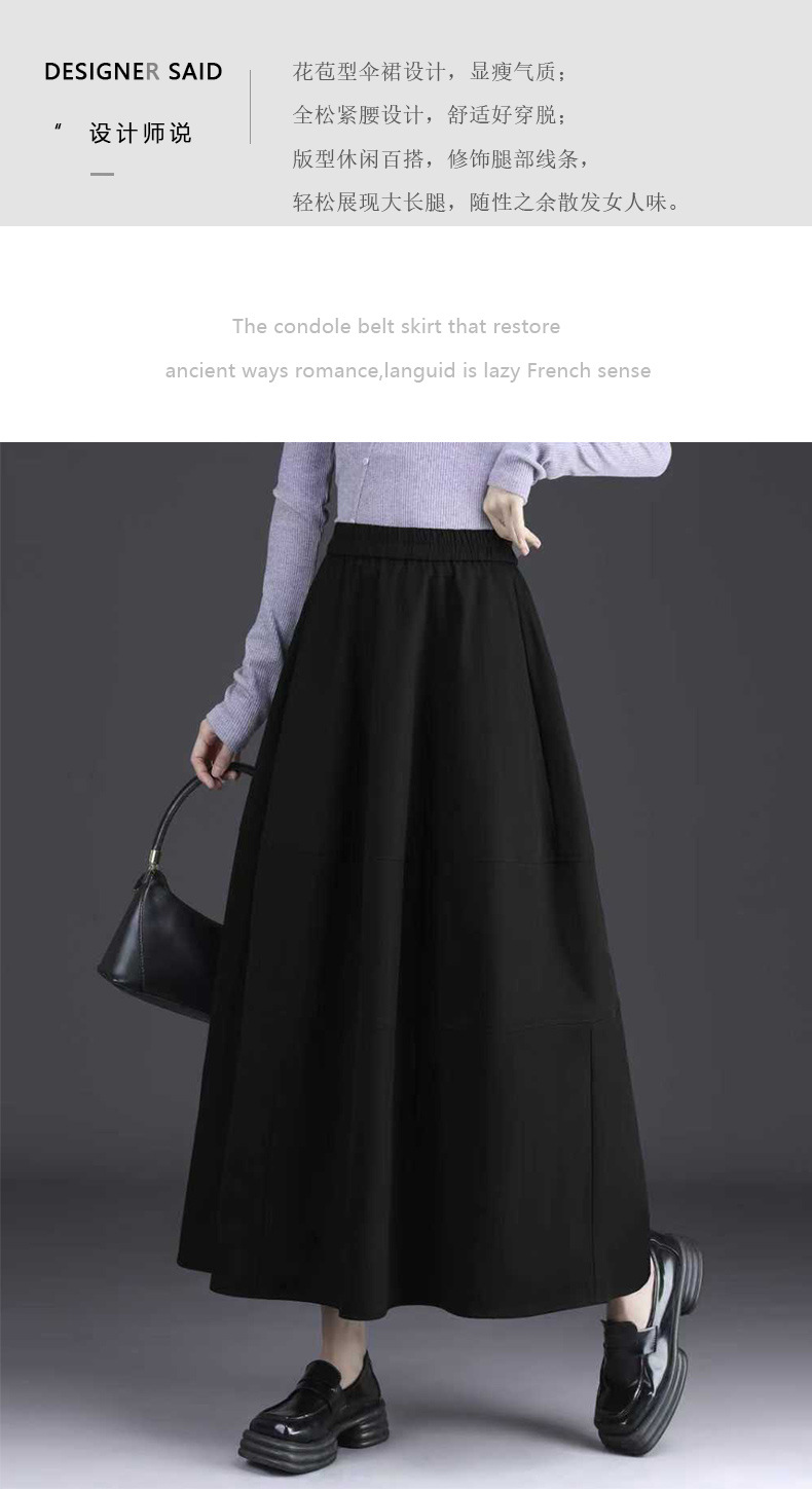 QYM 6992-Y时尚百搭高腰A字裙中长款大摆半身裙 商品图2
