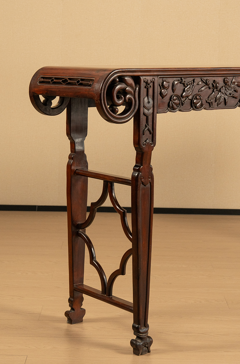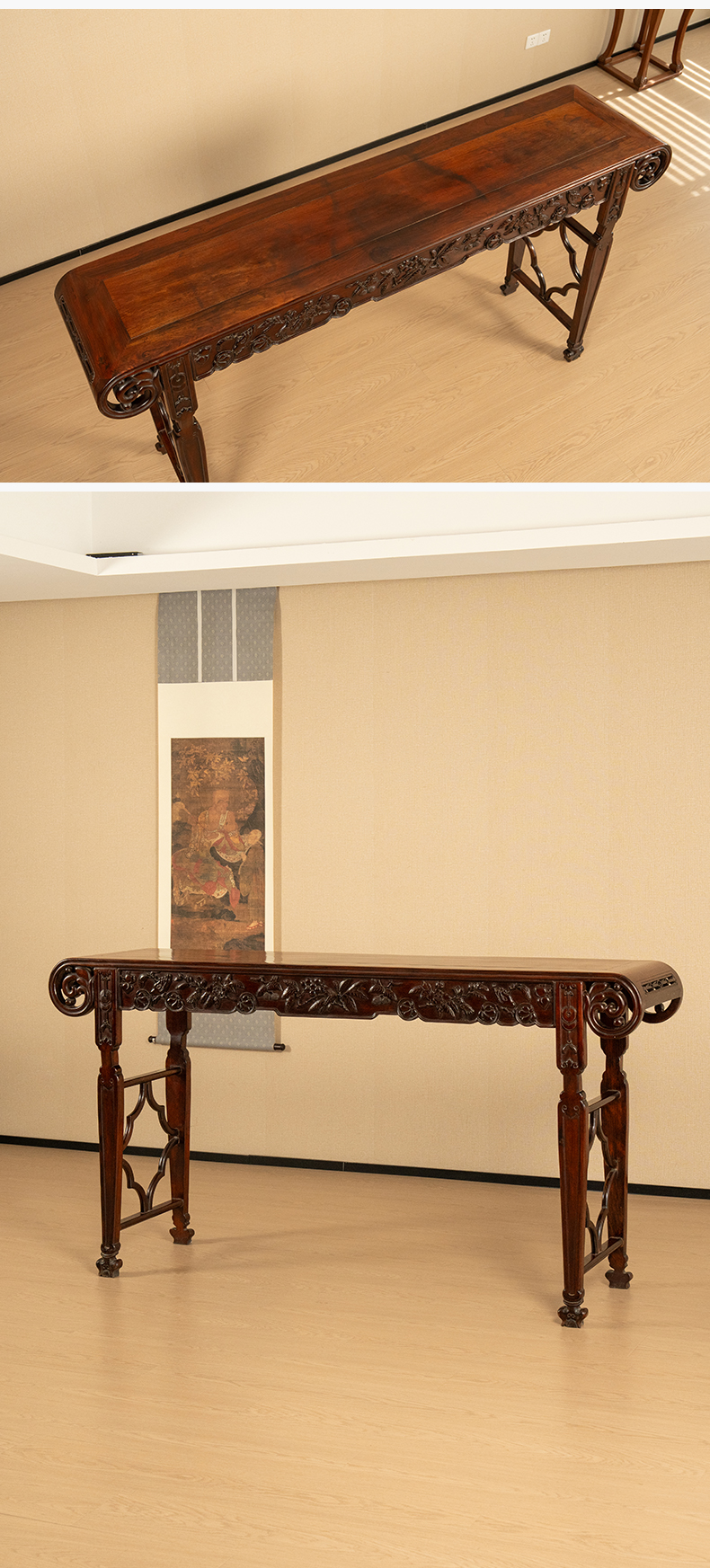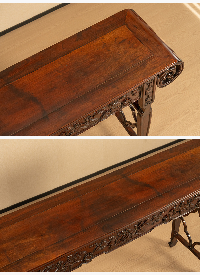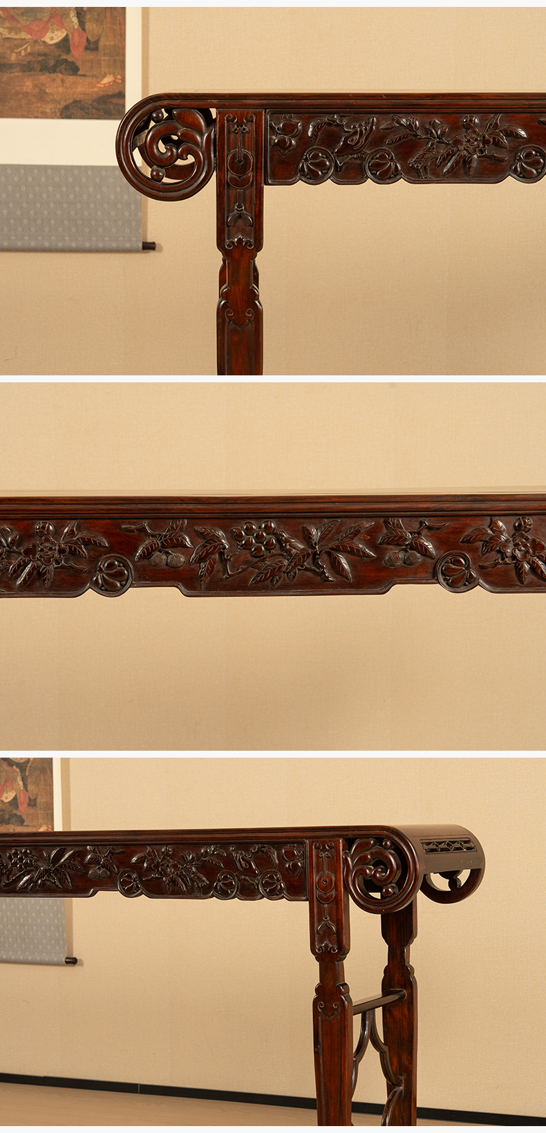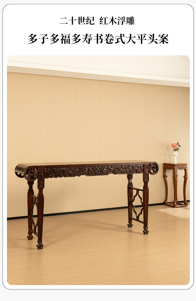 二十世纪 红木浮雕多子多福多寿书卷式大平头案