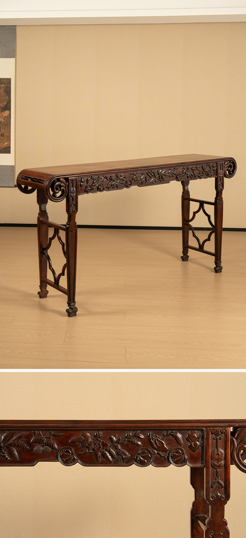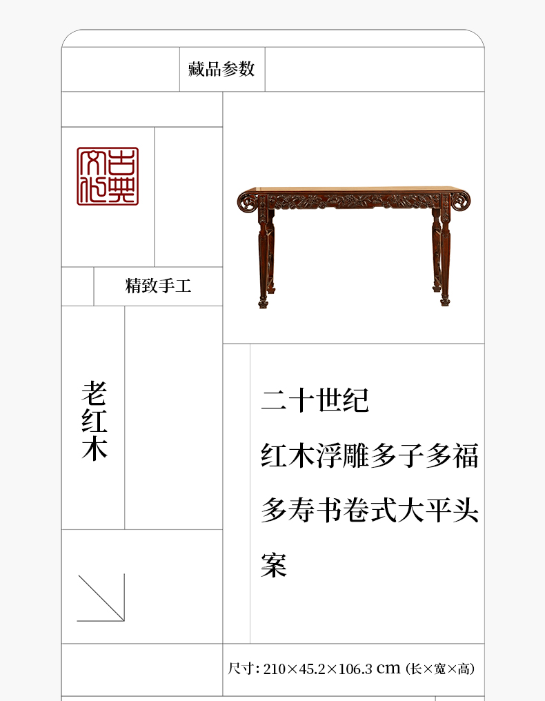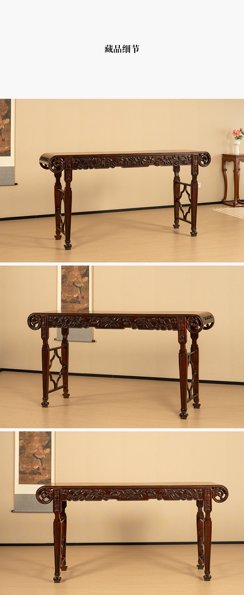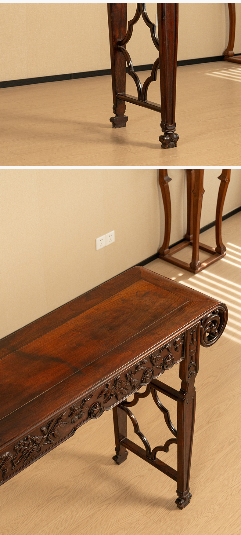二十世纪 红木浮雕多子多福多寿书卷式大平头案