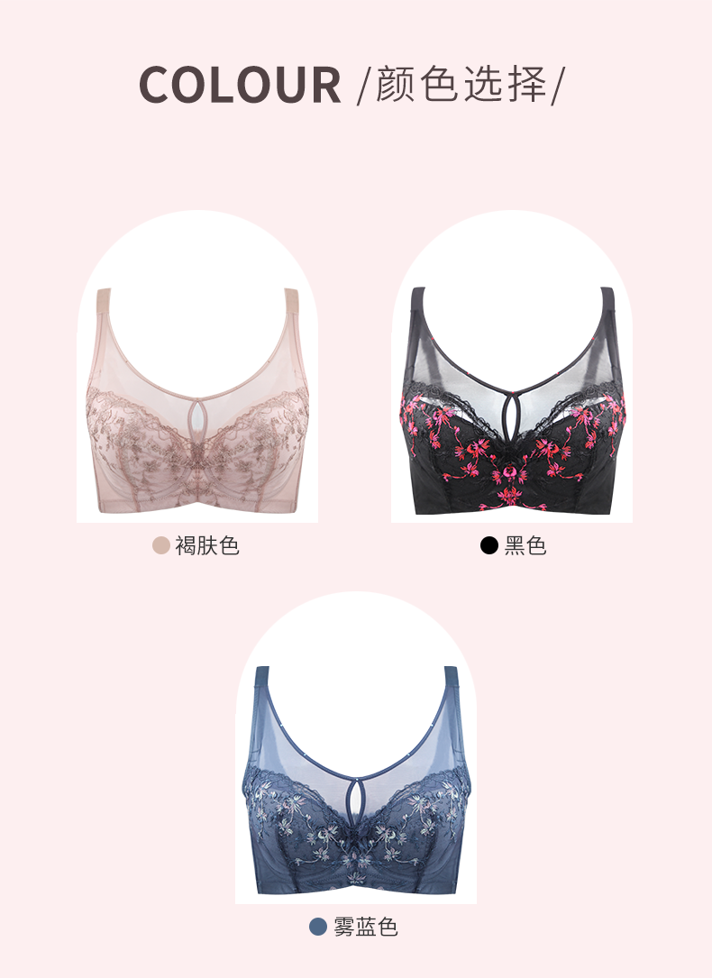 贝佳人新品大码文胸性感蕾丝软钢圈上托侧收调整型文胸女BW902008