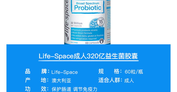 澳洲Life Space广谱成人益生菌胶囊 60g