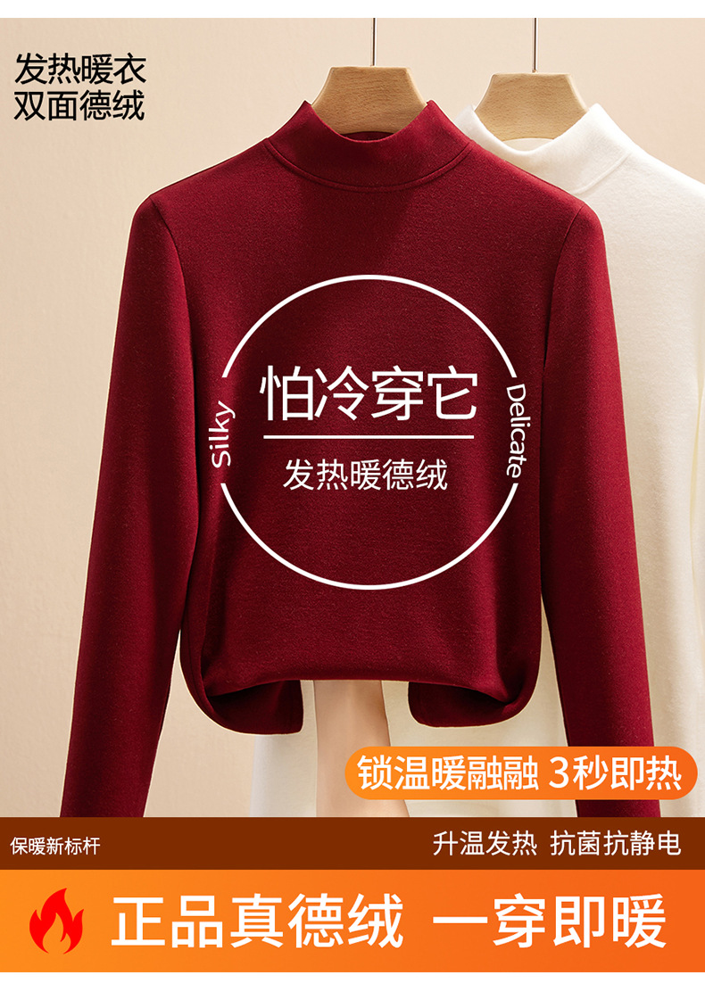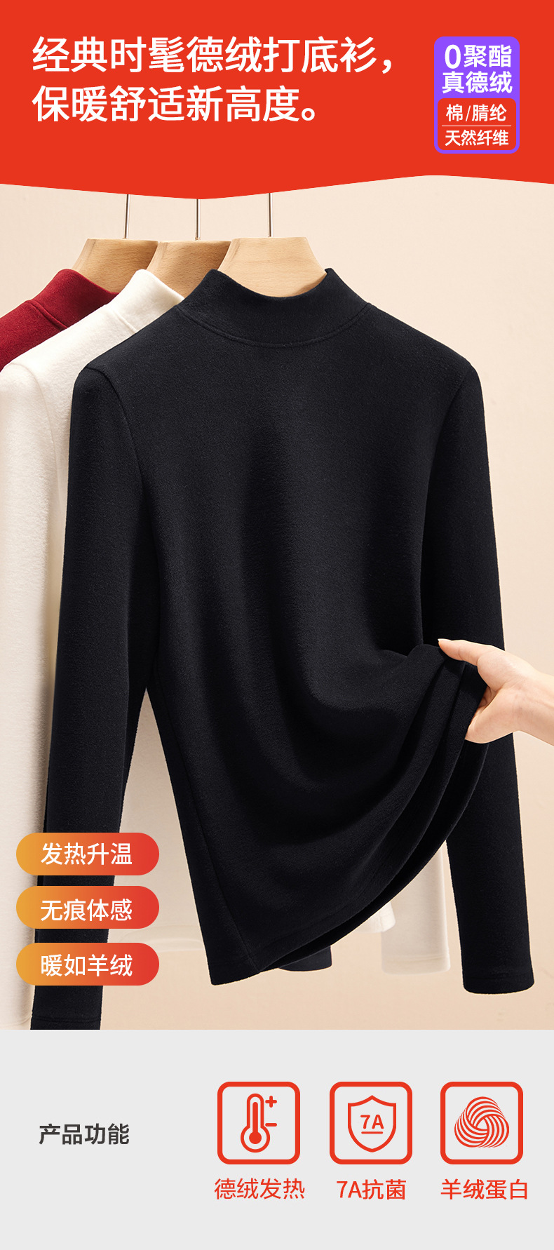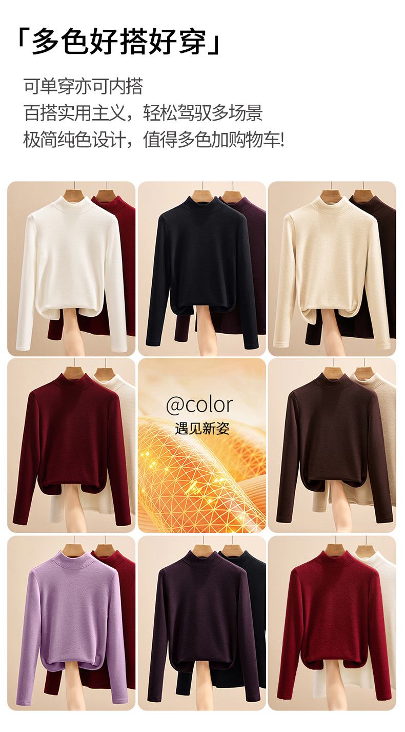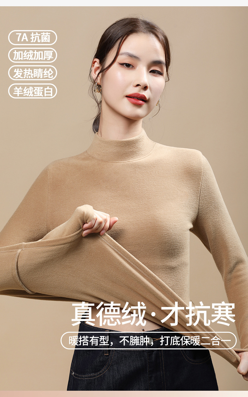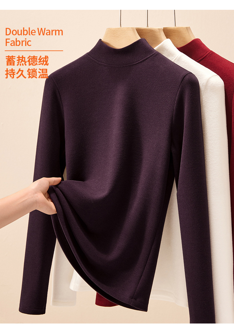 「自j」全新升级【铂金会员109/天猫149/差价40】(12042)洛诗琳半高领双面德绒打底衫2025秋冬高级感加绒保暖上衣女