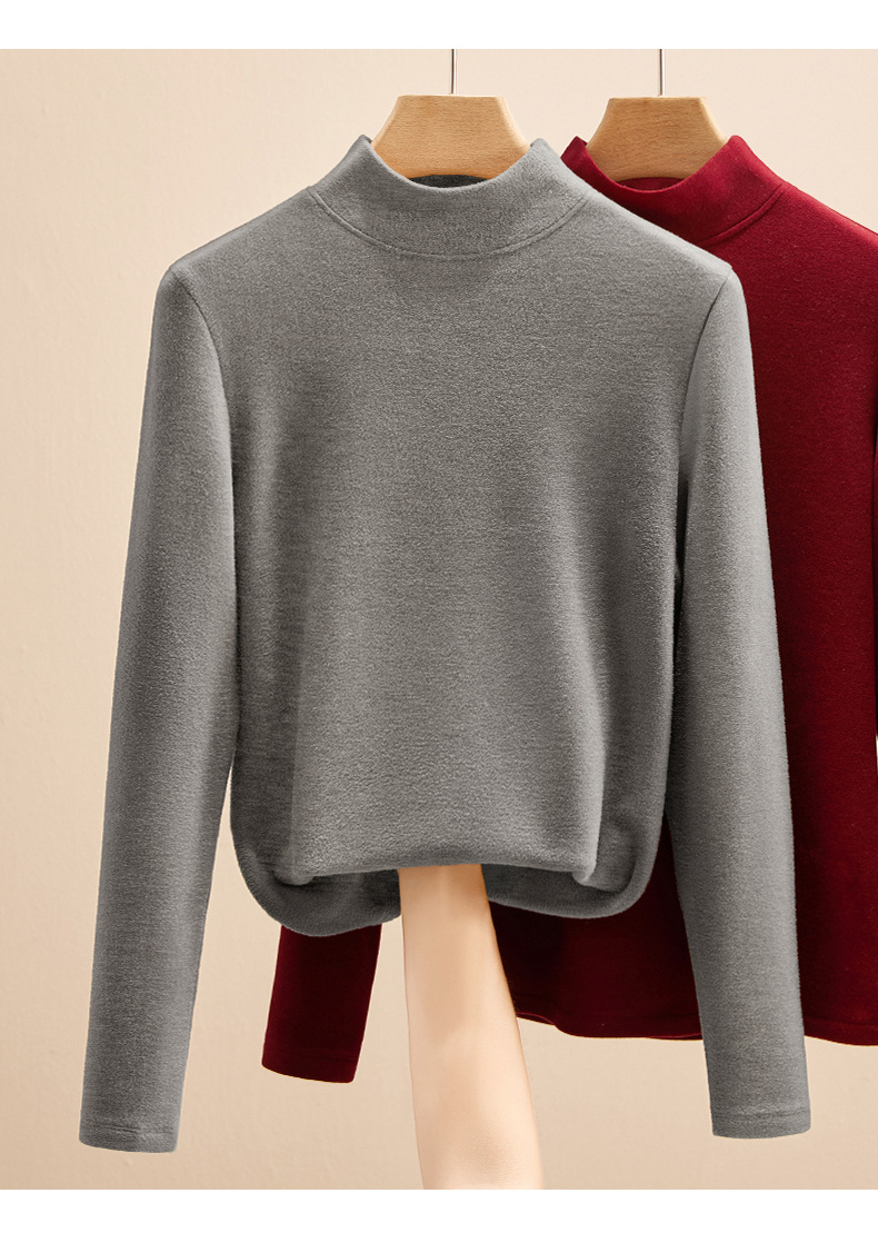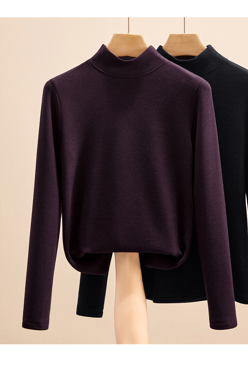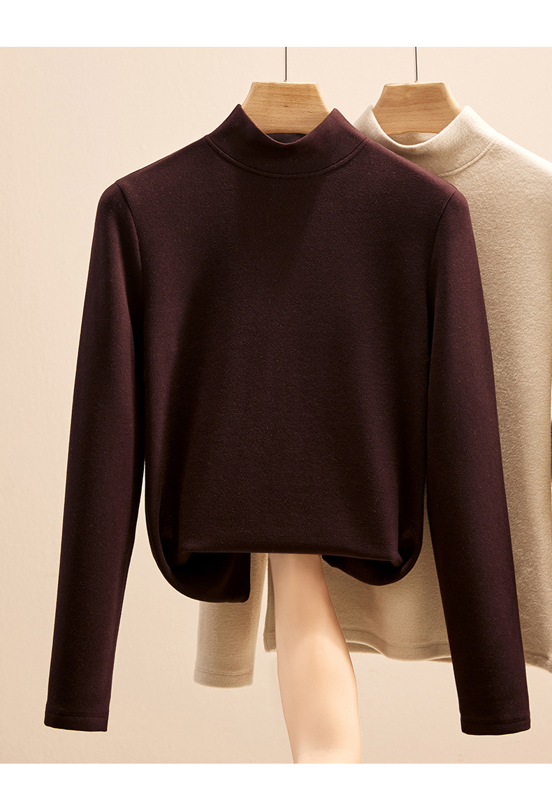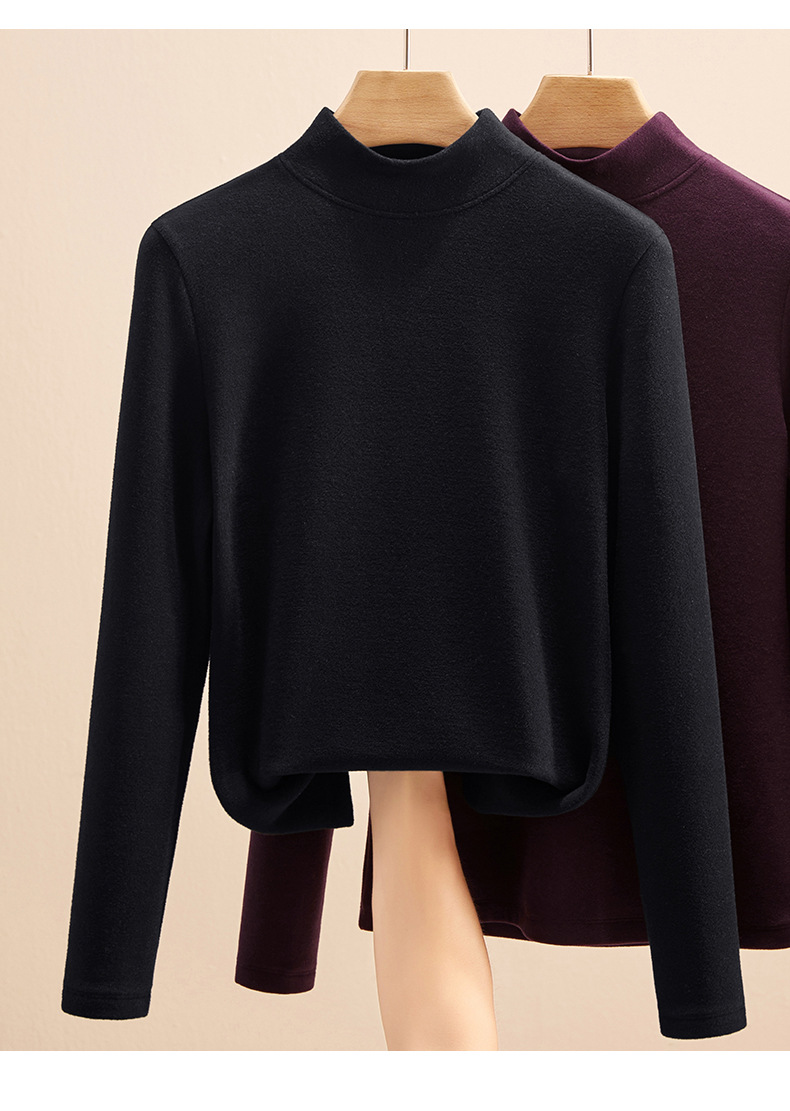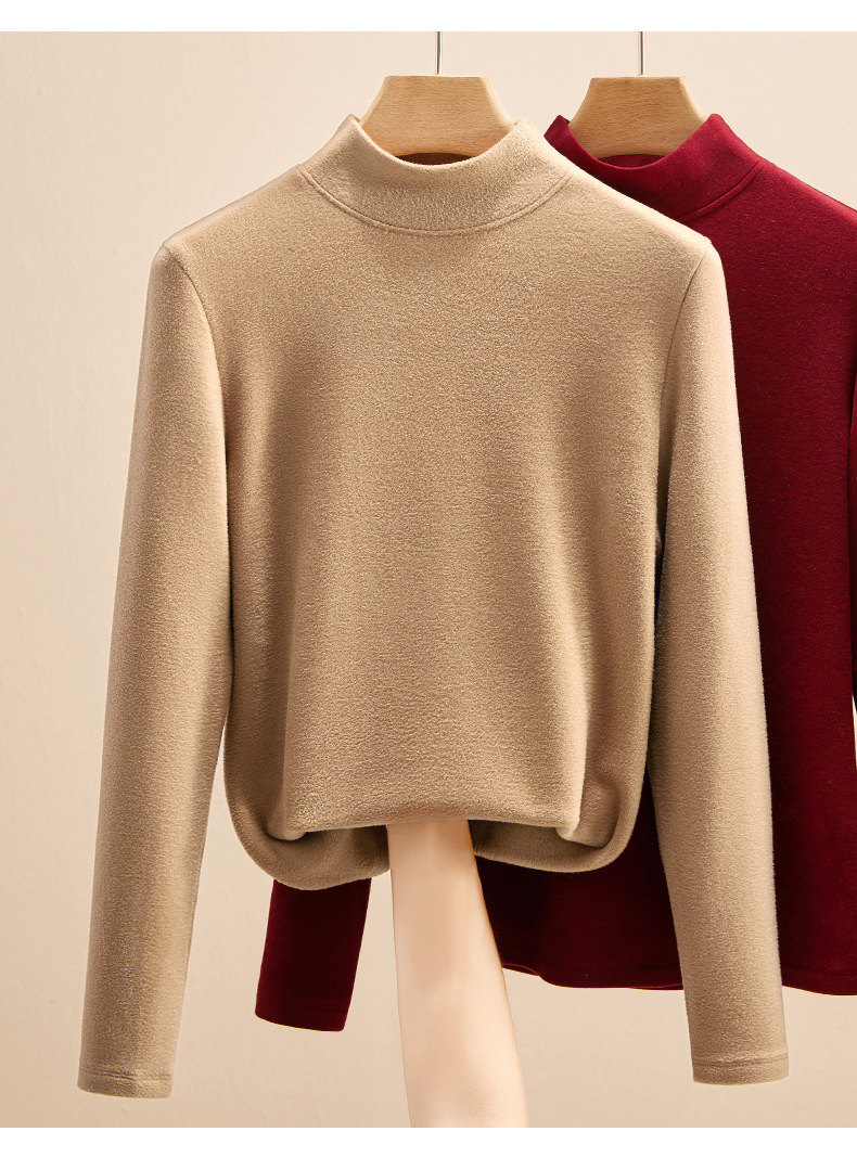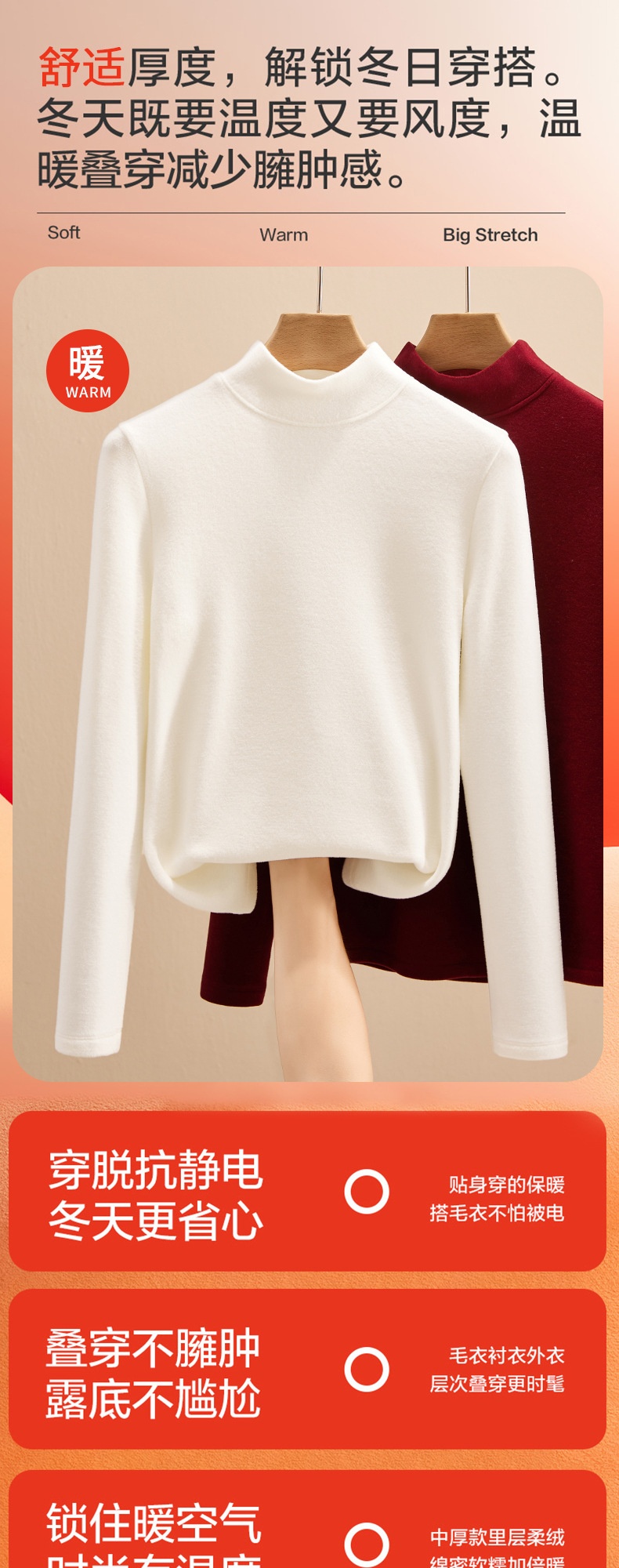 「自j」全新升级【铂金会员109/天猫149/差价40】(12042)洛诗琳半高领双面德绒打底衫2025秋冬高级感加绒保暖上衣女