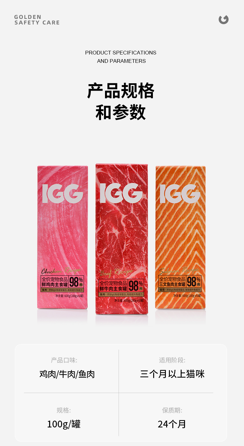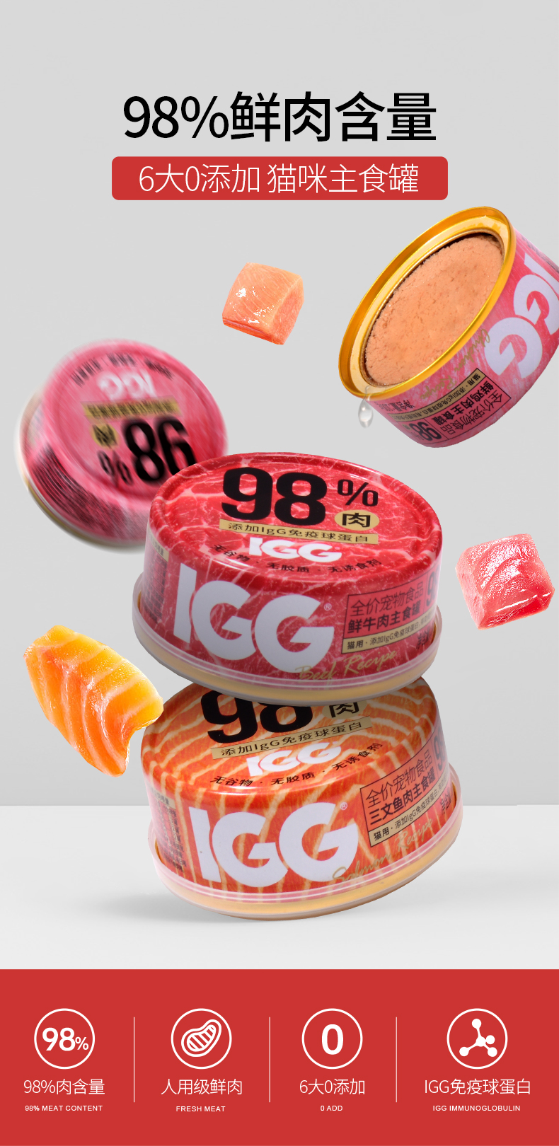IGG无谷猫罐头 主食罐头幼猫成猫通用猫咪零食罐头 98%含肉量 100g*6罐
