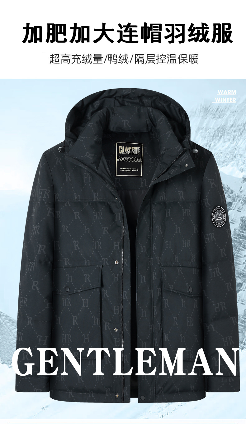 【特大码】【新款DGD】大依优型大码羽绒服85白鸭绒连帽外套休闲胖子大码男休闲宽松加肥加大上衣