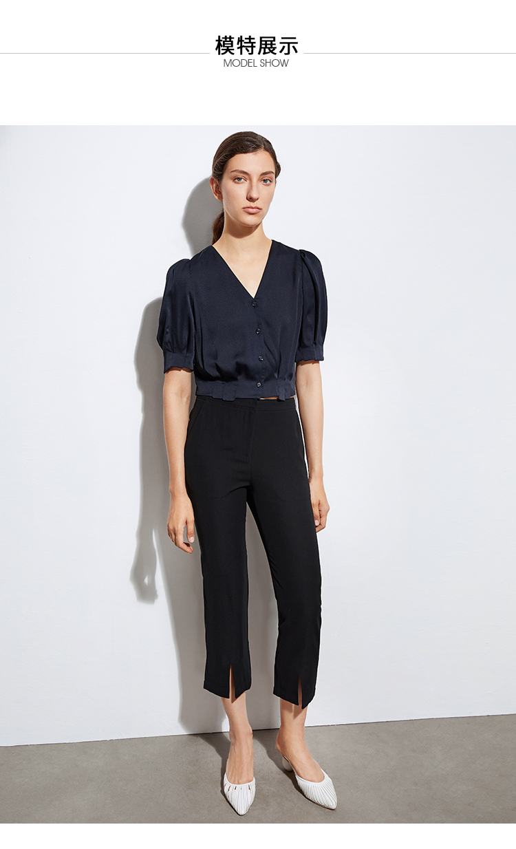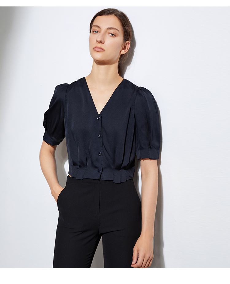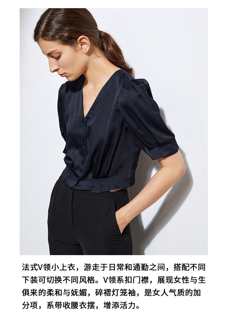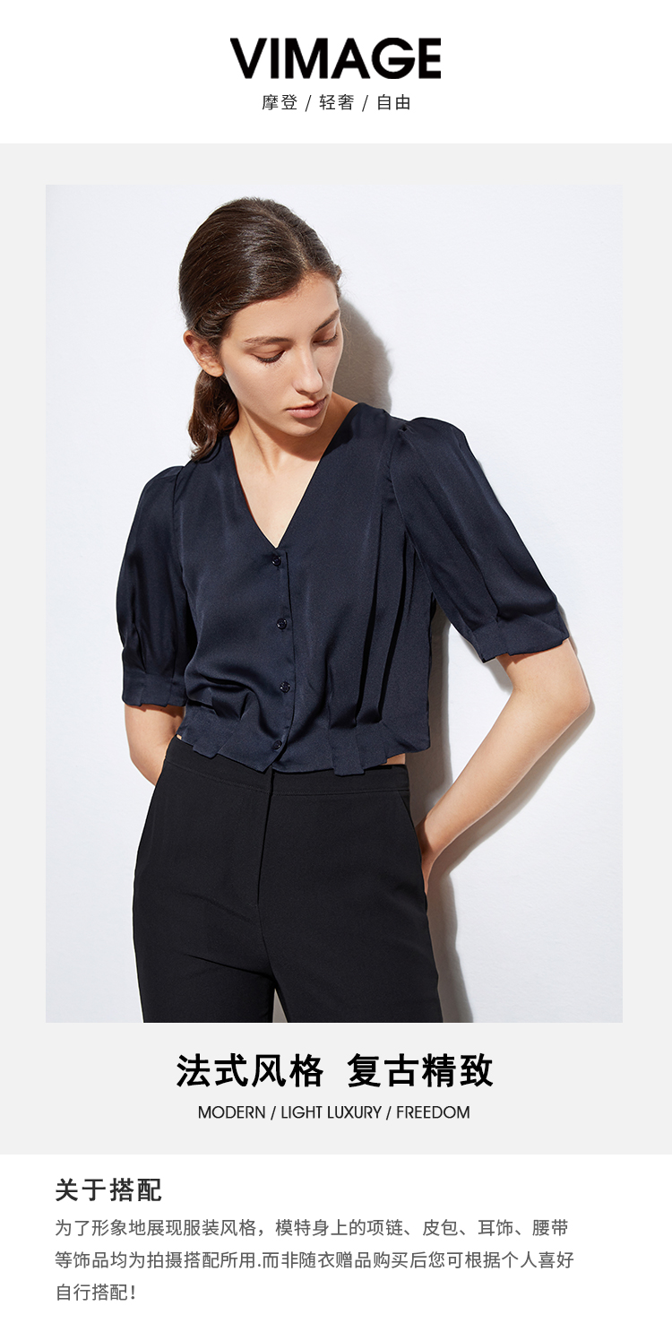 VIMAGE纬漫纪女装夏季新品V领短袖宽松休闲小上衣短款薄V1503118