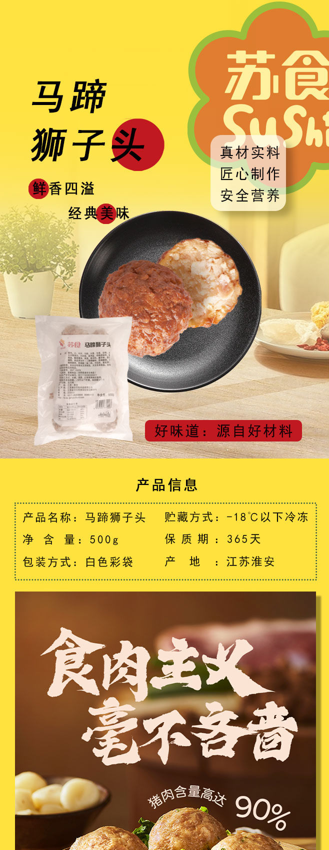 【南京兑换券300-500】马蹄狮子头500g*3袋