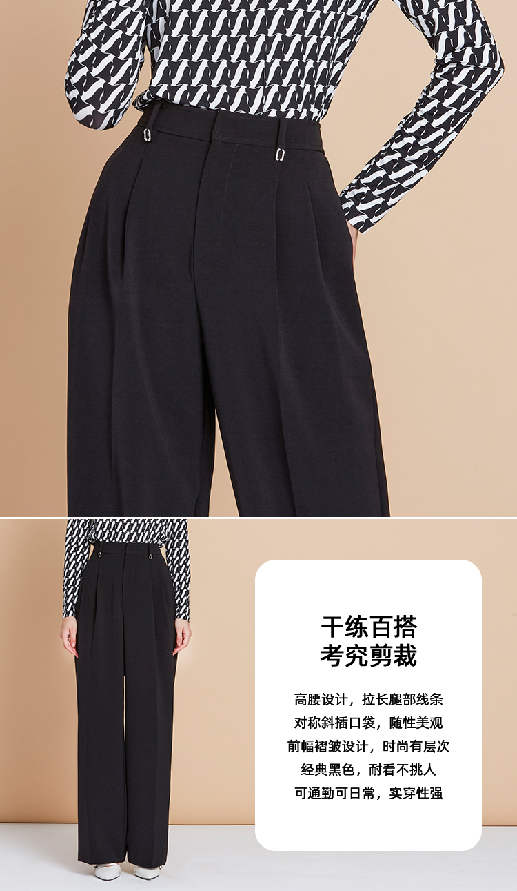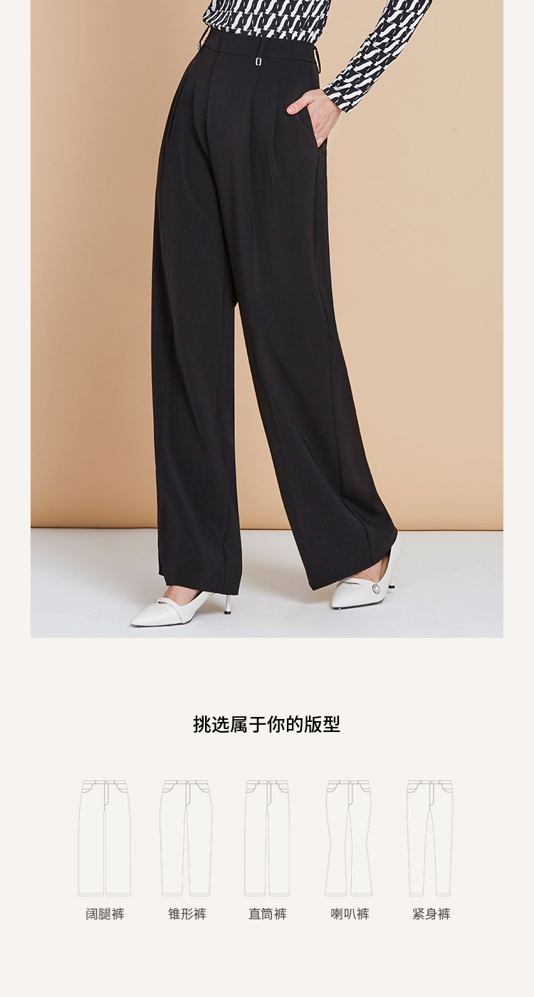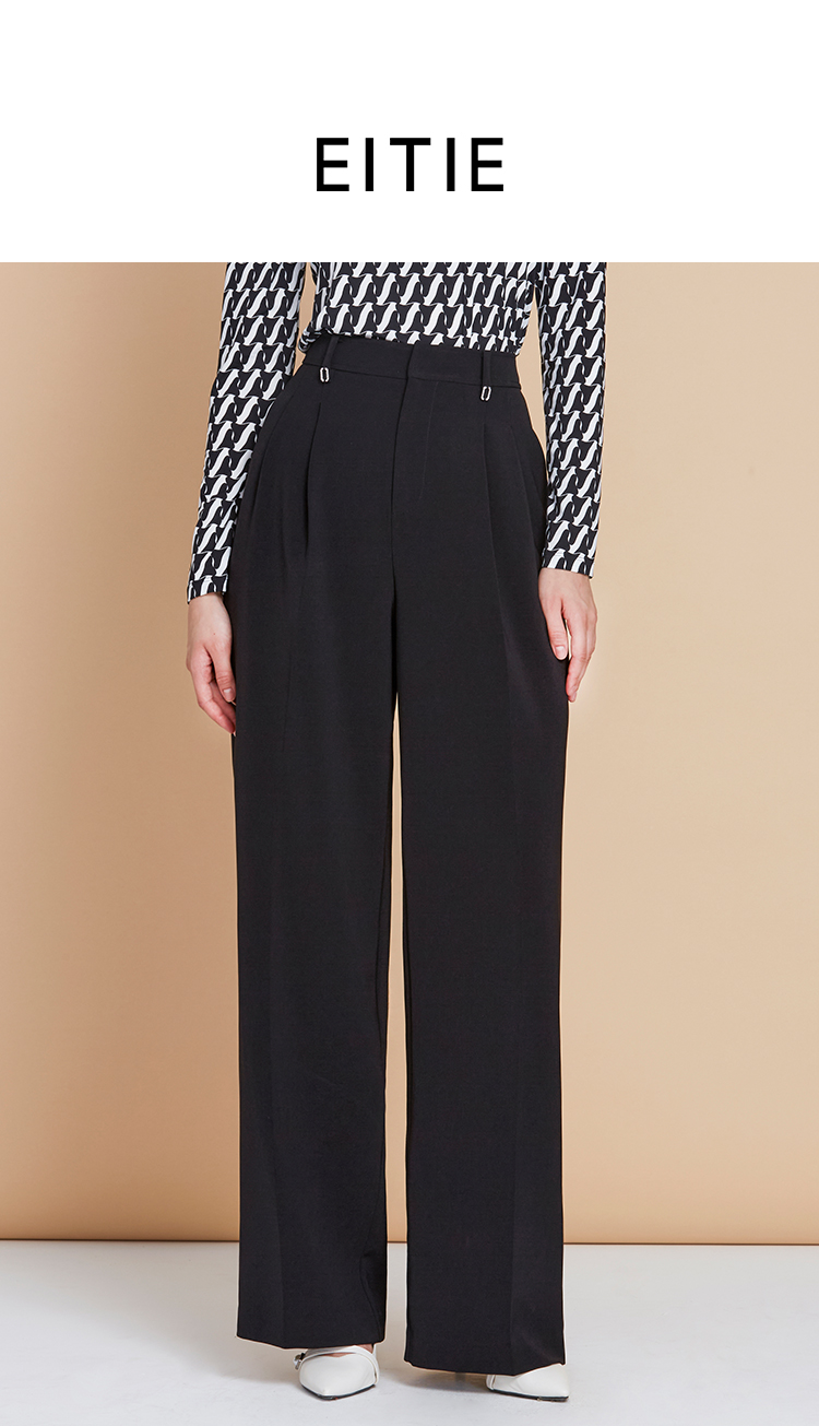 EITIE爱特爱气质通勤休闲裤女宽松显瘦高腰阔腿长裤秋季新款C2505814
