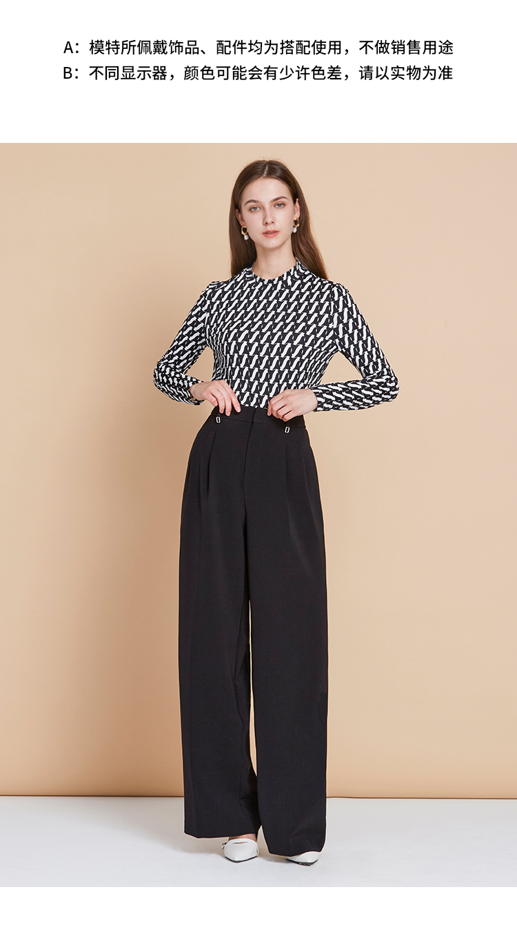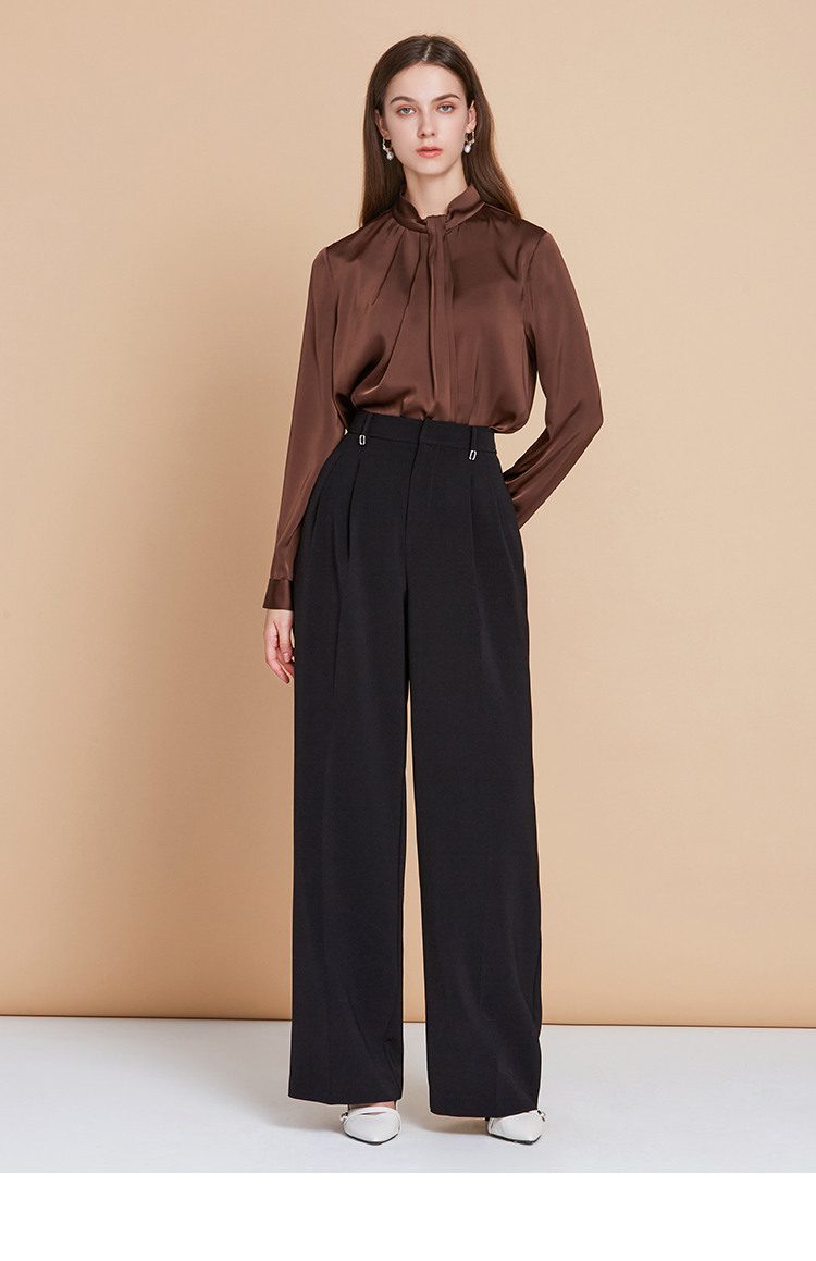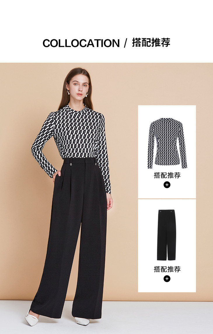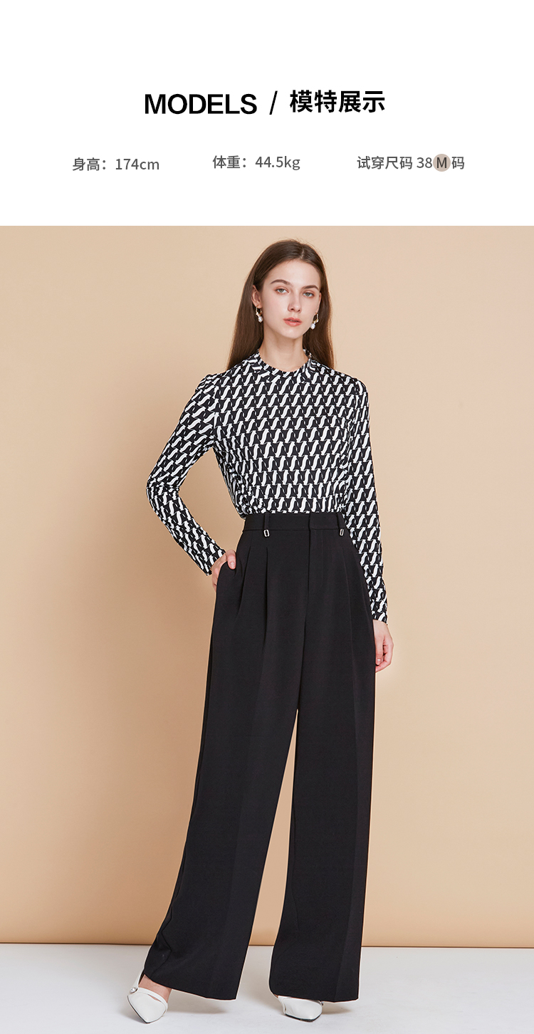 EITIE爱特爱气质通勤休闲裤女宽松显瘦高腰阔腿长裤秋季新款C2505814
